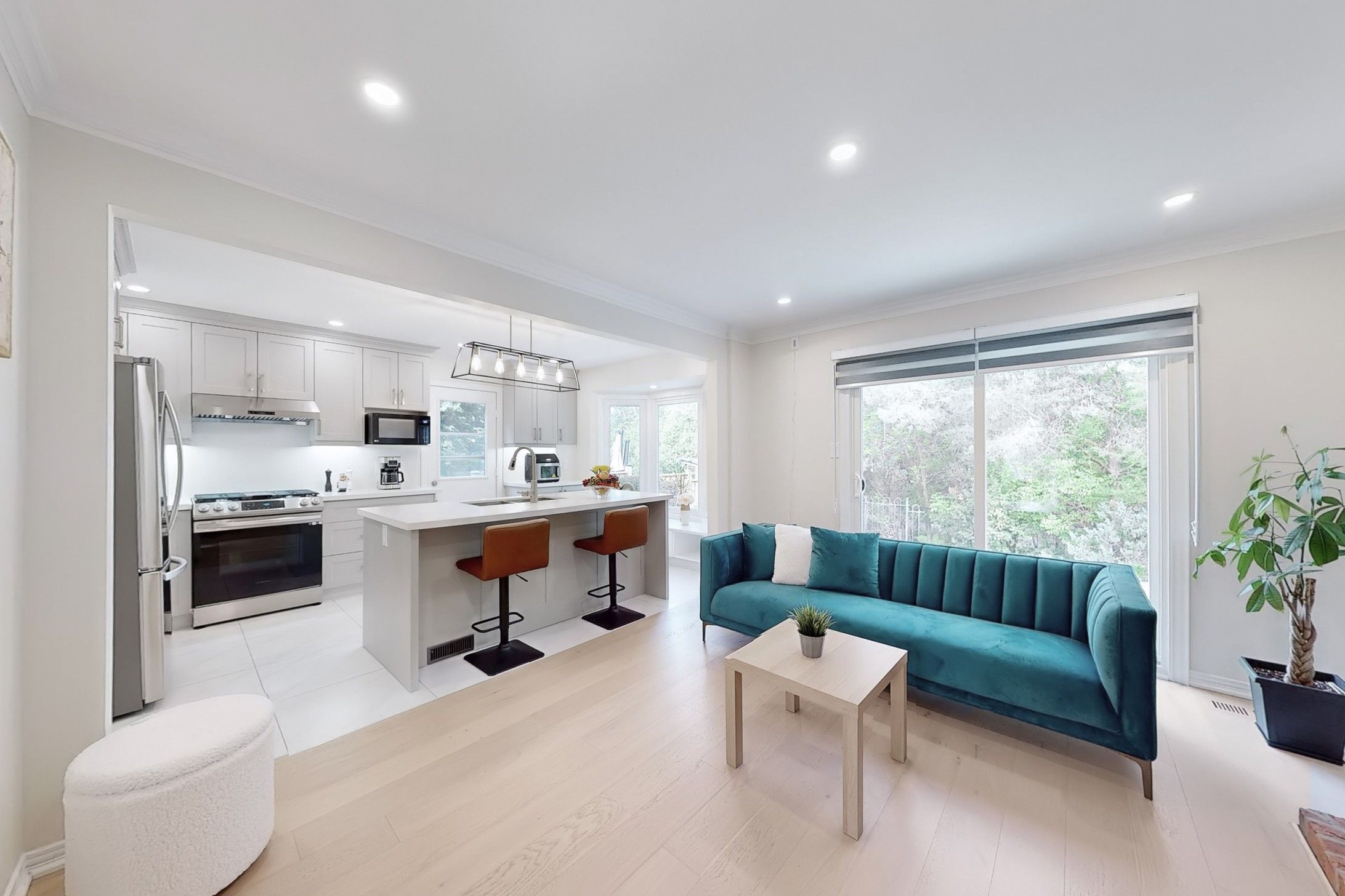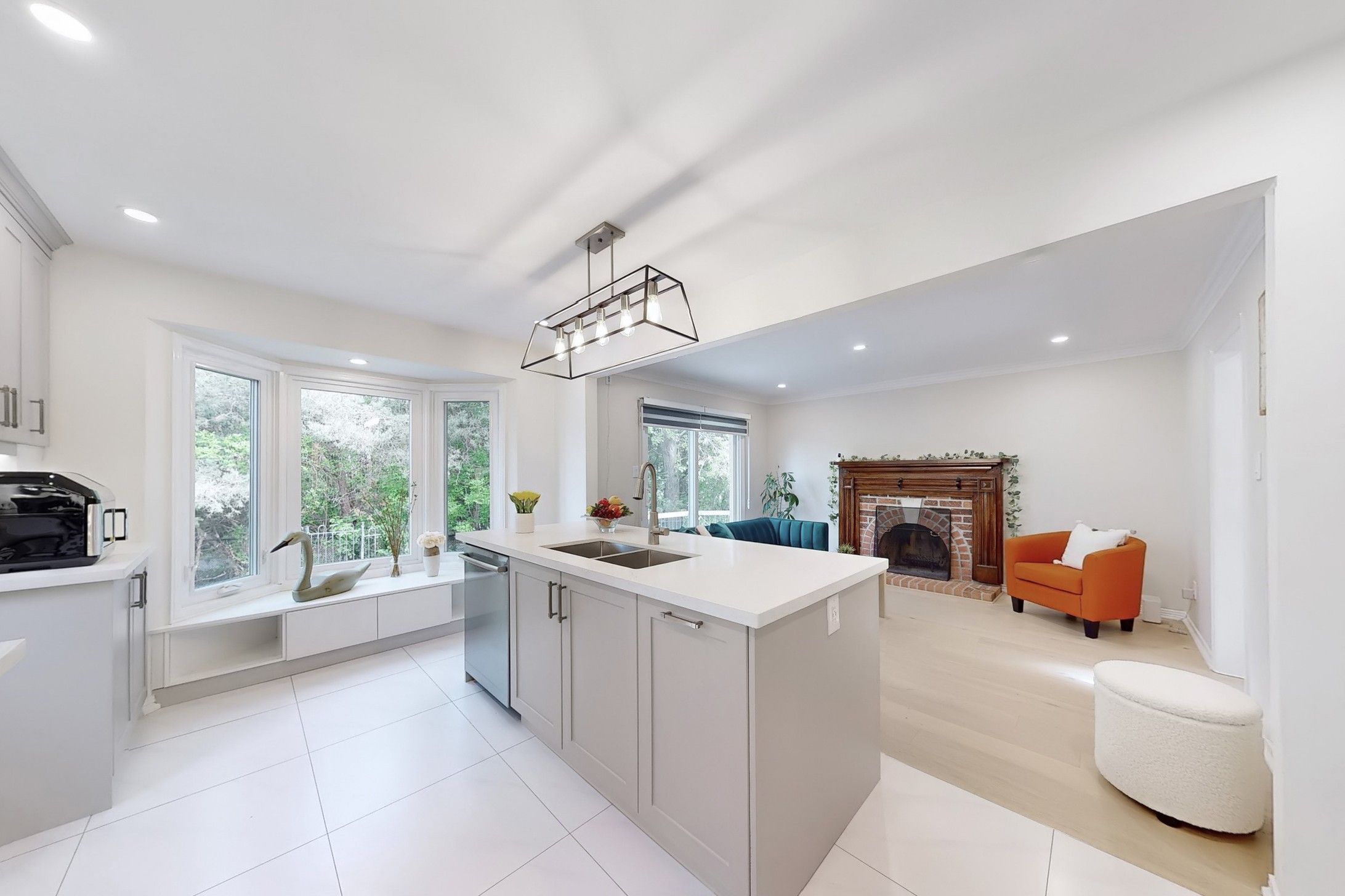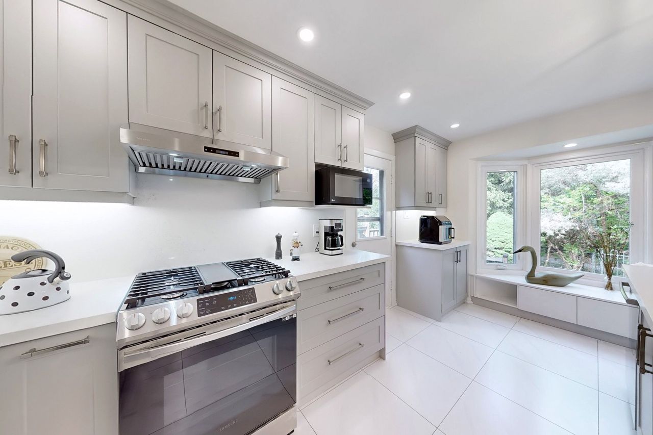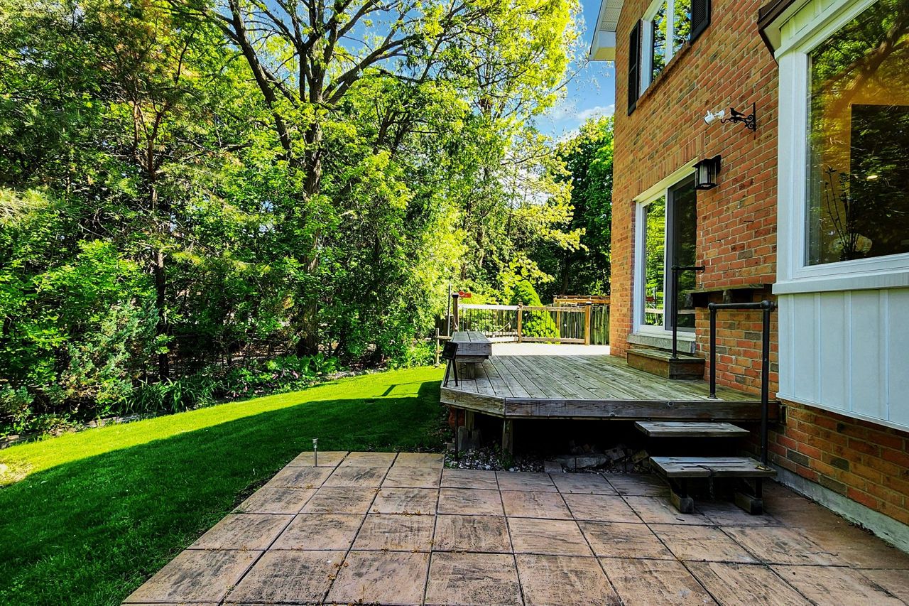 Stunning, fully renovated from top to bottom in 2023, a cozy home with a large pie shaped yard in the prestigious Unionville neighbourhood. Spacious Living and Dining Room space combined for comfort and perfect to entertain guests in. Gorgeous modern Kitchen and Family Room overlooks a quiet green space with a wood deck and additional small deck at the side for BBQ. Smooth ceiling with adjustable pot lights, two fireplaces and hardwood flooring on the Ground Floor. Newly installed large windows (2023) welcome natural light into home throughout the seasons (exclude basement), patio door (2023), built-in bench Kitchen, kitchen backsplash, quartz counter tops, oak stairs, iron pickets, interlocking driveway and side yard, wood deck. Finished basement with a spacious recreation room and two additional bedrooms and a bathroom. Walking distance to Main Street, Toogood Pond, Unionville P.S. and only a few minutes drive to Markville Mall, Markville Secondary School, Go Train Station, Varley Art Gallery, library etc. Don't Miss! Must see to appreciate!