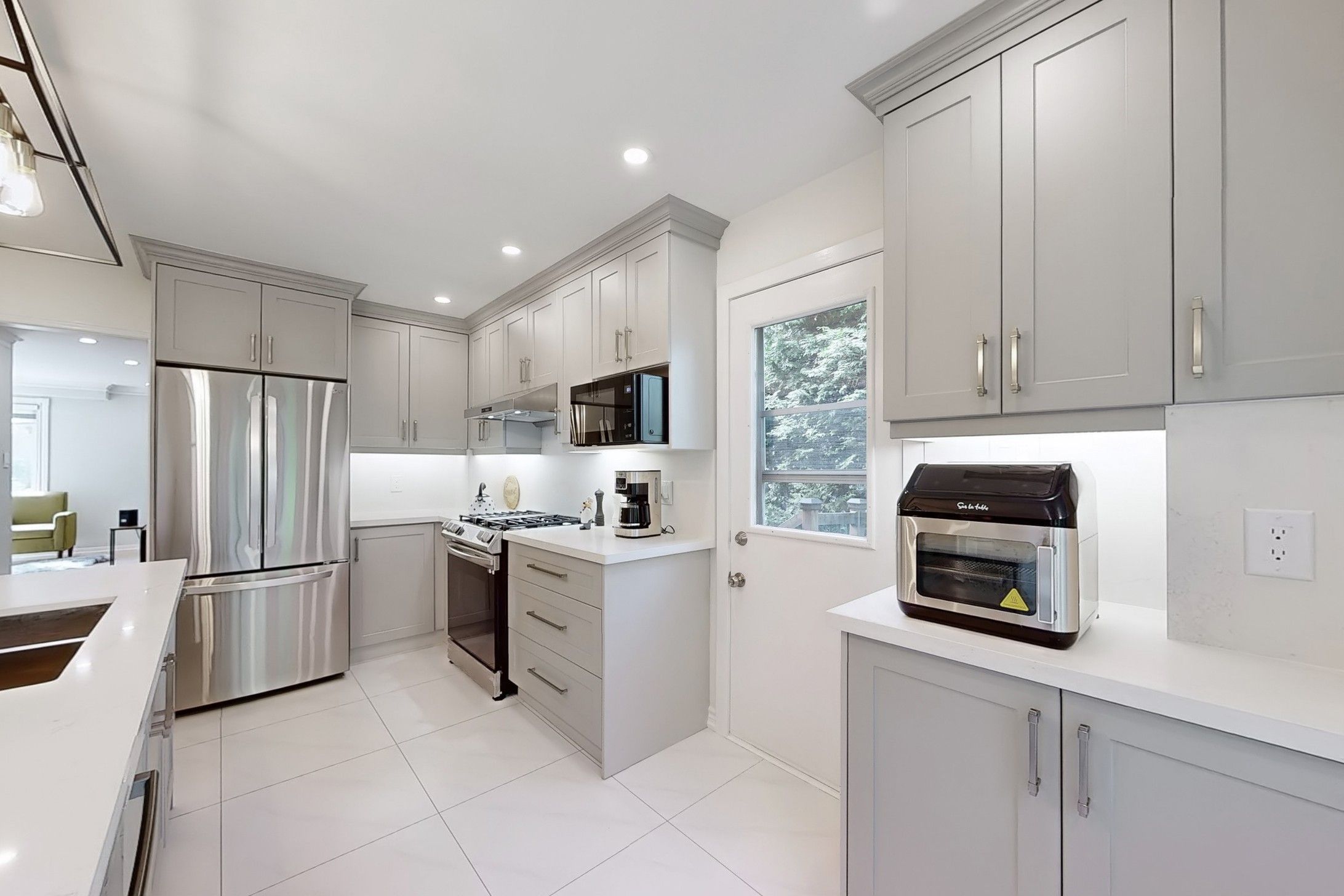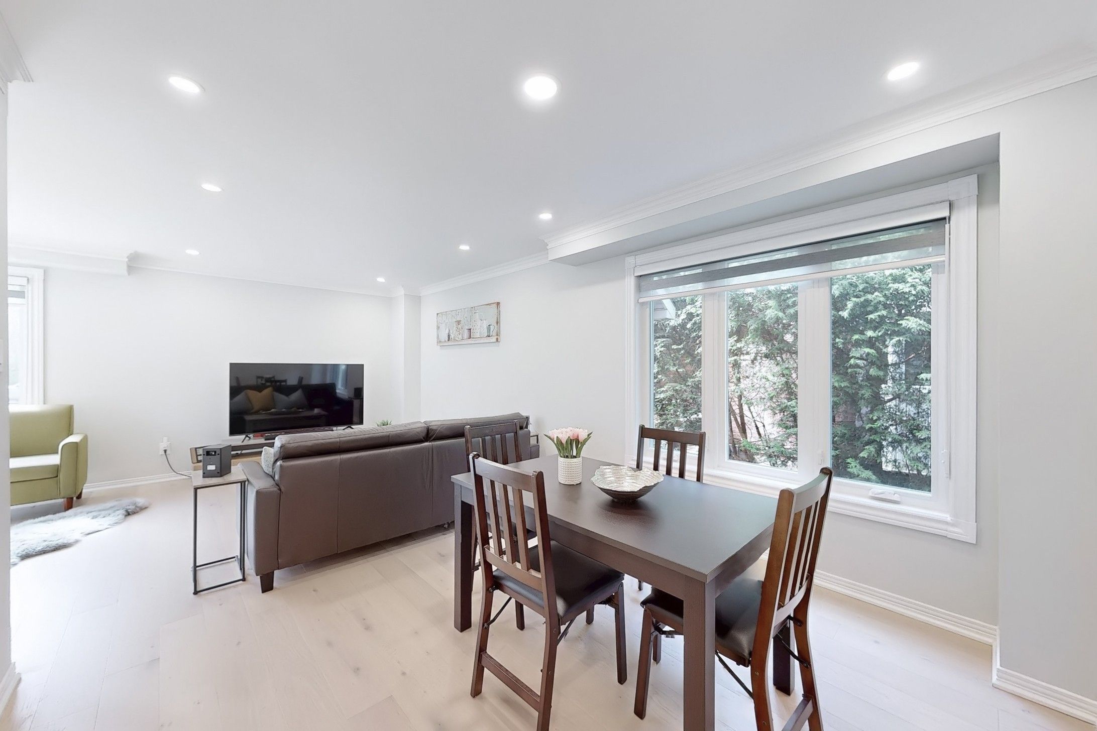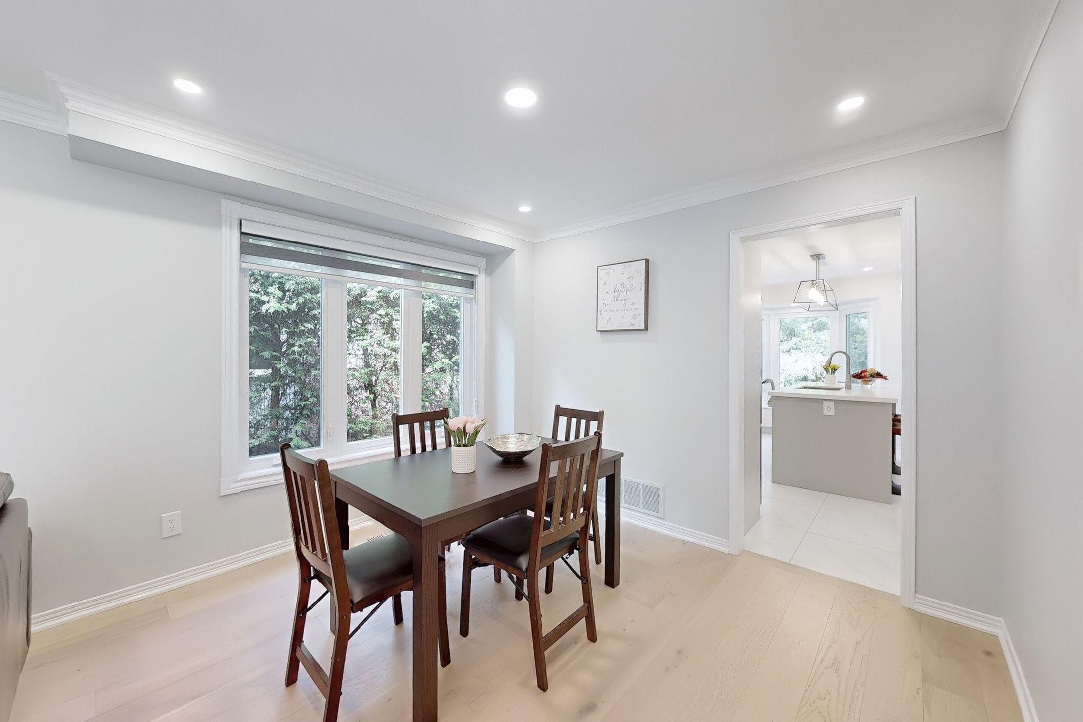 Stunning, fully renovated from top to bottom in 2023, a cozy home with a large pie shaped yard in the prestigious Unionville neighbourhood. Spacious Living and Dining Room space combined for comfort and perfect to entertain guests in. Gorgeous modern Kitchen and Family Room overlooks a quiet green space with a wood deck and additional small deck at the side for BBQ. Smooth ceiling with adjustable pot lights, two fireplaces and hardwood flooring on the Ground Floor. Newly installed large windows (2023) welcome natural light into home throughout the seasons (exclude basement), patio door (2023), built-in bench Kitchen, kitchen backsplash, quartz counter tops, oak stairs, iron pickets, interlocking driveway and side yard, wood deck. Finished basement with a spacious recreation room and two additional bedrooms and a bathroom. Walking distance to Main Street, Toogood Pond, Unionville P.S. and only a few minutes drive to Markville Mall, Markville Secondary School, Go Train Station, Varley Art Gallery, library etc. Don't Miss! Must see to appreciate!