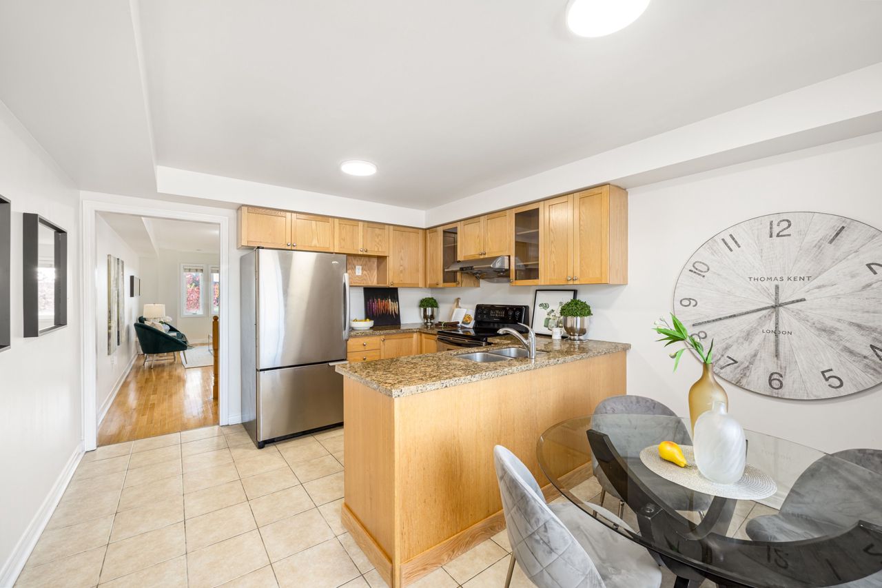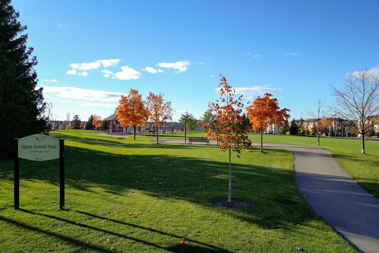 Charming Freehold Townhome Overlook Park In The Heart Of Cornell! This Beautiful 3-Bedroom Townhouse Offers An Ideal Blend Of Comfort, Style, And Convenience. Included With A Bright & Functional Layout, Eat-In Kitchen W/Granite Counters, S/S Appliances, Oak Cabinets, Undermount Sink & W/O To Large Deck, Ensuites In Top Bedrooms, Basement Rec Rm W/Pot Lites & Laundry Room, Direct Access To Garage, Long Driveway Parks 2 Cars! Close To Go Station, Schools, Parks, Community Centre, Hospital & Minutes To Hwy 407.
