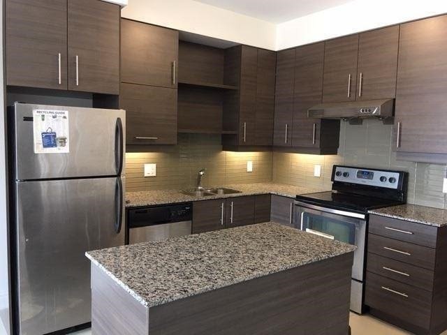 Luxury Condo, Bright And Quiet, 9 F' Ceiling, *572 Sq Ft One Bedroom Suite* Excellent Location, Close To Hwy 7, 407, 404, Walk To Plaza, Tim Horton, Restaurants, Public Transit, Unobstructed View, Quiet Neighbourhood, Great Facilities: Indoor Pool, Sauna, Gym, Party Room, Library, Visitor Parking, 24 Hr Security. S/S Fridge, Stove, B/I Dishwasher, Range Hood, Washer & Dryer. All Existing Light Fixtures & All Existing Window Coverings, Centre Island In The Kitchen, One Parking, One Locker. (Tenant Pays Hydro, Water, Cable & Tenant Insurance).