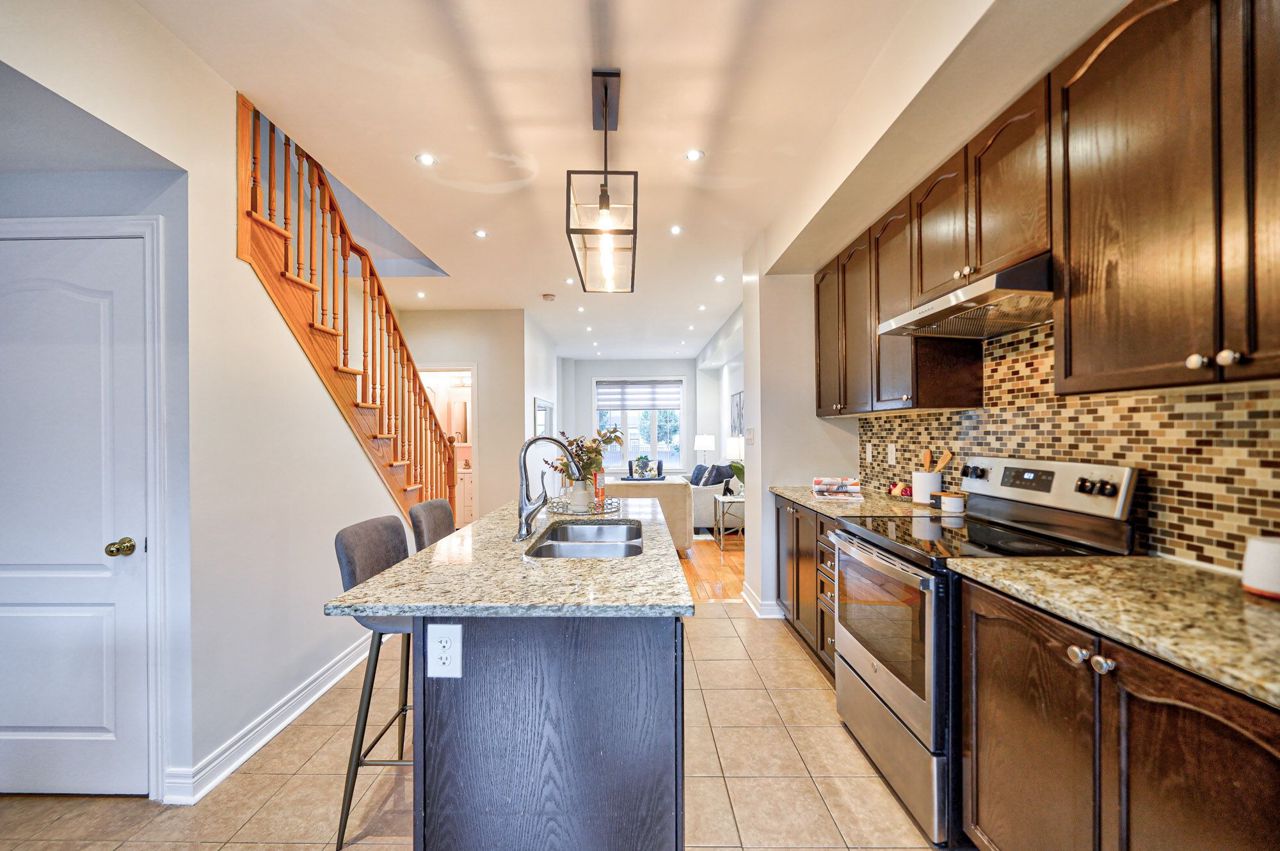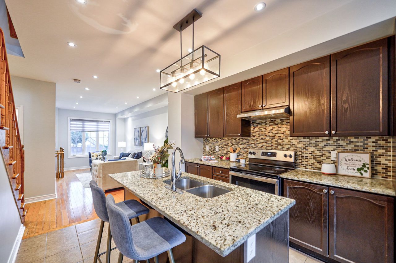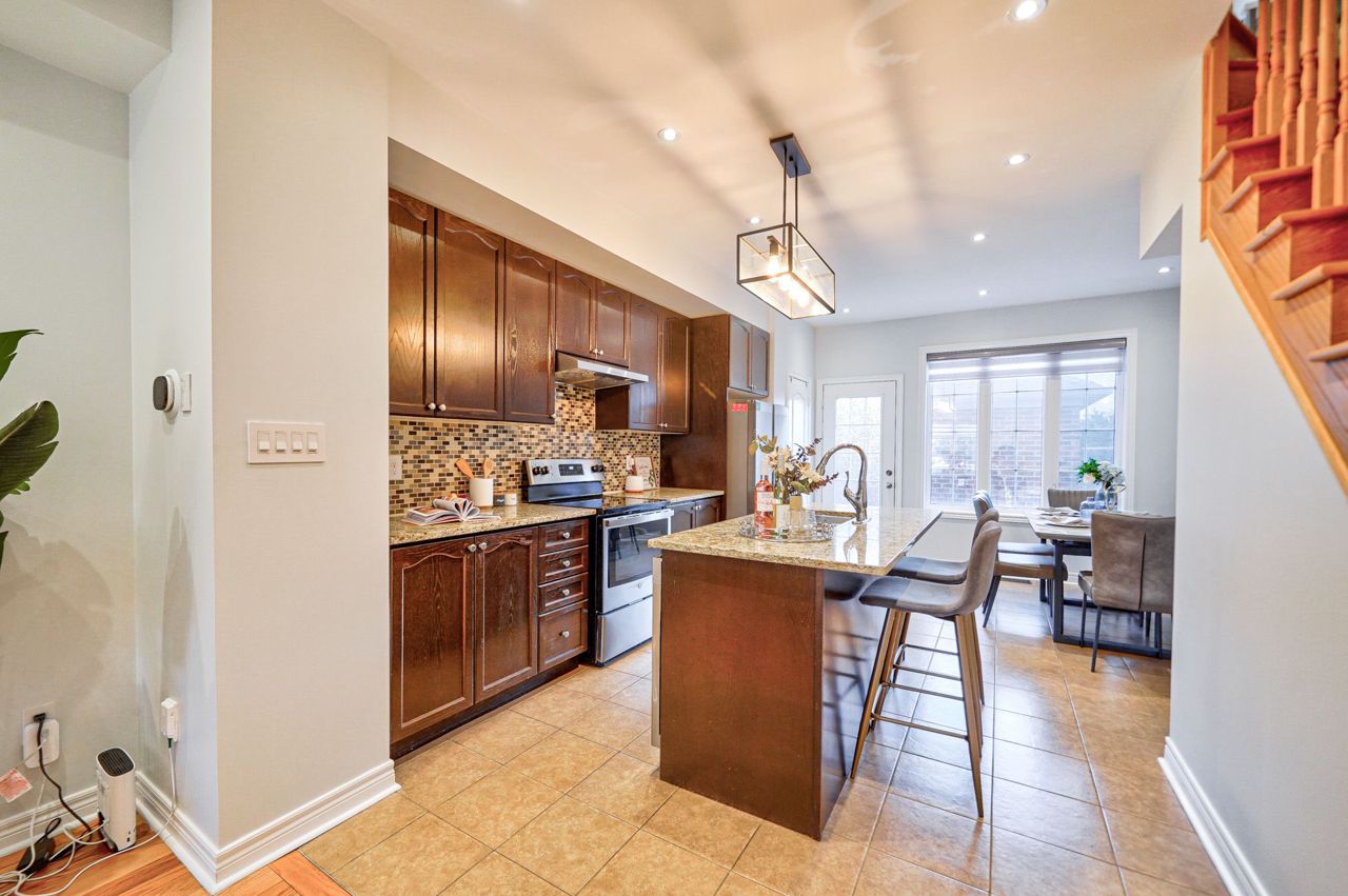 Well Maintained Freehold Townhouse In Desirable Cornell Community. 9' Smooth Ceiling, Hardwood Floor & Pot Lights Throughtout Main Floor. Upgraded Kitchen With Centre Island, Granite Countertop, Ceramic Backsplash & S/S Appliances. Upgraded Light Fixtures. Interlocked Backyard. Minutes To Schools, Daycare, Parks, Community Centre, Markham Mall, Transit, 407, Go Station And Markham Hospital. Short Walk To Express Bus To Finch Subway Station.