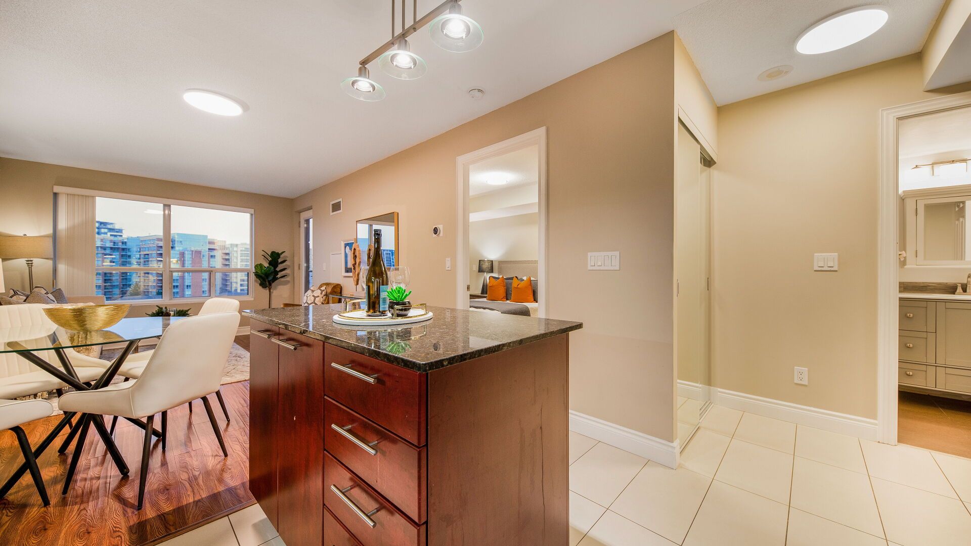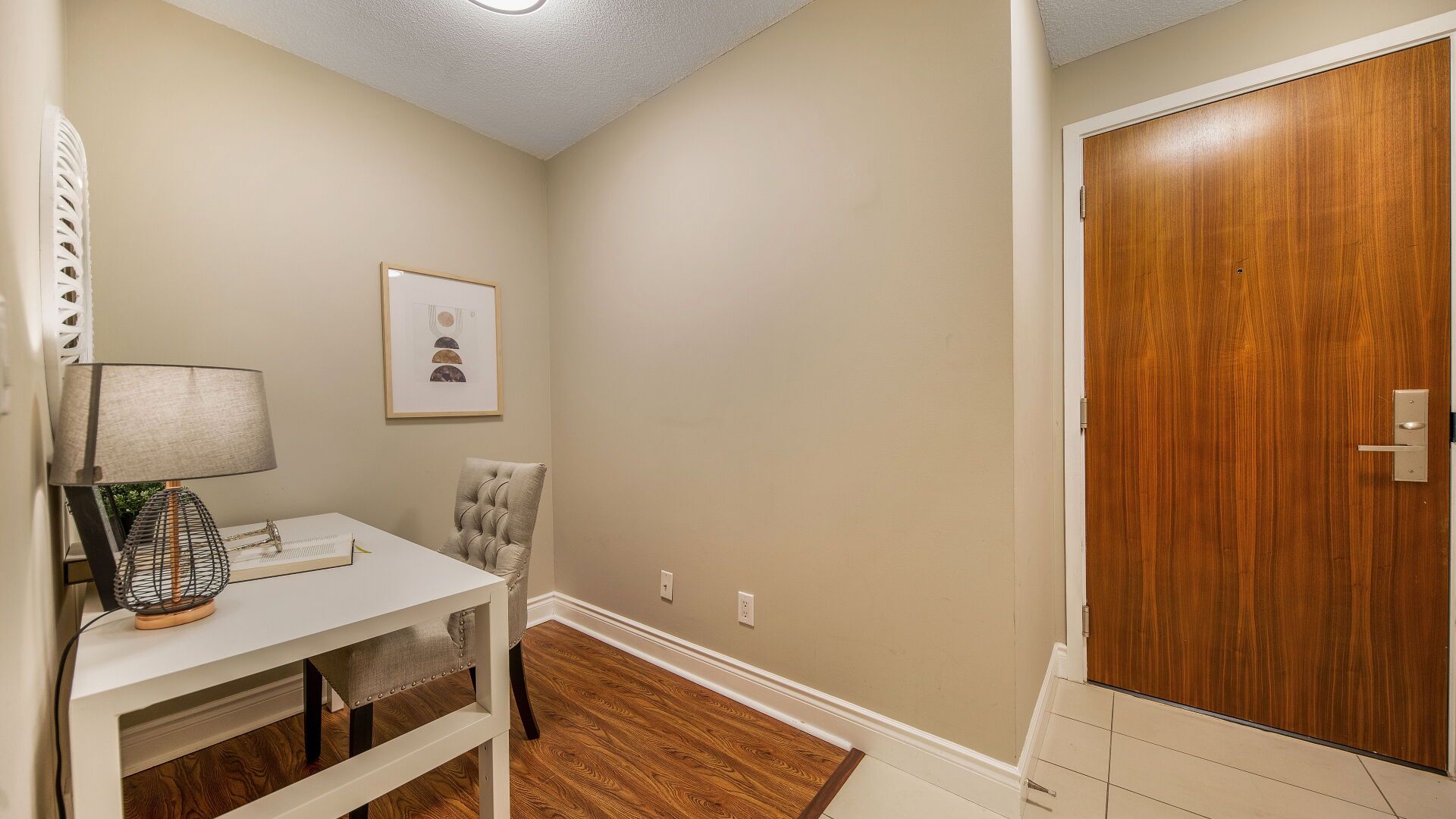 Welcome Home! Introducing a beautiful 1-bedroom unit with a homeoffice, offering unobstructed north views of a serene parkette. Laminate flooring and ceramic tiles create an elegant interior. This prime location provides easy access to Hwys 407 & 404, Langstaff Go Train, and direct Viva bus to Finch Station. Nearby are grocery stores, restaurants, Times Square, and East Beaver Creek. This unit combines modern convenience with a picturesque setting, making it a superb choice for your next homeAmenities: Gym, indoor pool, Sauna, Steam room, Game room, Party Room, Theater Room, Guest Suite, Visitor parking