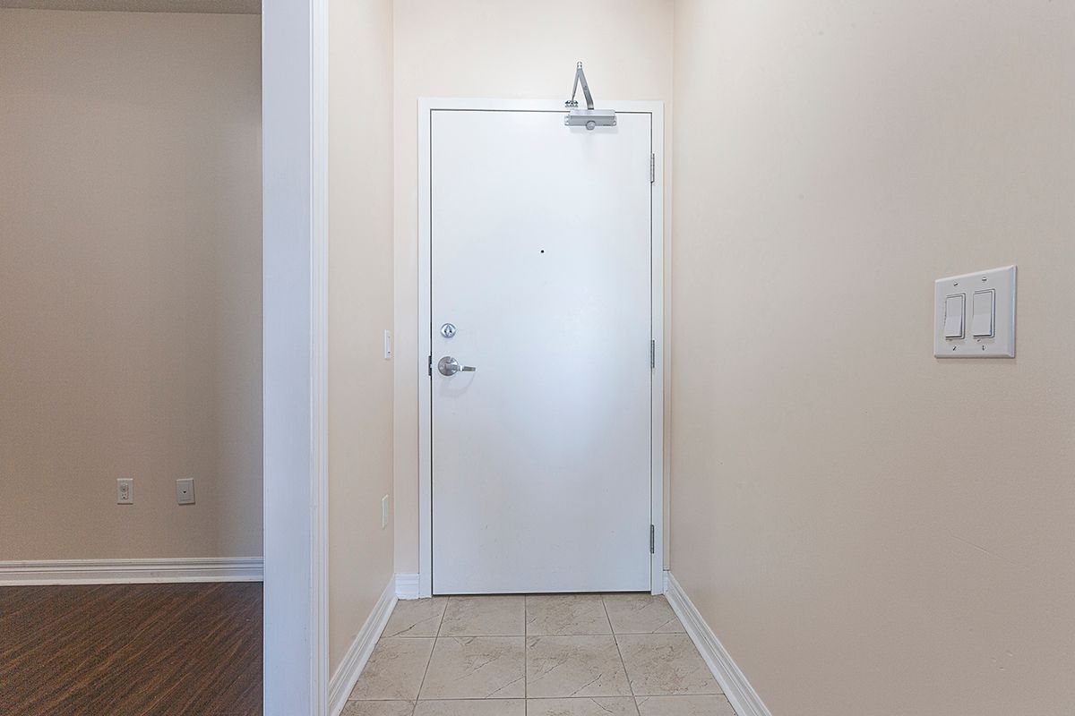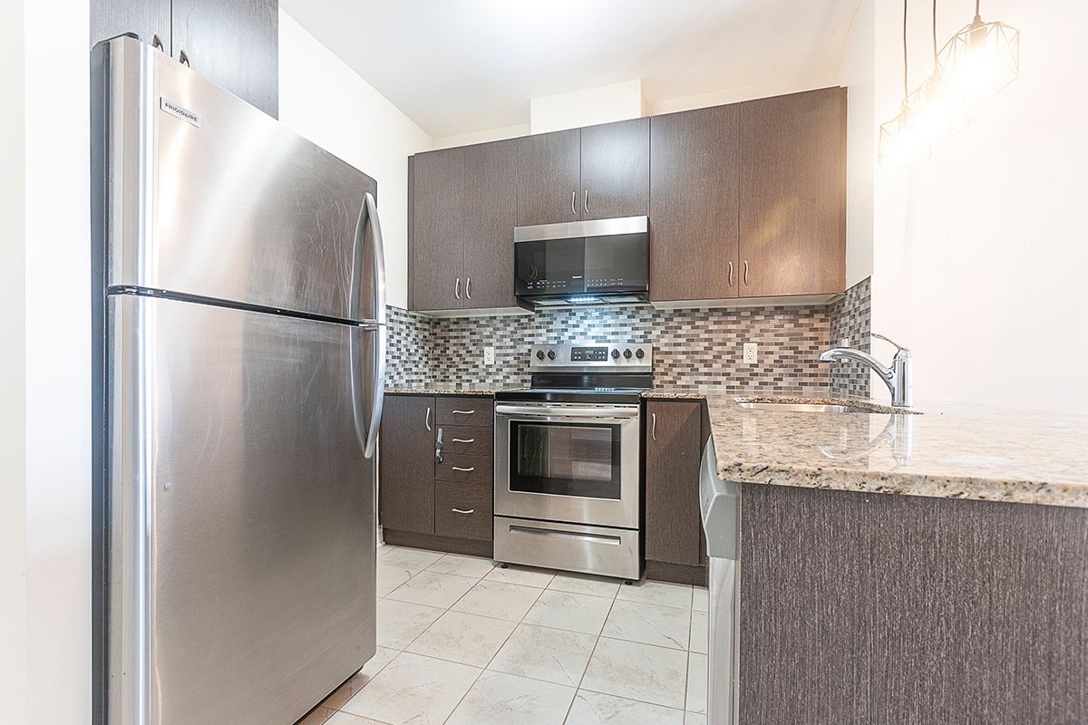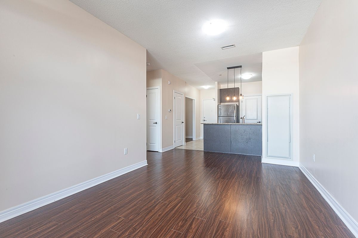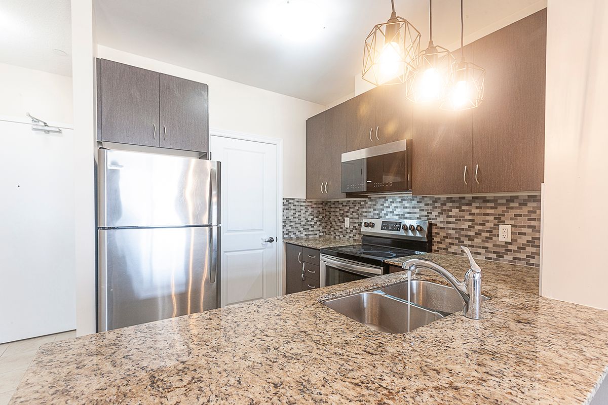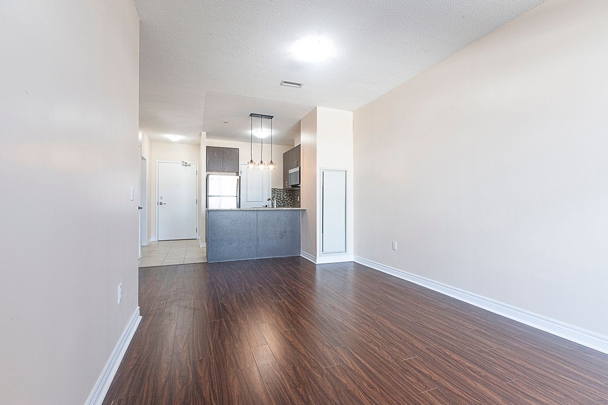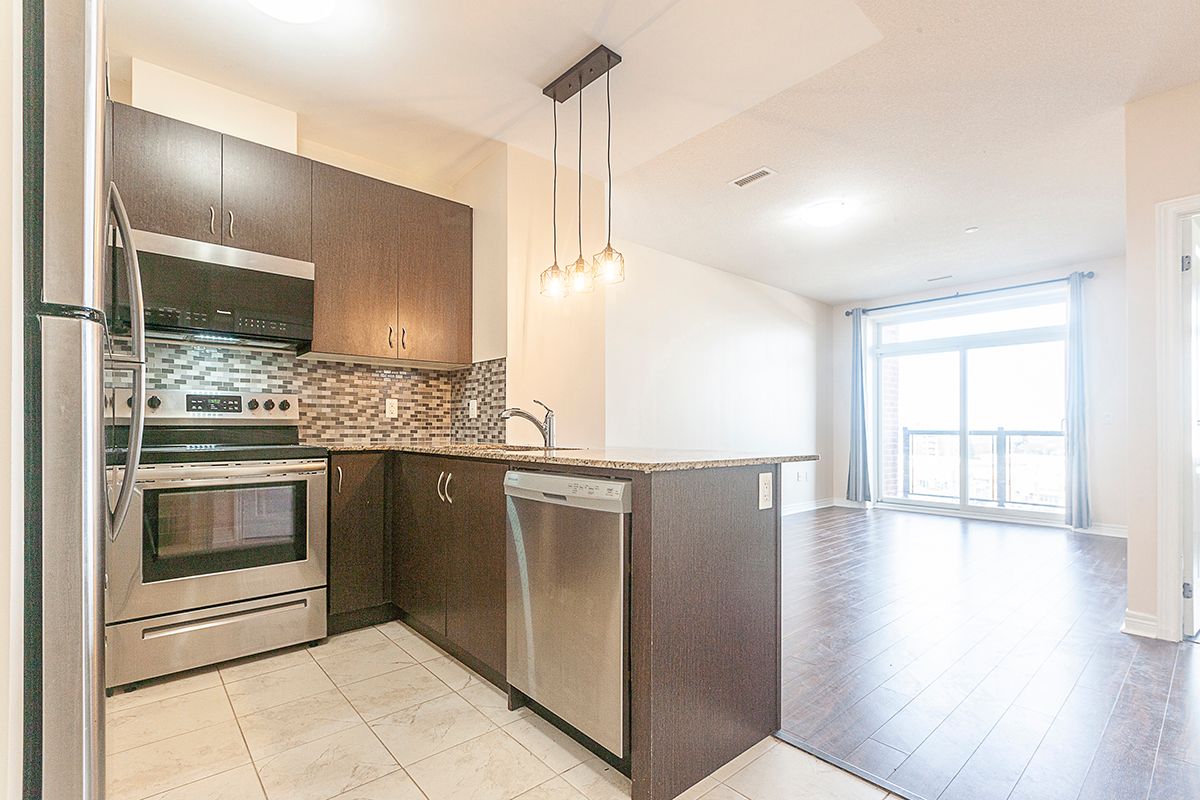 Excellent opportunity to own an Eco-friendly condo in a prime area of Markham. Immaculate 1 Bedroom Plus Den located on the 6th floor, walking distance To Shopping, Home Depot, Beer, & LCBO stores, Canadian Tire, Costco, Restaurants, Transit, & Major Highways. Interior Features include: freshly painted walls, 9Ft Ceilings, Laminate floors throughout, Kitchen With Granite Counters, Breakfast Bar, Stainless Steel Appliances, En-Suite Laundry, Living Room With Walkout To Open Balcony, Comes With One Underground Parking Spot And Storage Locker. Building has Solar panels, Geo-Thermal Heating & cooling which results in lower Maintenance fees, ideal for investors too. Amenities include: Exercise room/gym, games room and party room and ample visitor parking.All electrical light fixtures, window coverings, Stainless Steel fridge, stove, built in microwave and dishwasher, Washer And Dryer, One Underground Parking Spot And One Storage Locker.