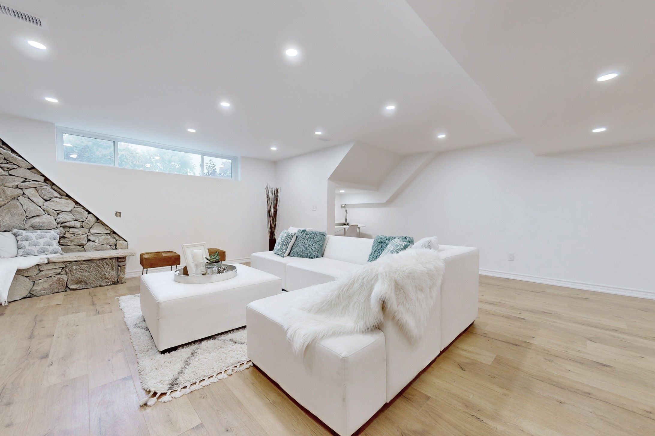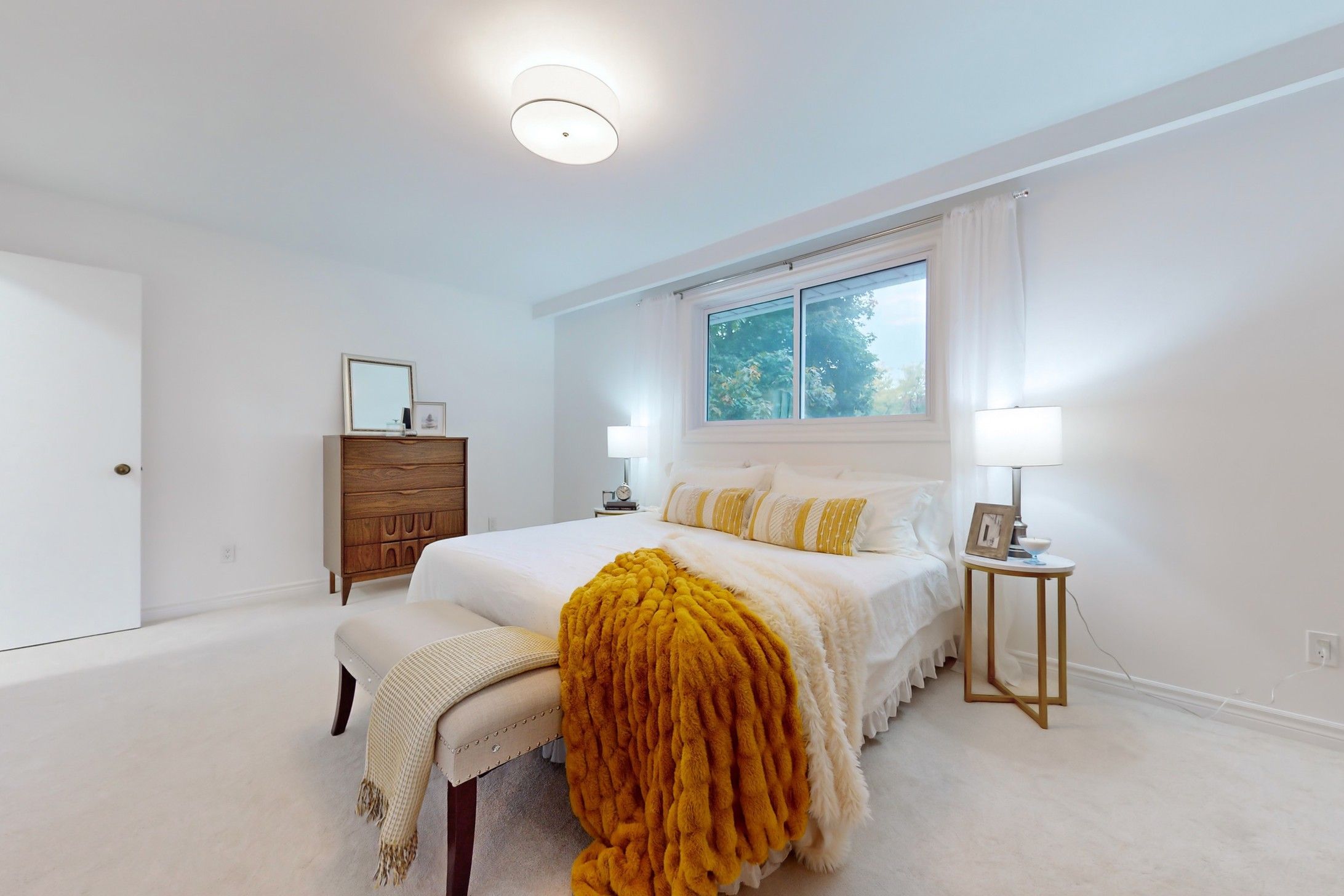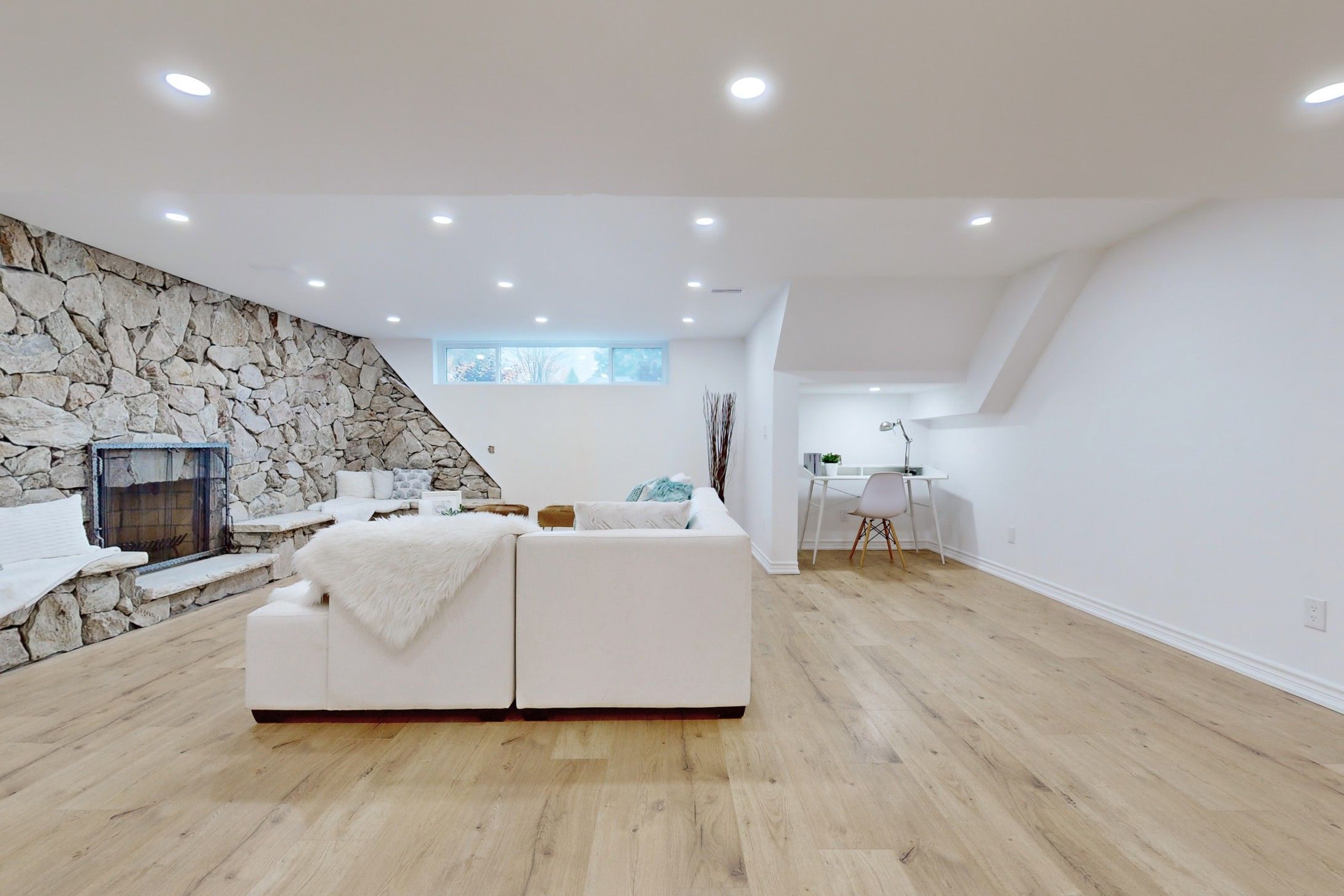 At approx. 3400 sq ft of finished living space, this special home is spacious and gracious and must be seen to appreciate. This home is bigger than it looks. The unique backsplit layout would make an exceptional multi-generational family home or divided into 2 separate living spaces - 5 bedrooms, 4 bathrooms. Newly renovated fabulous basement level with gorgeous stone fireplace, large windows, beautiful flooring, new 2-pc bath, potlights, office nook. This is the perfect entertainment home or home for growing or larger family. Side entrance to ground level laundry and walk-out from family room to fenced and private backyard. Newer windows, furnace, AC, shingles. Newly renovated primary bedroom ensuite bath, freshly painted, new broadloom, some electrical updates, large double garage, no sidewalk so lots of driveway parking, easy walk to Main St., schools, shopping and transit, located in established, prime Markham Village neighbourhood.Side entrance to laundry area, walk-out from family room to spacious backyard.