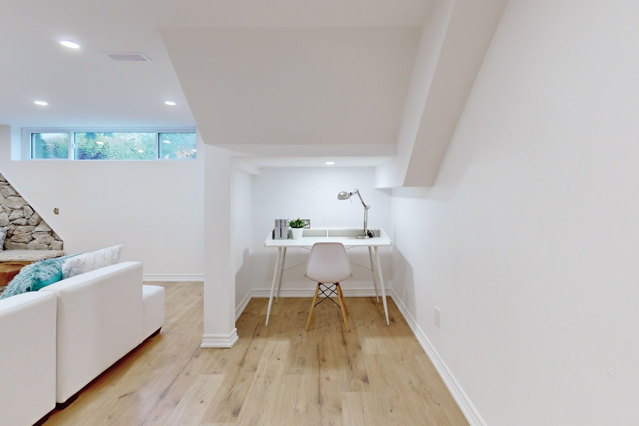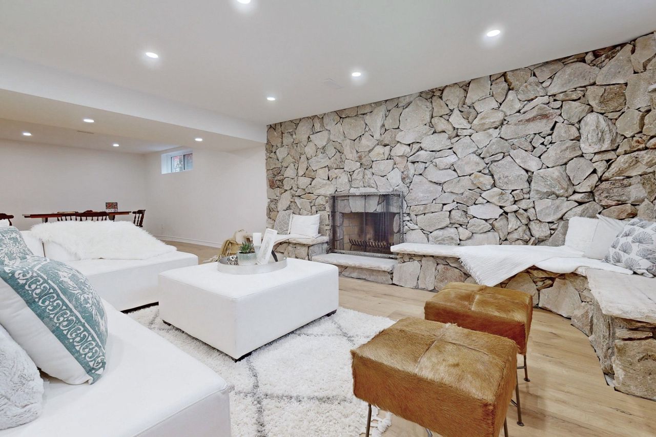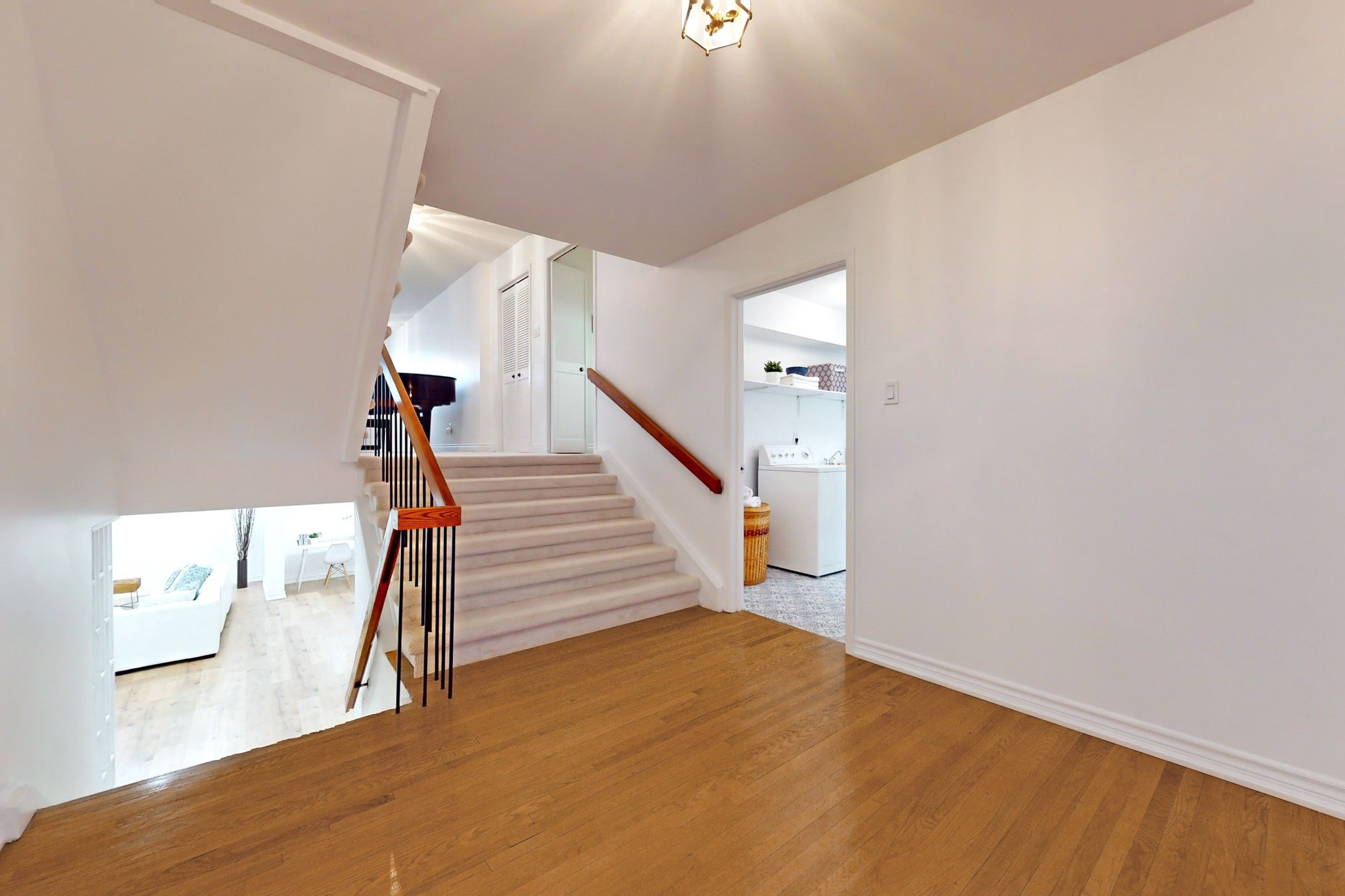 At approx. 3400 sq ft of finished living space, this special home is spacious and gracious and must be seen to appreciate. This home is bigger than it looks. The unique backsplit layout would make an exceptional multi-generational family home or divided into 2 separate living spaces - 5 bedrooms, 4 bathrooms. Newly renovated fabulous basement level with gorgeous stone fireplace, large windows, beautiful flooring, new 2-pc bath, potlights, office nook. This is the perfect entertainment home or home for growing or larger family. Side entrance to ground level laundry and walk-out from family room to fenced and private backyard. Newer windows, furnace, AC, shingles. Newly renovated primary bedroom ensuite bath, freshly painted, new broadloom, some electrical updates, large double garage, no sidewalk so lots of driveway parking, easy walk to Main St., schools, shopping and transit, located in established, prime Markham Village neighbourhood.Side entrance to laundry area, walk-out from family room to spacious backyard.