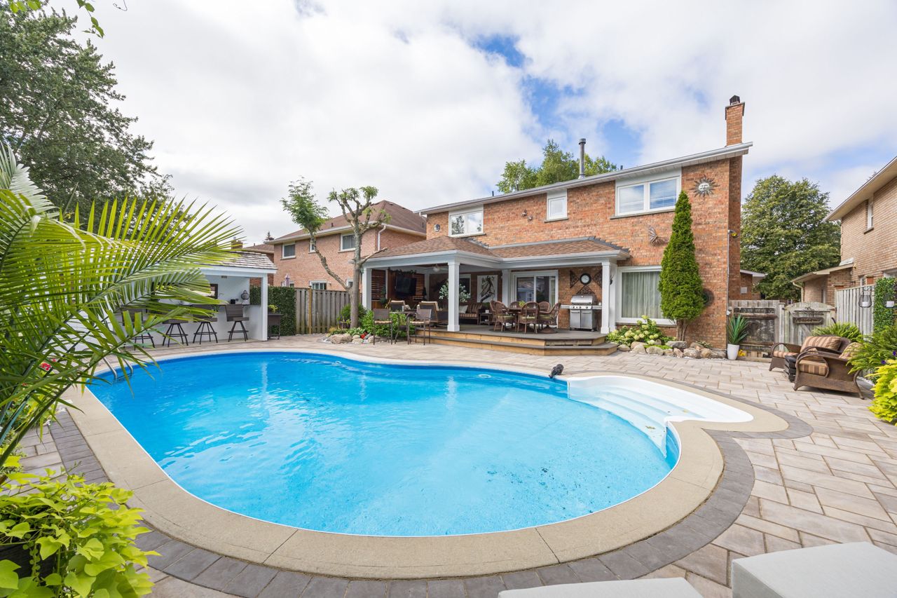 Exquisite 5 Bedrooms, Appx. 3000sf. Home On Premium Lot With Stunning Designer Décor & Outdoor Paradise! This One-Of-A-Kind Property Showcases A Meticulously Open Concept, Featuring An Updated Kitchen W/Granite Countertops, Custom Backsplash & S/s Appliances. The Family Room Is Adorned W/ Custom-Built Bookcase & Gas Fireplace, Complemented By Custom Wainscoting, Cornice Moldings, Upgraded Trim & Pot Lights Throughout. The Primary Bedroom Is A Genuine Retreat, Complete W/ Spa-Inspired En-suite. The Professionally Finished Basement Offers Great Room W/Fireplace, Additional Bedroom & 3pc Bathroom. Step Outside To Your Private Oasis, Boasting A Cabana, Bar, BBQ, Dining area, A Saltwater Pool & 2pc Washroom, Making It An Entertainer's Dream. Artfully Designed Landscaping, PVC Decking, Extensive Interlocking Pathways, and Driveway ! If You're Seeking A Home That Combines Elegance, Comfort, And Entertainment, This Property Is A Must-See! Don't Miss The Opportunity To Make It Yours!