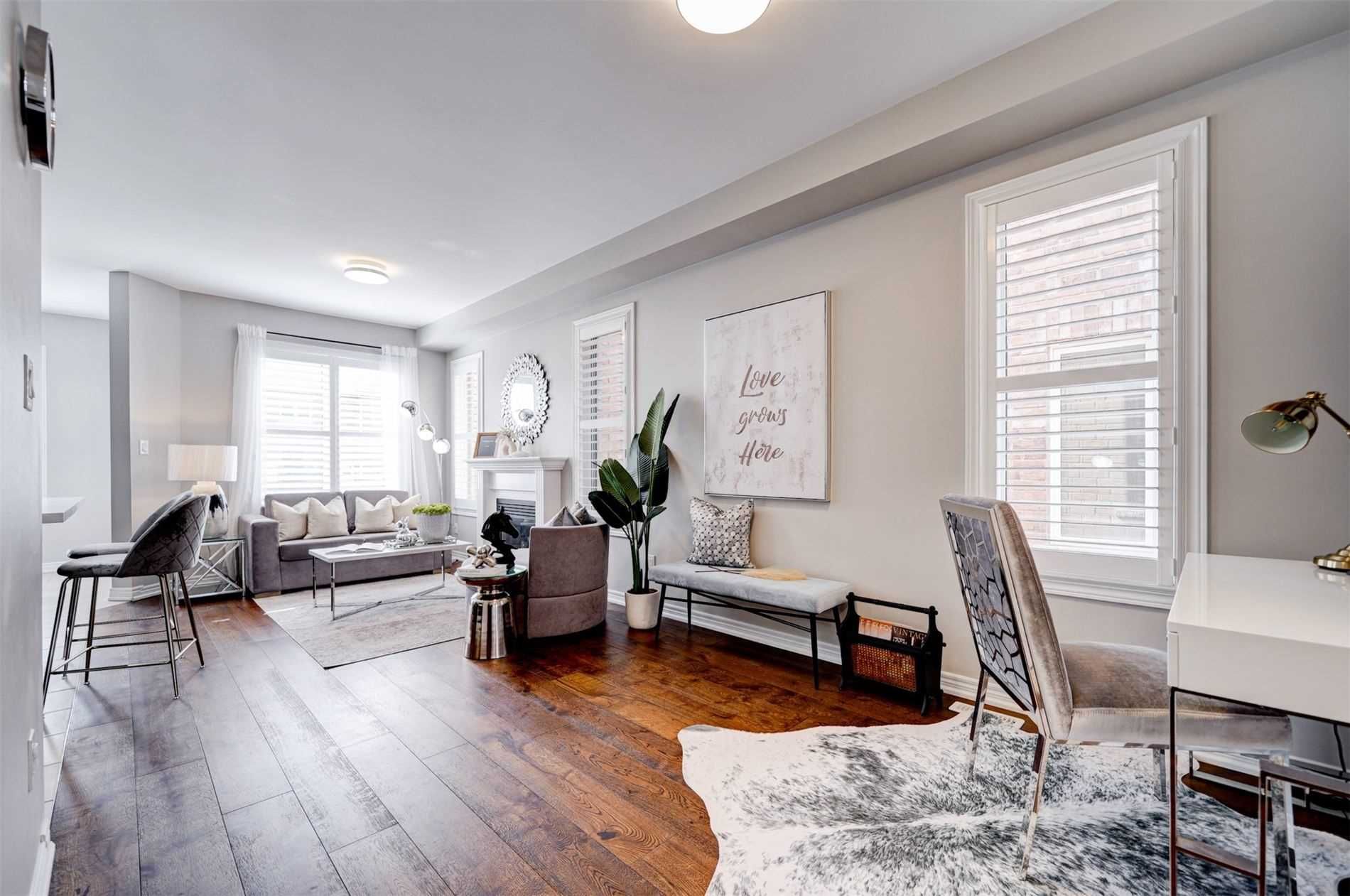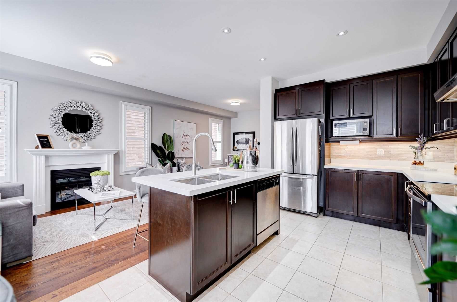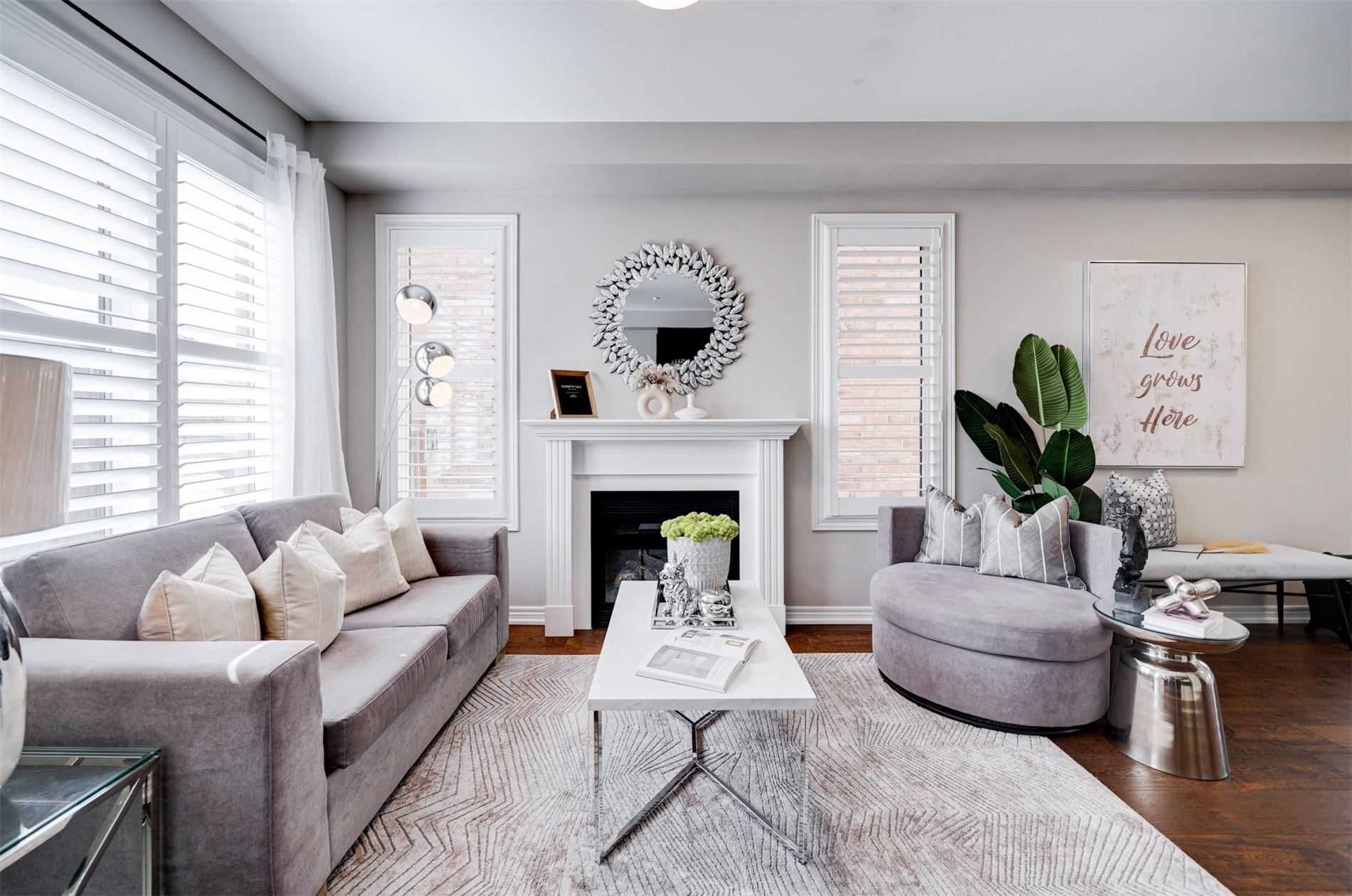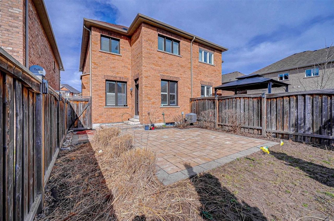 Beautiful And Bright 3 Br 3 Wr Semi-Detached Home In A Well Sought After Neighborhood Box Grove Community. Elegantly Maintained With Open Concept With 9Ft Ceiling On Main Floor And Practical Layout. Smooth Ceiling With Pot Lights. California Shutters Thru-Out The House. Hardwood Fl Thru-Out Main Fl. Fireplace @ Family Room. Upgrade Kitchen With Central Island, Quartz Countertop, Ceramic Backsplash & W/O To Yard. Hardwood Stairs. Master Bedroom W/4Pc Ensuite & His/Hers W/I Closet. Direct Access To Garage. Upgraded Interlocking @ Backyard. Long Driveway With Parking 2 Cars & No Sidewalk. Close To School, Park, Hwy 407, Shopping, Walmart & All Amenities. Must See!California Shutters. Upgrade Light Fixtures.