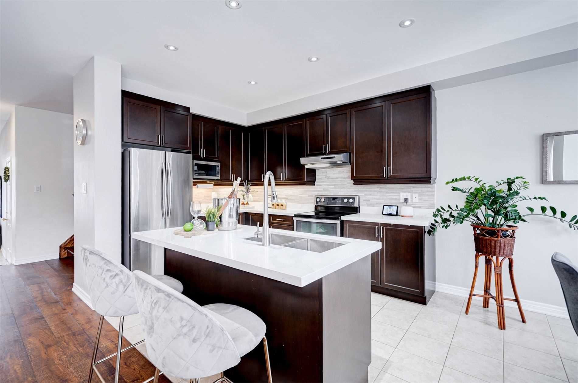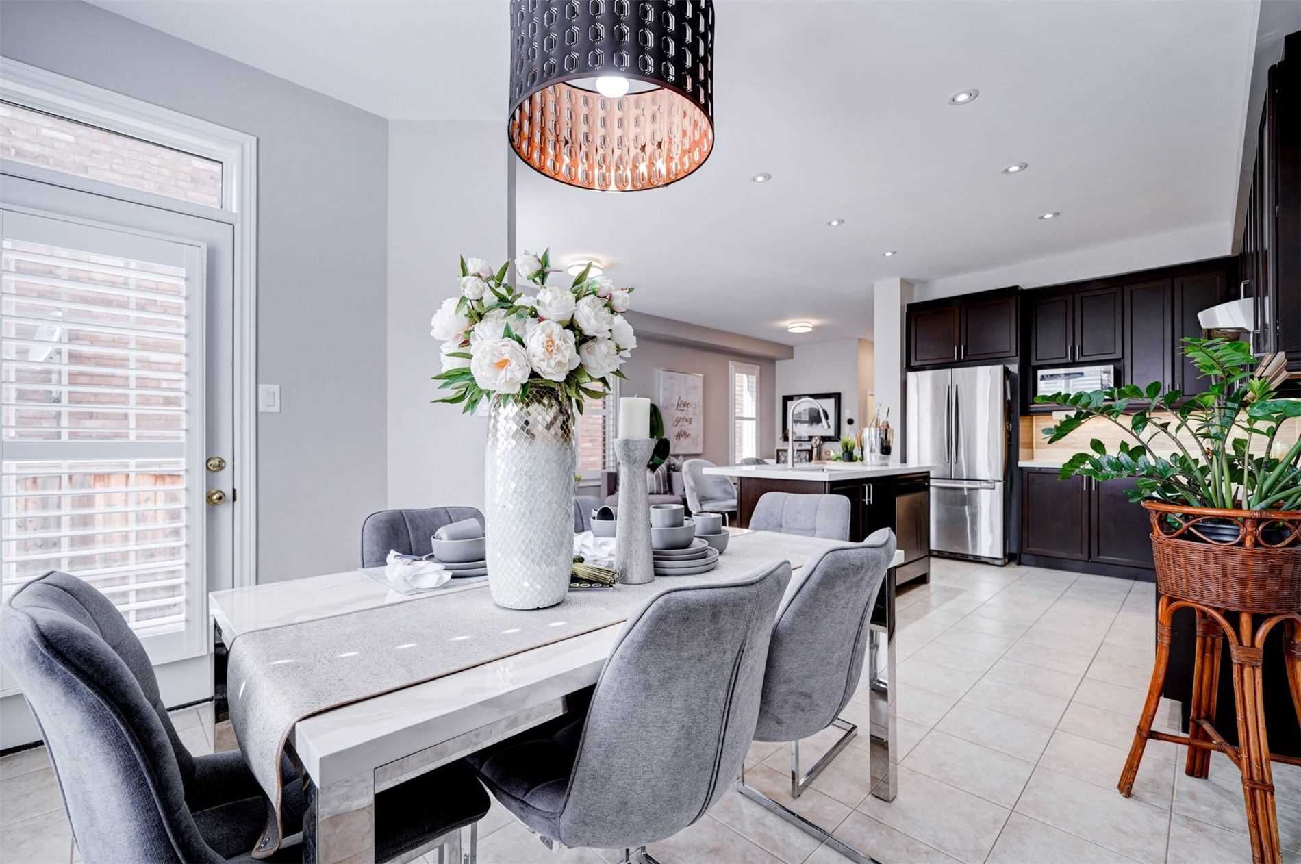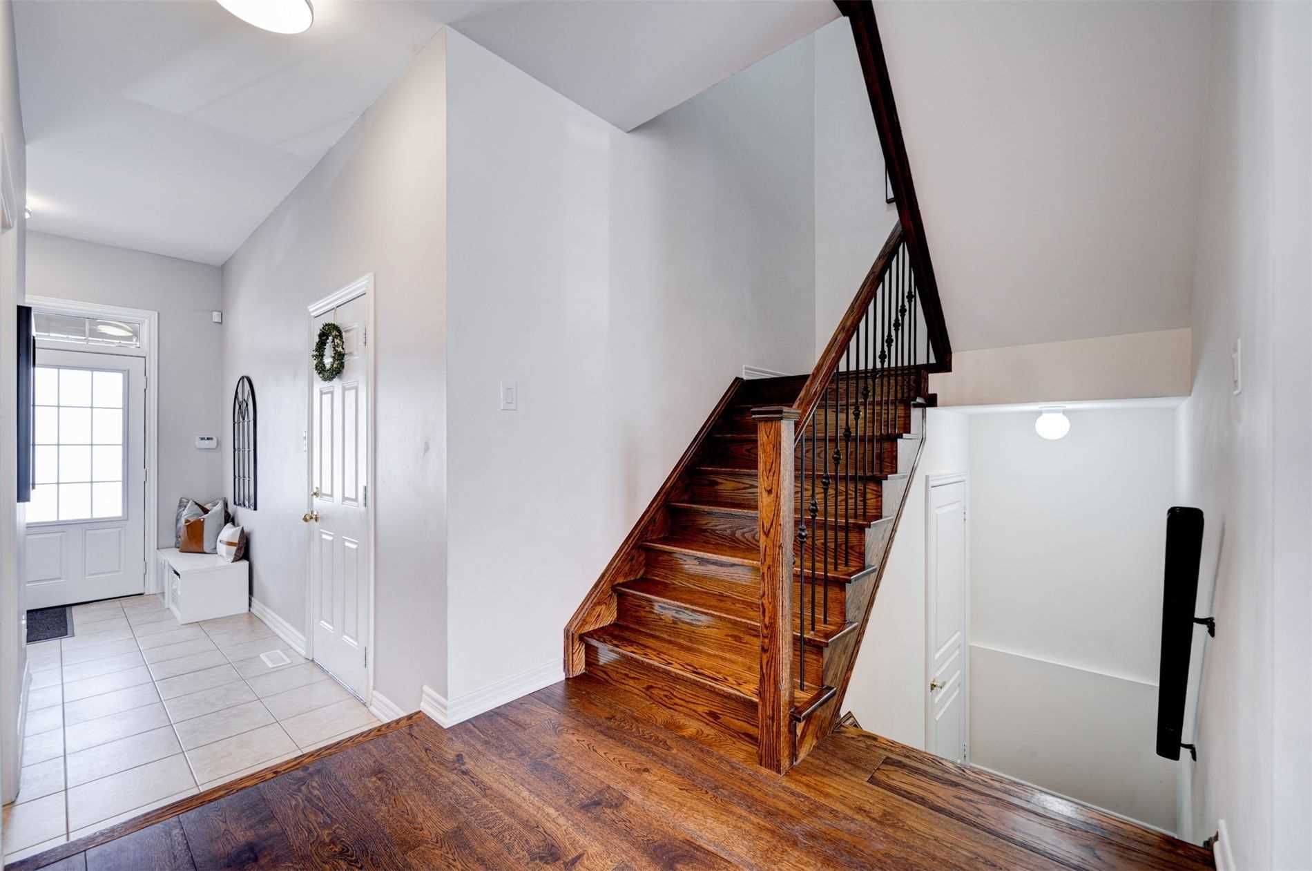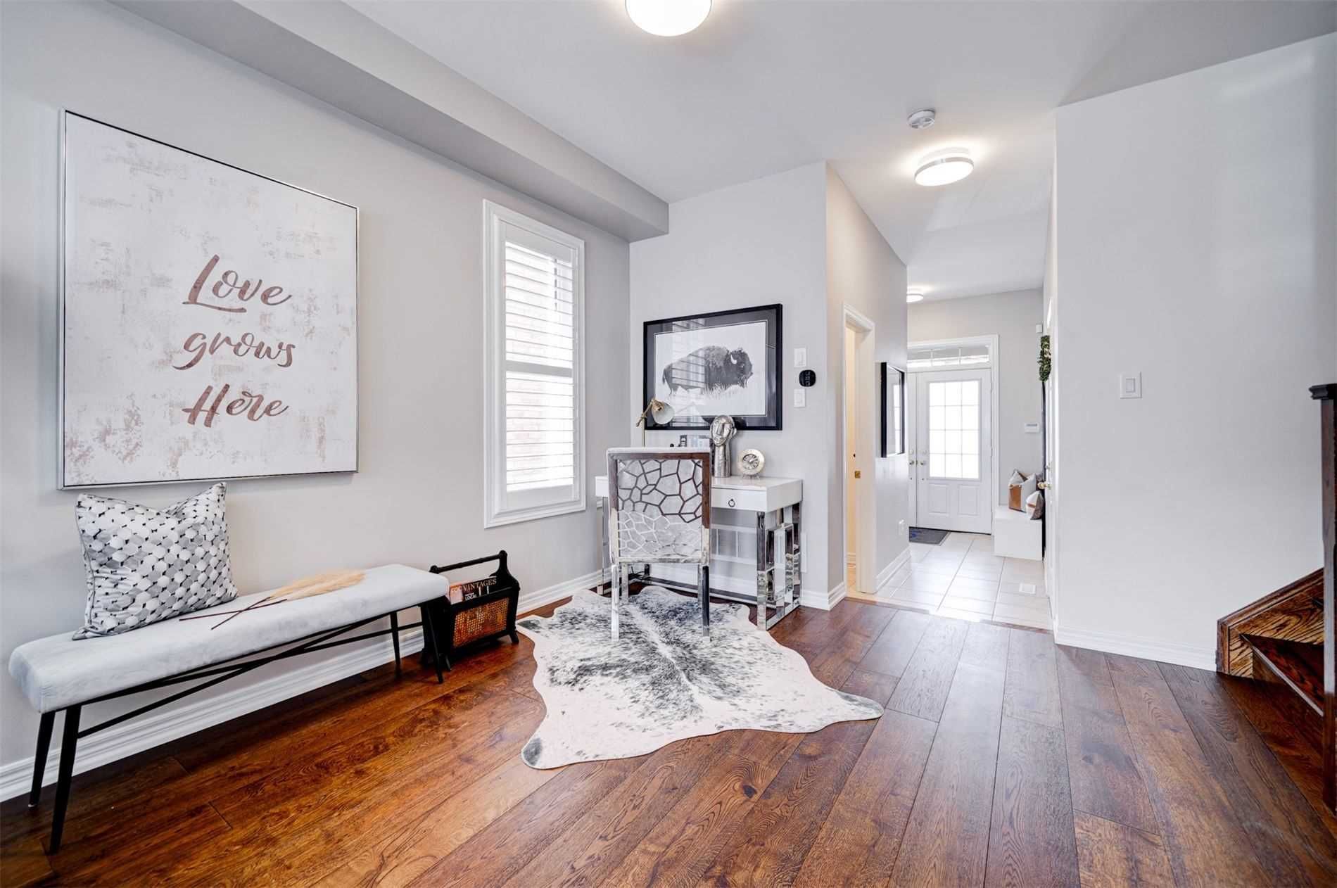 Beautiful And Bright 3 Br 3 Wr Semi-Detached Home In A Well Sought After Neighborhood Box Grove Community. Elegantly Maintained With Open Concept With 9Ft Ceiling On Main Floor And Practical Layout. Smooth Ceiling With Pot Lights. California Shutters Thru-Out The House. Hardwood Fl Thru-Out Main Fl. Fireplace @ Family Room. Upgrade Kitchen With Central Island, Quartz Countertop, Ceramic Backsplash & W/O To Yard. Hardwood Stairs. Master Bedroom W/4Pc Ensuite & His/Hers W/I Closet. Direct Access To Garage. Upgraded Interlocking @ Backyard. Long Driveway With Parking 2 Cars & No Sidewalk. Close To School, Park, Hwy 407, Shopping, Walmart & All Amenities. Must See!California Shutters. Upgrade Light Fixtures.