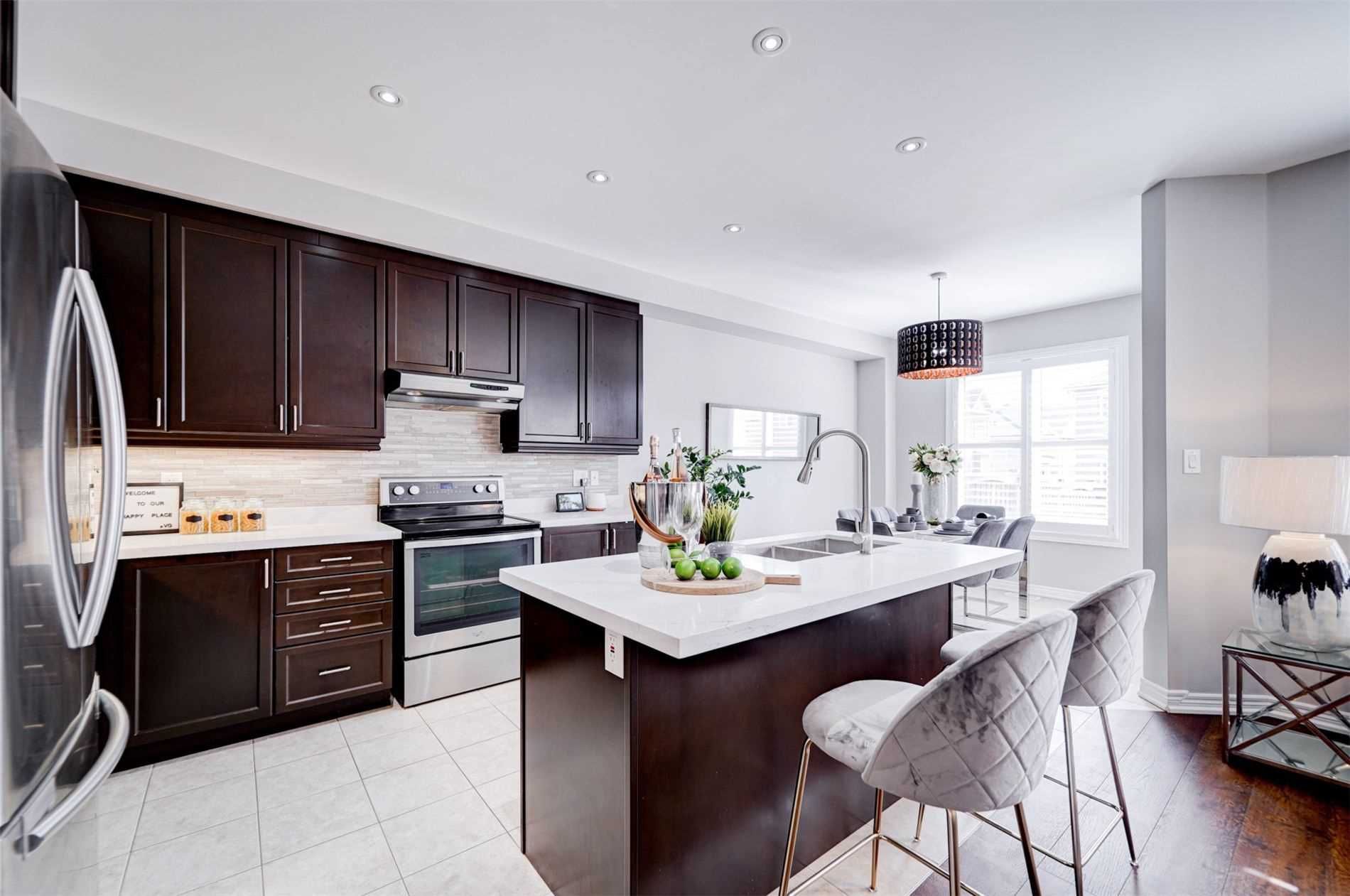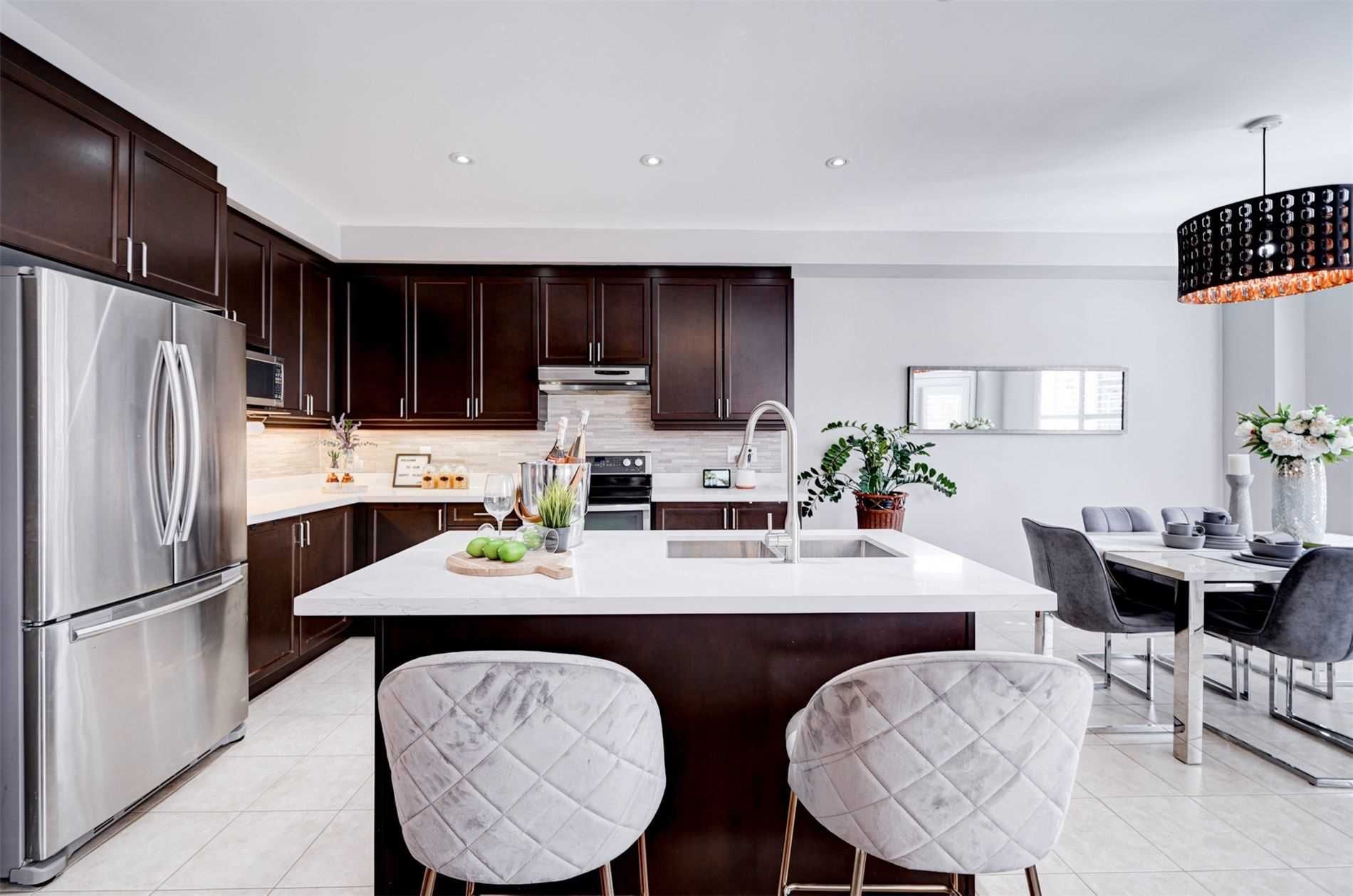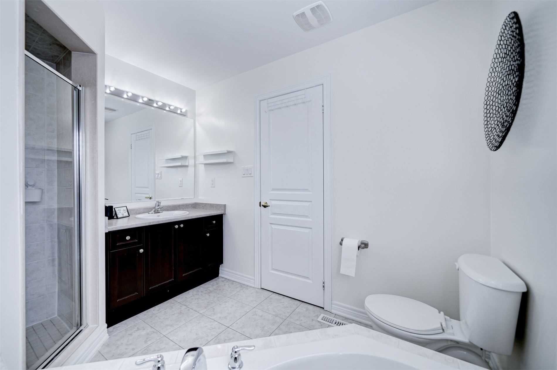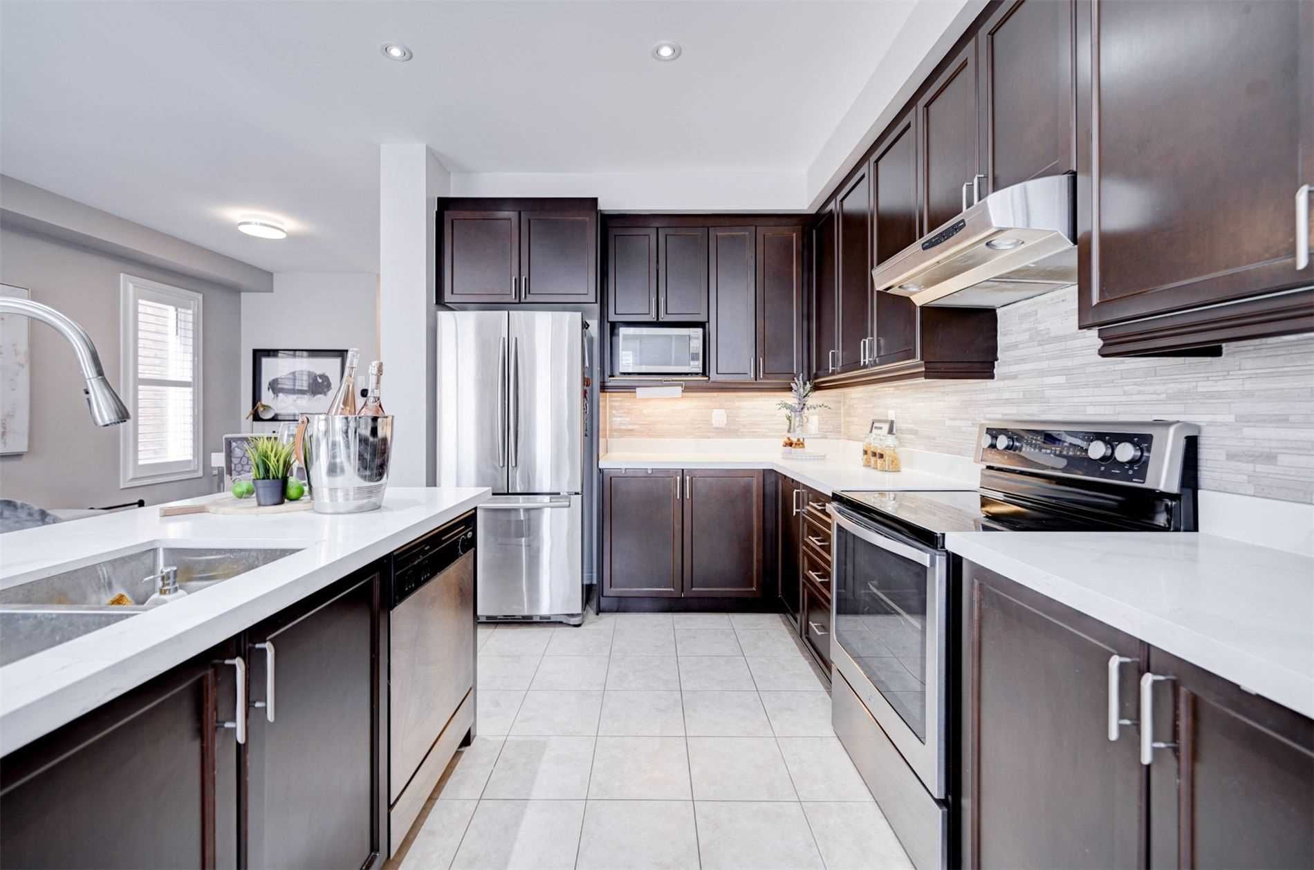 Beautiful And Bright 3 Br 3 Wr Semi-Detached Home In A Well Sought After Neighborhood Box Grove Community. Elegantly Maintained With Open Concept With 9Ft Ceiling On Main Floor And Practical Layout. Smooth Ceiling With Pot Lights. California Shutters Thru-Out The House. Hardwood Fl Thru-Out Main Fl. Fireplace @ Family Room. Upgrade Kitchen With Central Island, Quartz Countertop, Ceramic Backsplash & W/O To Yard. Hardwood Stairs. Master Bedroom W/4Pc Ensuite & His/Hers W/I Closet. Direct Access To Garage. Upgraded Interlocking @ Backyard. Long Driveway With Parking 2 Cars & No Sidewalk. Close To School, Park, Hwy 407, Shopping, Walmart & All Amenities. Must See!California Shutters. Upgrade Light Fixtures.
