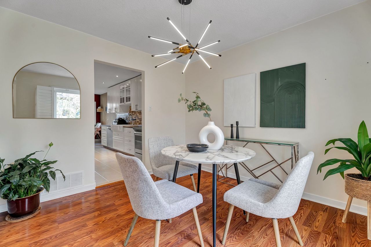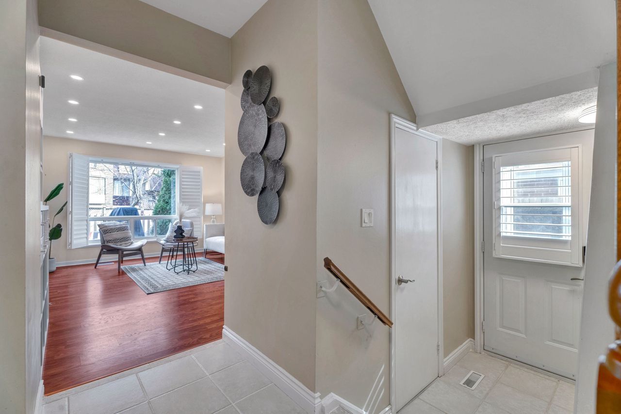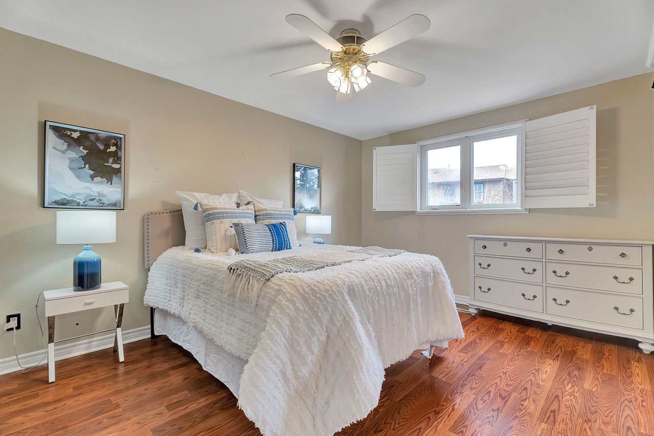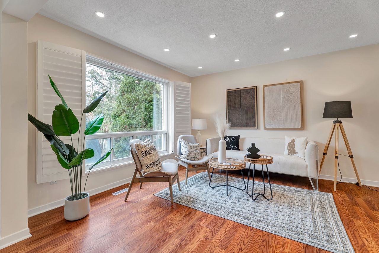 This is a Link Home Property. Gorgeous and cosy three-bedroom residence located in the highly private desirable German Mills neighborhood. This home is situated on a premium private pie-shaped lot, boasting a spacious dine-in kitchen with tumbled marble backsplash and pantry. The open-concept living and dining area features laminate flooring and access to a fully fenced yard. Separate Entrance to basement. Very Top ranking Catholic High School and Public School area. Quick TTC commute access. Close to 404, 401, DVP and 407.Stainless Steel (Fridge, Stove, B/I Dw). B/I Micro, Washer, Dryer, All Elfs, California Shutters, Gdo & Remotes