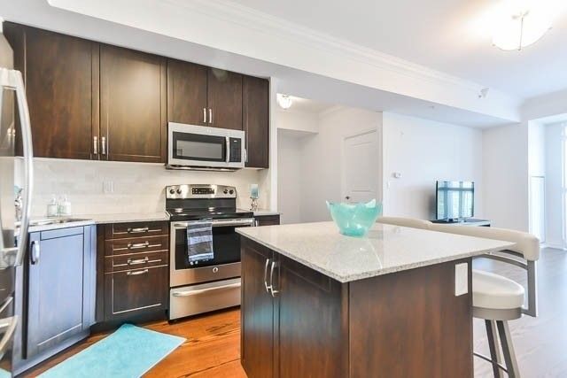Live in one of Markham's Most Desirable Boutique Condos! This magnificent 2 Bedroom Plus Study is approximately 958 SqFt. Unit Features a Bright & Spacious Open Concept Floor Plan. 9' ceilings, Hardwood Floors, Stainless Steel Kitchen Appliances, Quartz Counters. Primary Bedroom has a 4 Piece Ensuite and a Generous size Closet. Building Amenities include a Concierge, Roof Top Terrace, Exercise Room, Party Room And Visitor Parking. Walk To All Amenities Like Local Shops And Restaurants, Schools And Community Centre/Library, Premium Parking Spot (By The Elevator). Upgraded Appliances, Upgraded Floors, Crown Moulding, California Shutters And Much More!
