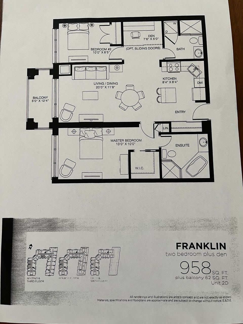 入住万锦市最令人向往的精品公寓之一!这套豪华两居室加书房单位面积约958平方英尺,拥有明亮开阔的开放式布局。9英尺挑高天花板、硬木地板、不锈钢厨房电器、石英石台面。主卧配备四件套浴室及宽敞储物间。大楼设施包含礼宾服务、屋顶露台、健身房、派对厅及访客停车位。步行即可抵达各类生活配套:社区商铺餐厅、学校、社区中心/图书馆,并享专属优质车位(电梯旁)。升级电器配置、高级地板、天花装饰线角、加州百叶窗等奢华细节一应俱全!