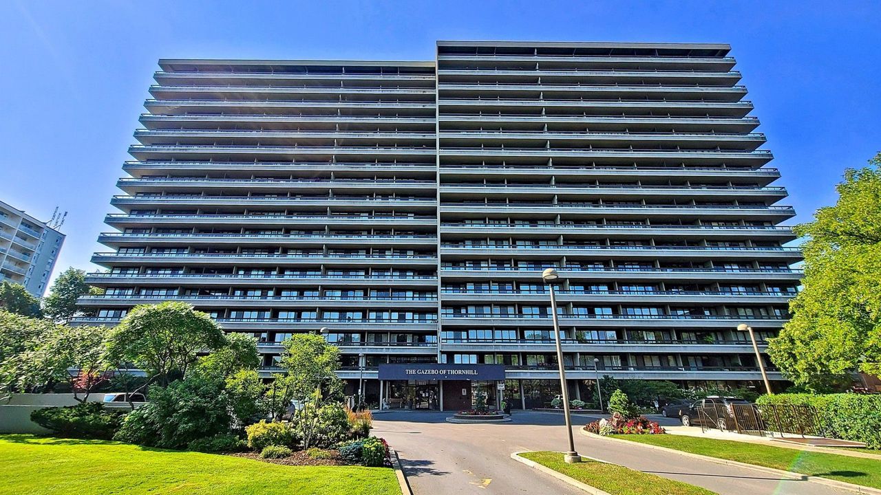 You Must See Spacious 1,404 Sq Ft North Facing Hawthorn Suite Located In The Gazebo Of Thornhill. The Master Bedroom Has A Large Walk-In Closet And 4 Piece Ensuite. Building Amenities Include An Indoor Pool, Tennis Courts, Billiards Room, Wood Working Shop, Beautiful Grounds, Exercise Room. Conveniently Located On Yonge Street, Steps To Shopping, Parks, Transit (Viva, Go Bus). Mins To Hwy 407 Or 404. 2 Underground Parking Spots & 1 Locker Included. Additional Parking Is Available. This Property Is Being Sold In AS-IS CONDITION. No Warranties Will Apply Or Be Given.Fridge, Stove, Built-In Dishwasher, Range Hood. Washer & Dryer (Sold In As-Is Condition). All Electric Light Fixtures. All Window Coverings. Rogers Ignite Tv & Internet Included. Additional Underground Parking Is Available.