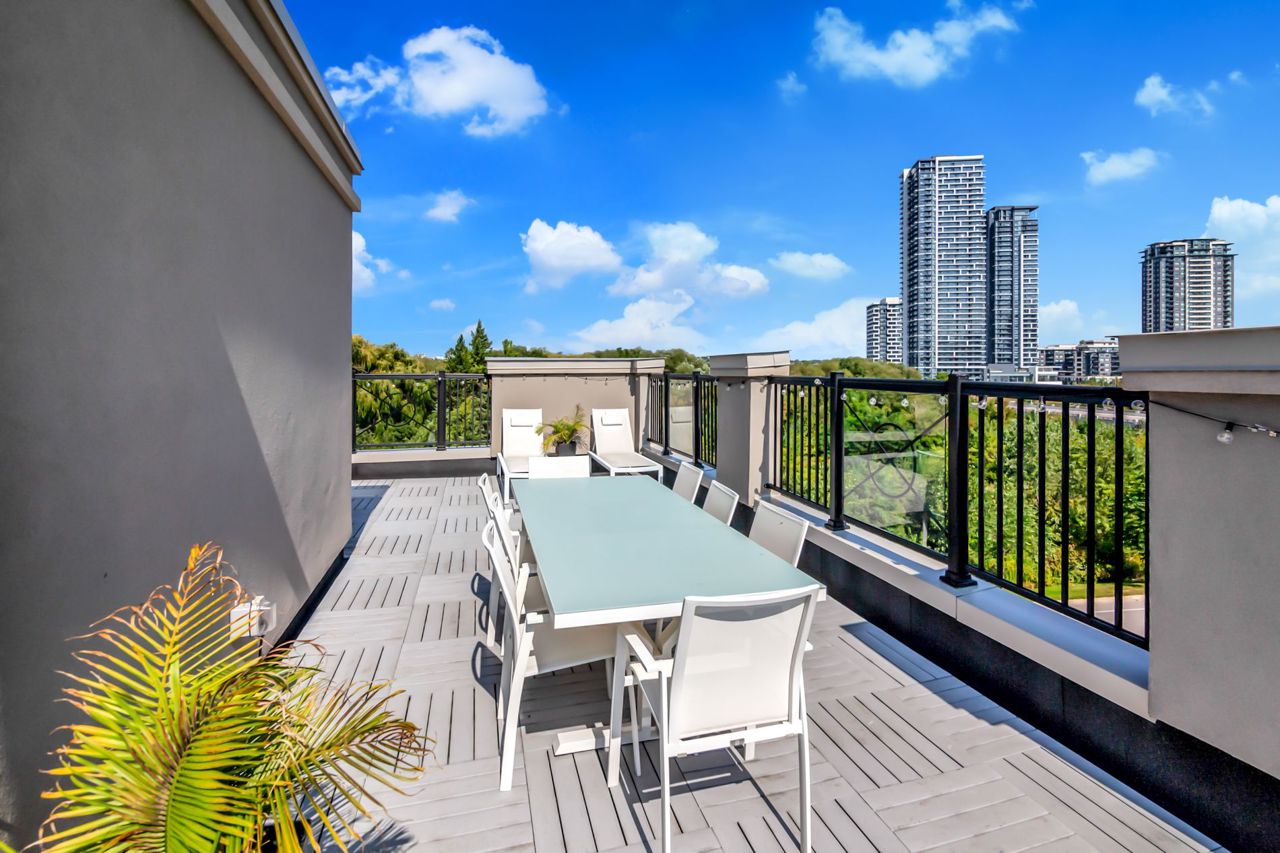 Welcome to luxury! Rarely offered freehold end unit townhome w/views of the Rouge Valley. Intelligently laid out w/over 3500' of total living space. Built in 2015, this sun-filled home features 4+1 bedrooms, 4 bath, a patio & upper roof terrace w/custom dry bar for all your entertaining needs. Hardwood floors throughout, soaring ceilings w/pot lights & a suspended authentic Moooi white pendant light. E/I kitchen w/heated floors, custom bench w/storage, custom cab, s/s appliances & w/o patio w/gas bbq hook-up. Don't feel like taking stairs? Take your very own elevator! The primary bedroom overlooks the Rouge Valley w/custom walk-in closet storage, juliette balcony, electric f/p & 6pc ensuite. Second floor loft incl. den/office & overlooks living room. All bedrooms incl. California closets. Perfectly located in downtown Markham close to restaurants, grocery, Pan Am Centre, Cineplex, future York U campus & minutes to Hwy 407/Hwy 7. Designated catchment area for top ranked schools.Separate lower entrance to family room w/custom glass doors & potential inlaw/nanny suite. two car garage with additional driveway parking & direct access to home. EV charger rough-in. Lower laundry room with added storage and laundry sink.