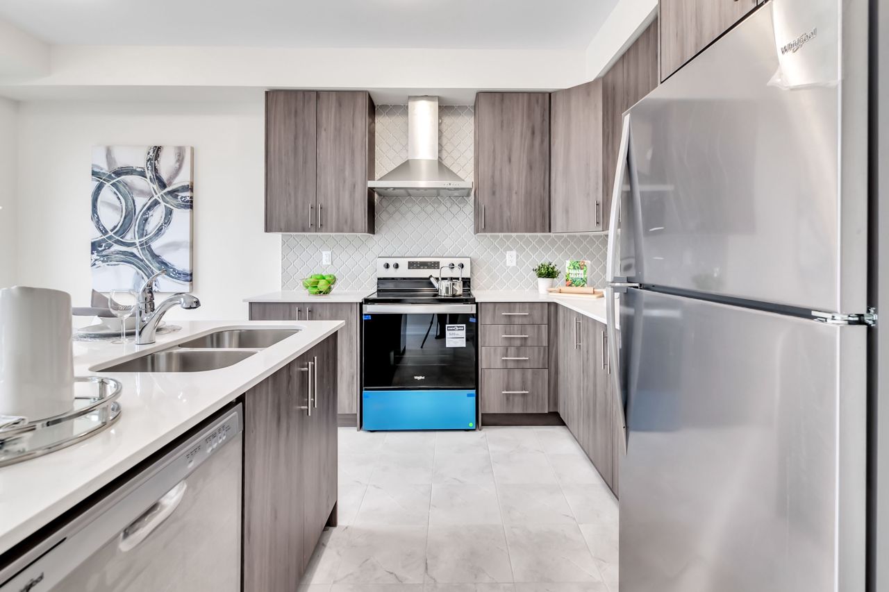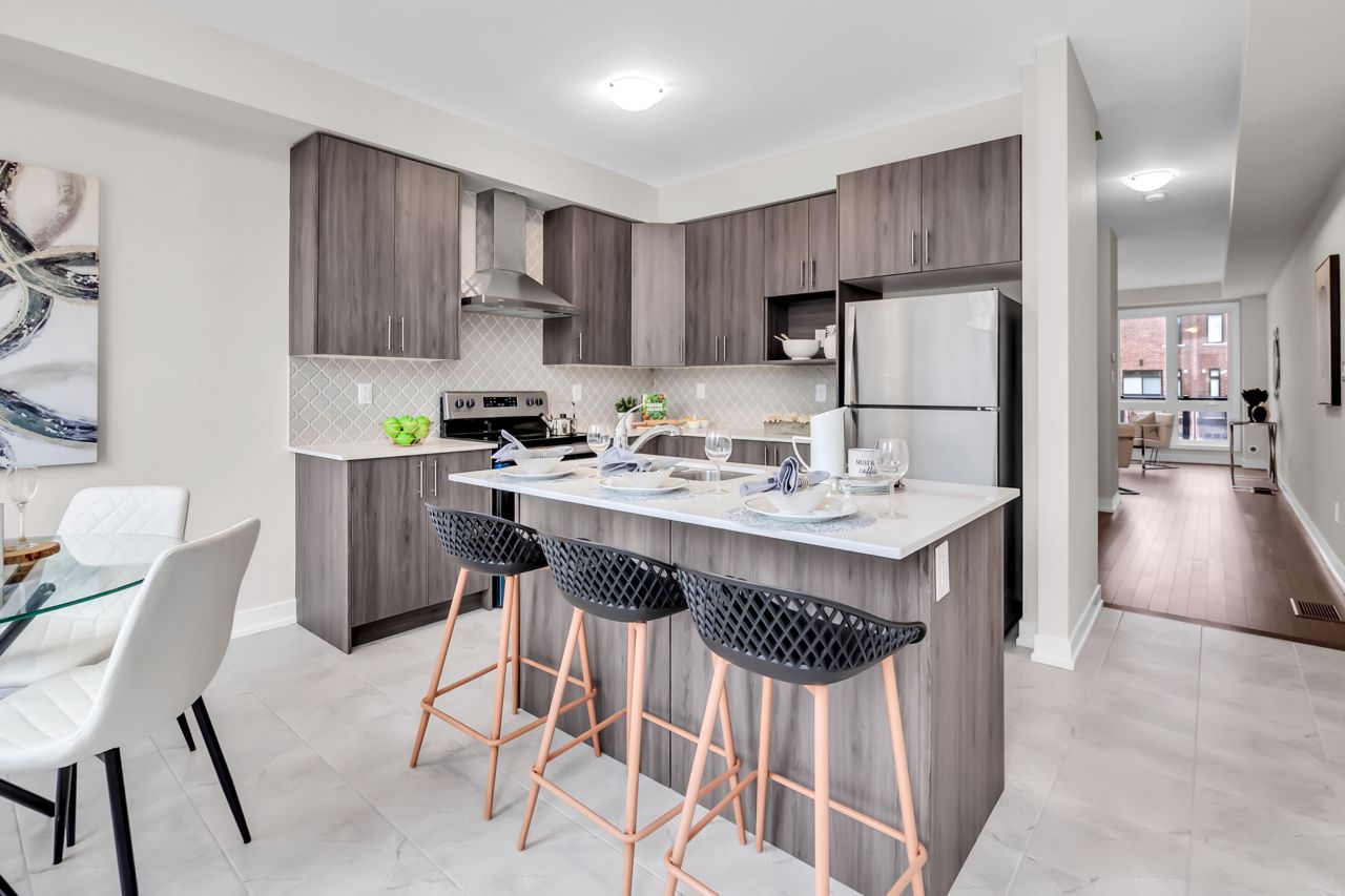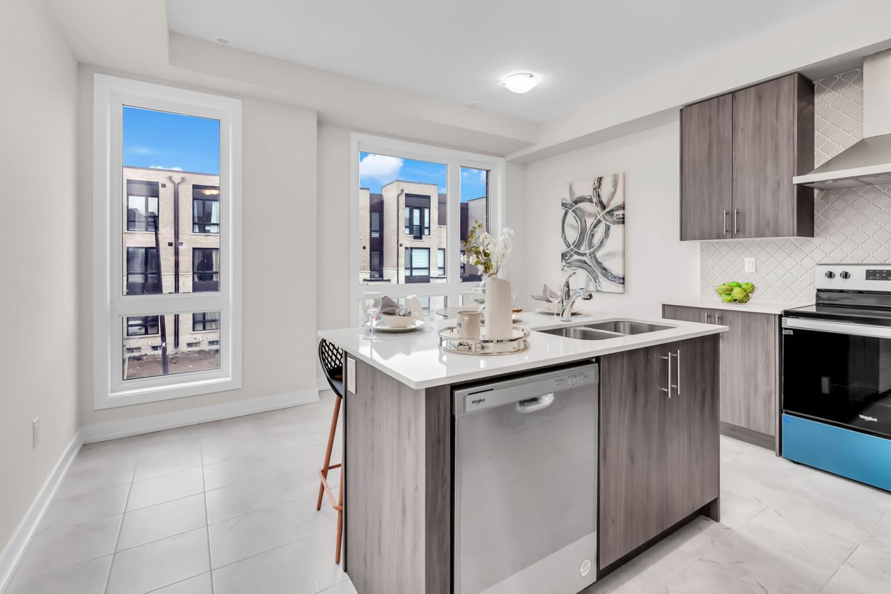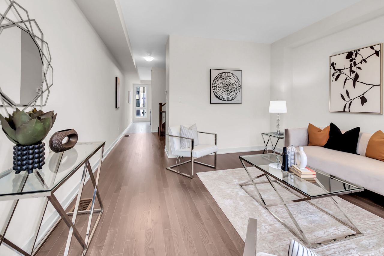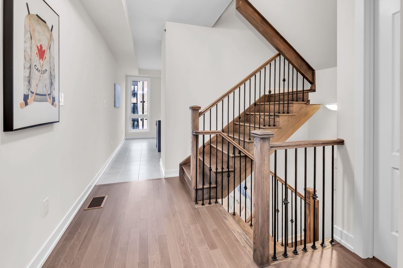Welcome To This Band New Modern & Spacious Freehold Townhouse. Located In The High Demand Family Friendly Neighborhood. This Very Functional Approx.1800 Sqft Home Features With Balconies, Extra Wide Garage With Direct Access Into The House, 9' Ceiling, Stone Counter, Upgraded Morden Kitchen, Engineering Hardwood flooring with iron pickets. 3rd Floor Bedrooms W/ Carpet. Large Windows Allowing For Maximum Natural Sun-Light. Close To Parks, Schools, Public Transit, Hwy 407, Cornell Community Centre, Stouffville Hospital & All Amenities.Upgraded Kitchen Cabinets with back splash, stainless Steel Appliances: Fridge, Oven, Stove. Washer & Dryer, All Electrical Light Fixtures