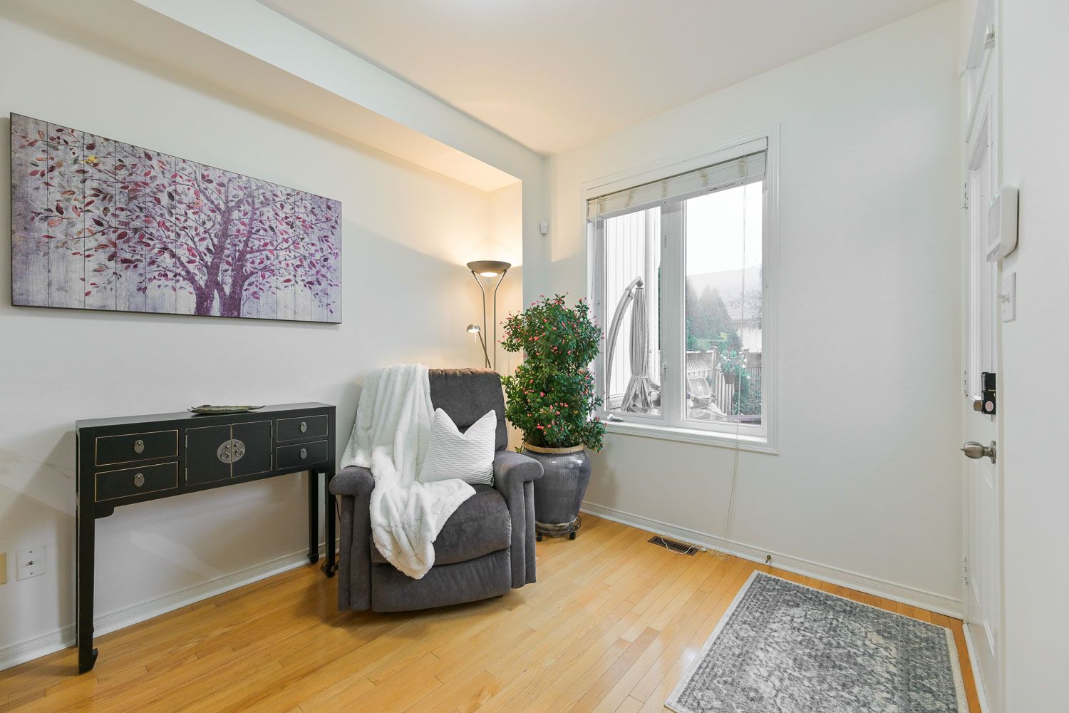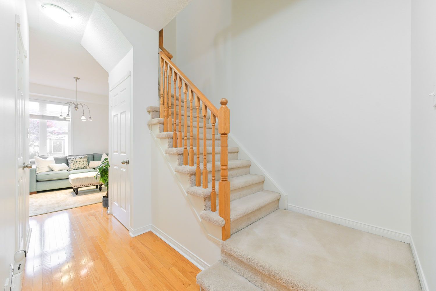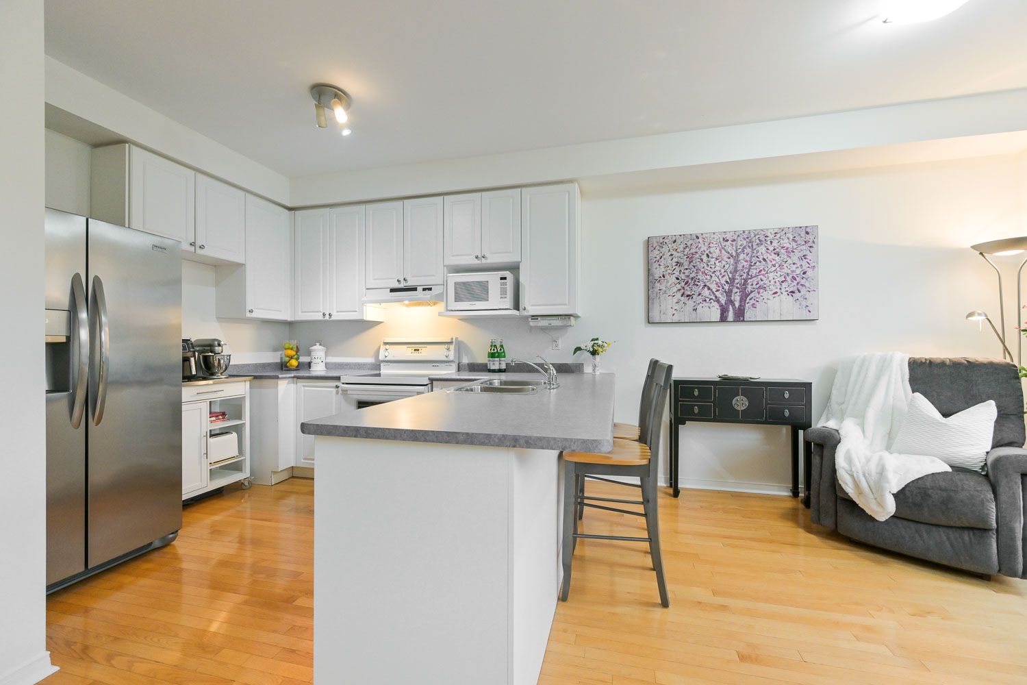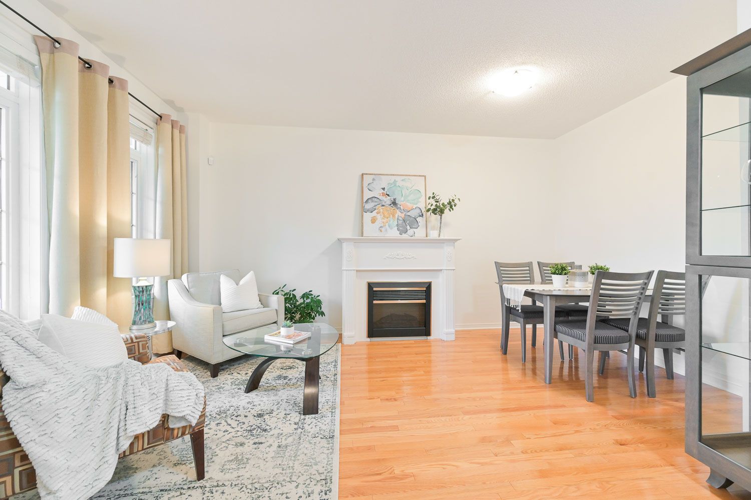 Beautifully appointed freehold townhouse in this desirable Angus Glen neighbourhood. Welcoming front porch leads into the spacious hallway. Freshly painted main floor. The combined living/dining room features hardwood floors & a cozy fireplace. Open plan family room, kitchen and breakfast area is a perfect family friendly layout. Upstairs has three bedrooms including the primary suite with updated ensuite, walk-in closet and a walk-out to the balcony. Lots of storage in the full basement or add your finishing touches for extra living space. Bring the inside out and enjoy the wonderful outside space with a raised deck, beautiful gardens and rear door access to the garage. Parking for 2 cars in the garage and 1 on the parking pad in front of the garage. This move in ready home is close to transit, schools, golf, restaurants & community centre.Furnace and AC 2021, Garage door 2022, roof 2018, fridge 2020