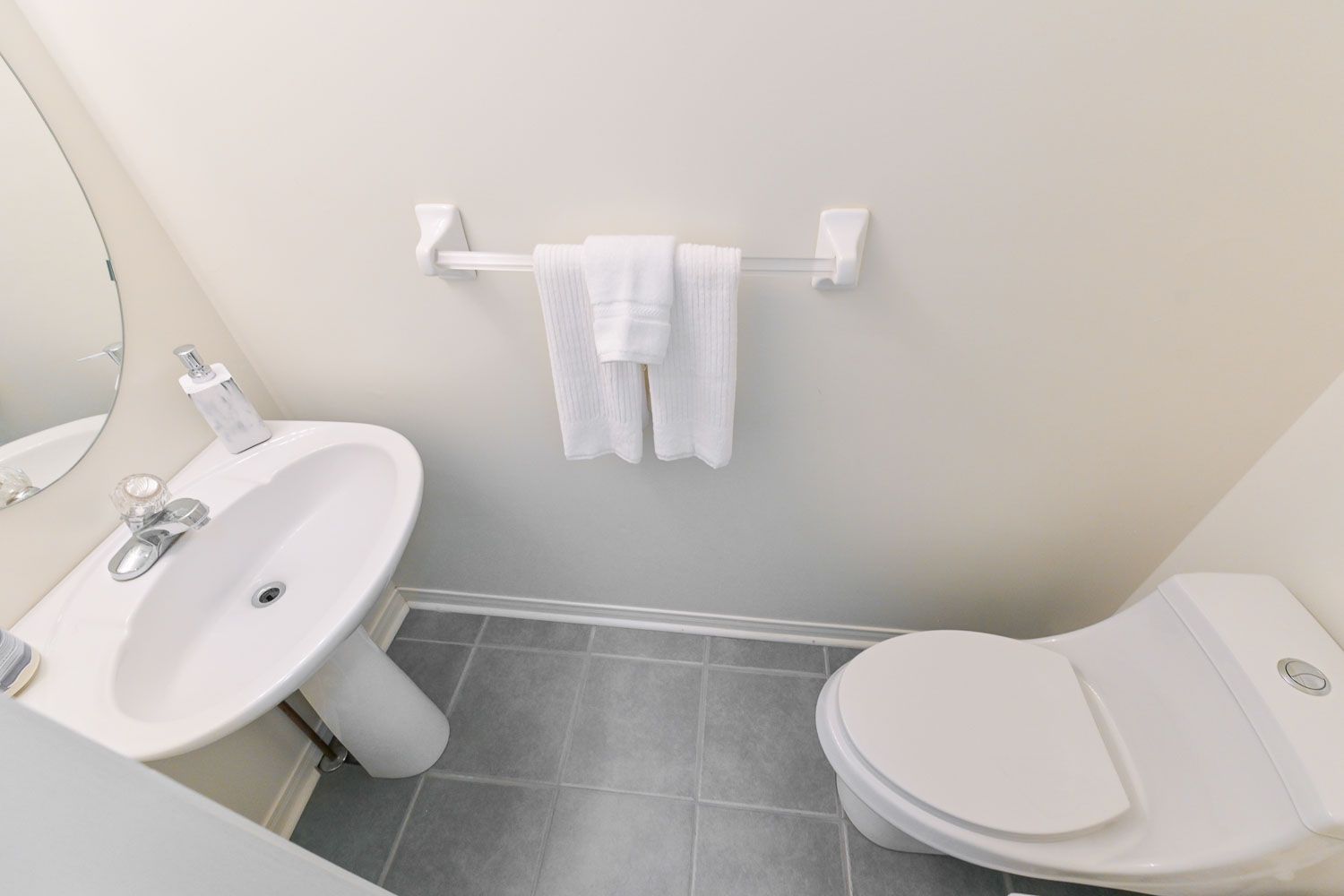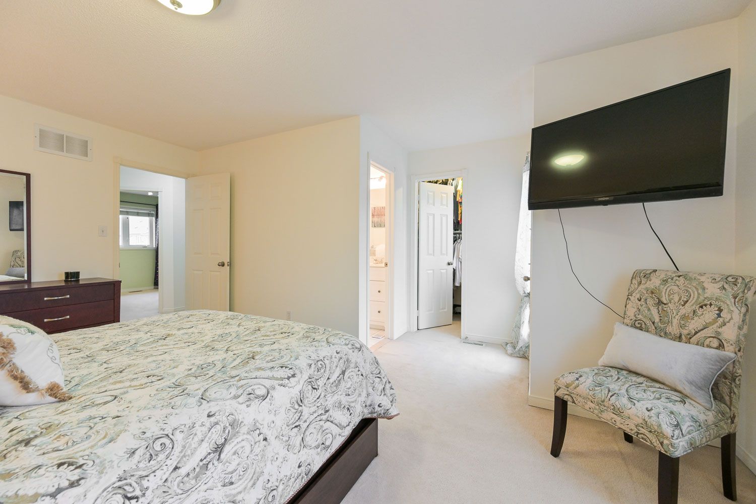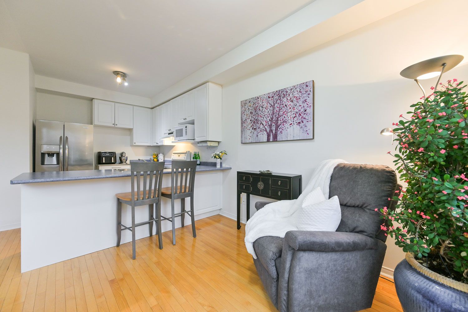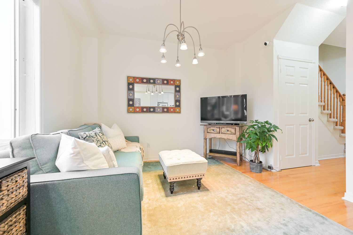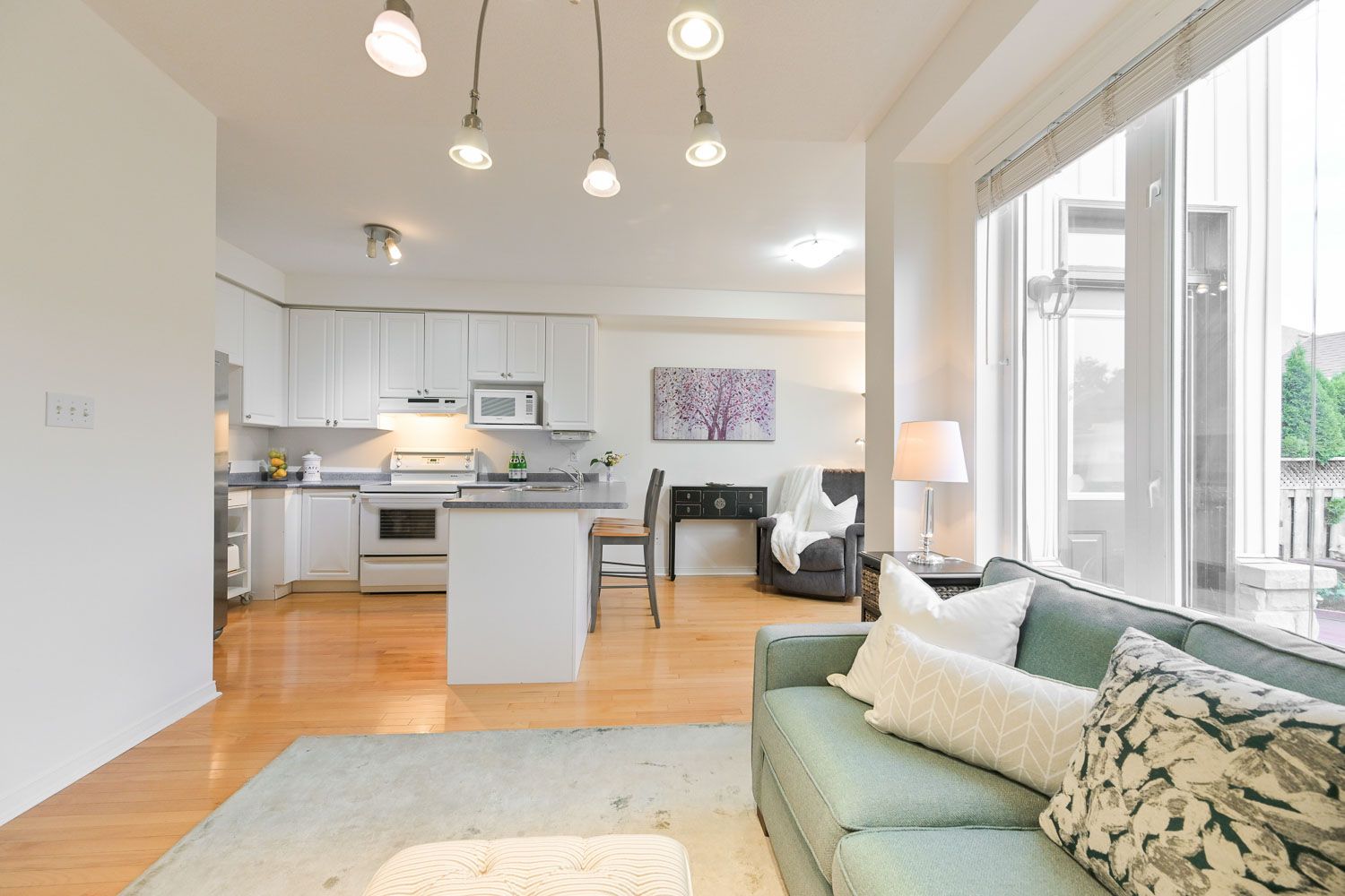 Beautifully appointed freehold townhouse in this desirable Angus Glen neighbourhood. Welcoming front porch leads into the spacious hallway. Freshly painted main floor. The combined living/dining room features hardwood floors & a cozy fireplace. Open plan family room, kitchen and breakfast area is a perfect family friendly layout. Upstairs has three bedrooms including the primary suite with updated ensuite, walk-in closet and a walk-out to the balcony. Lots of storage in the full basement or add your finishing touches for extra living space. Bring the inside out and enjoy the wonderful outside space with a raised deck, beautiful gardens and rear door access to the garage. Parking for 2 cars in the garage and 1 on the parking pad in front of the garage. This move in ready home is close to transit, schools, golf, restaurants & community centre.Furnace and AC 2021, Garage door 2022, roof 2018, fridge 2020