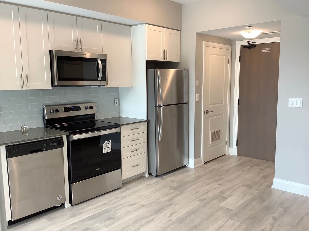 豪华全新现代公寓 | 1卧室+书房 | 630平方英尺 | 开放式阳台 | 1个停车位 | 套内洗衣房 | 公寓设施:健身房/健身中心 - 安保 - 派对室及更多 | 靠近Stouffville Hospital & Schools & Transit冰箱、炉灶、内置洗碗机、洗衣机、烘干机