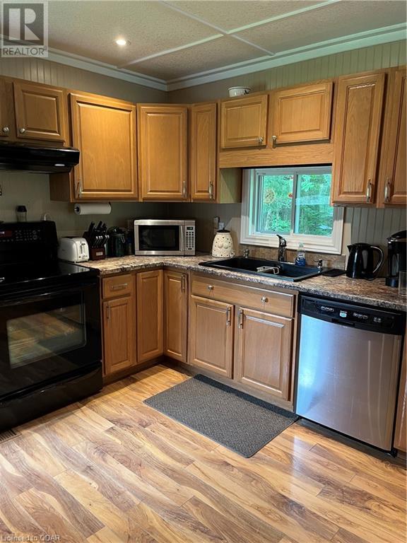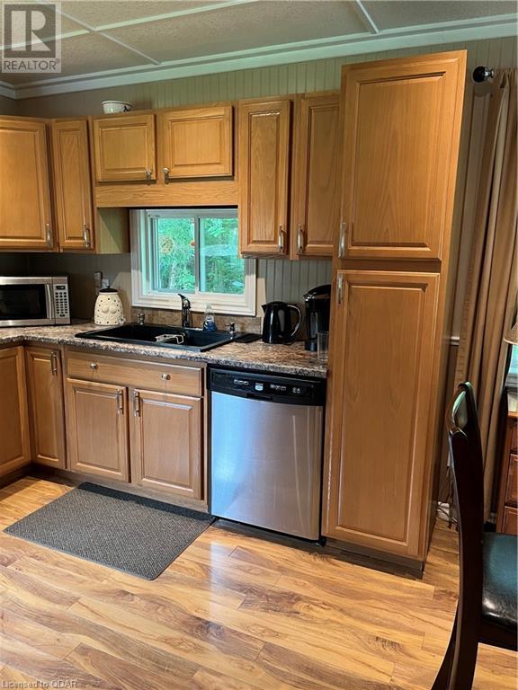 Ever dreamed of owning Waterfront? Well here is your chance. Beautiful spot on Beaver Creek that flows into the Crowe River. Low maintenance home with metal roof (2014), updated bathroom with soaker tub (2020), cozy living room and kitchen including built-in dishwasher, newer laminate flooring. 2nd bedroom currently used as laundry/storage room. Primary bedroom at end of home over looking the hot tub (2020) and landscaped yard with sprinkler system. 3 x sheds with hydro, Gazebo with hydro perfect for those Summer nights, dock, Septic 2004, nothing to do but move-in. (id:22211)