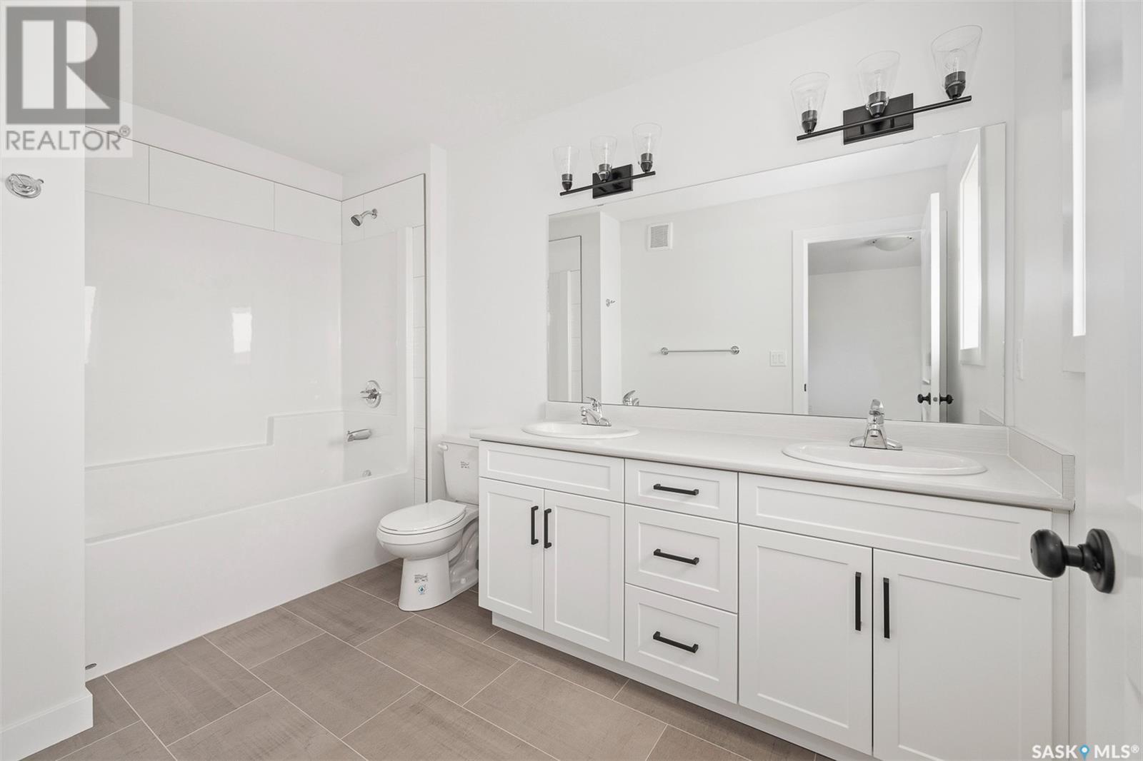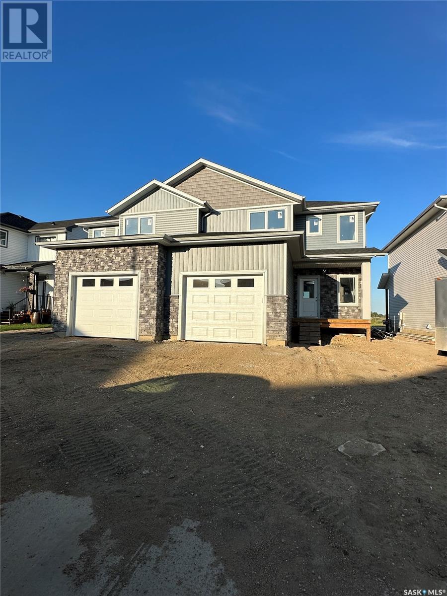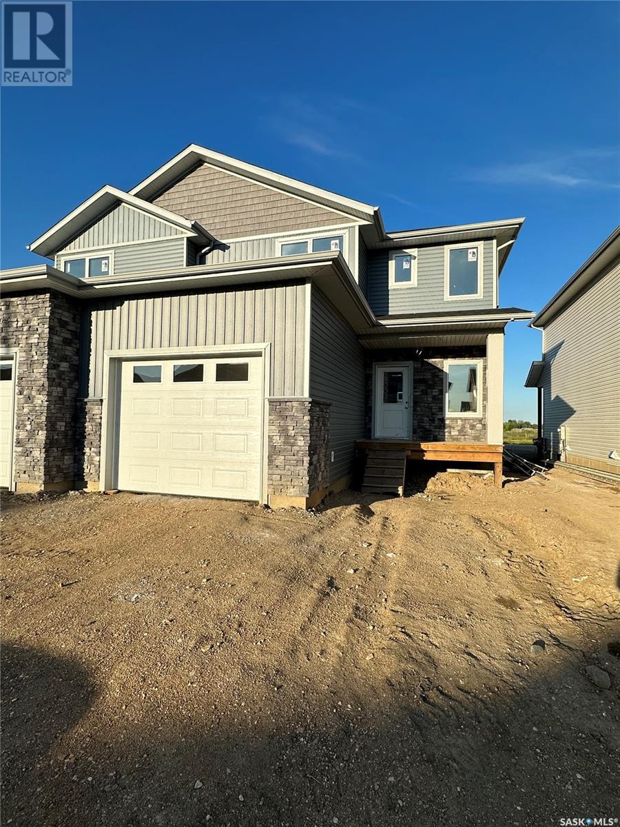 One of the better developments that Martensville has to offer!!!!! Prime location as these very large semi attached homes are directly across the street from Lake Vista's new elementary schools, parks and greenspace. Also, only steps away from walking paths and lakes. These semi attached homes will have their own driveways and backyards. No condo fees. These family style layouts are boasting over 1,600sqft over 2 levels and an extra 733sqft more living space in the basement for future development, total of over 2300sq.ft, which is incredible at these prices. Great curb appeal is offered on these homes with modern designs, front landscaping plus a tree with underground sprinklers, concrete driveway & sidewalk, ample stone and larger single attached garages with direct entry. The main floor is an open concept and has higher end finishing's like quartz countertops, full appliance package is included, laminate and tile flooring and lots of natural light in each and every room. The 2nd level offers 3 bedrooms and 2 full bathrooms. Also 2nd level laundry is a key feature along with the large 5 pc en-suite with dual sinks and walk-in closet. Another important key notables included are covered back deck with aluminum railing / full stainless steel kitchen appliance pkg plus front load washer and dryer / front concrete driveway and walkway to front entrance and a fully landscaped from yard with UGS, tree, grass. This property has been carefully thought out and the design and finishing's are next to none!!! New Home Warranty and PST/GST are included in the purchase price. Contact a REALTOR® today for more information! (id:22211)