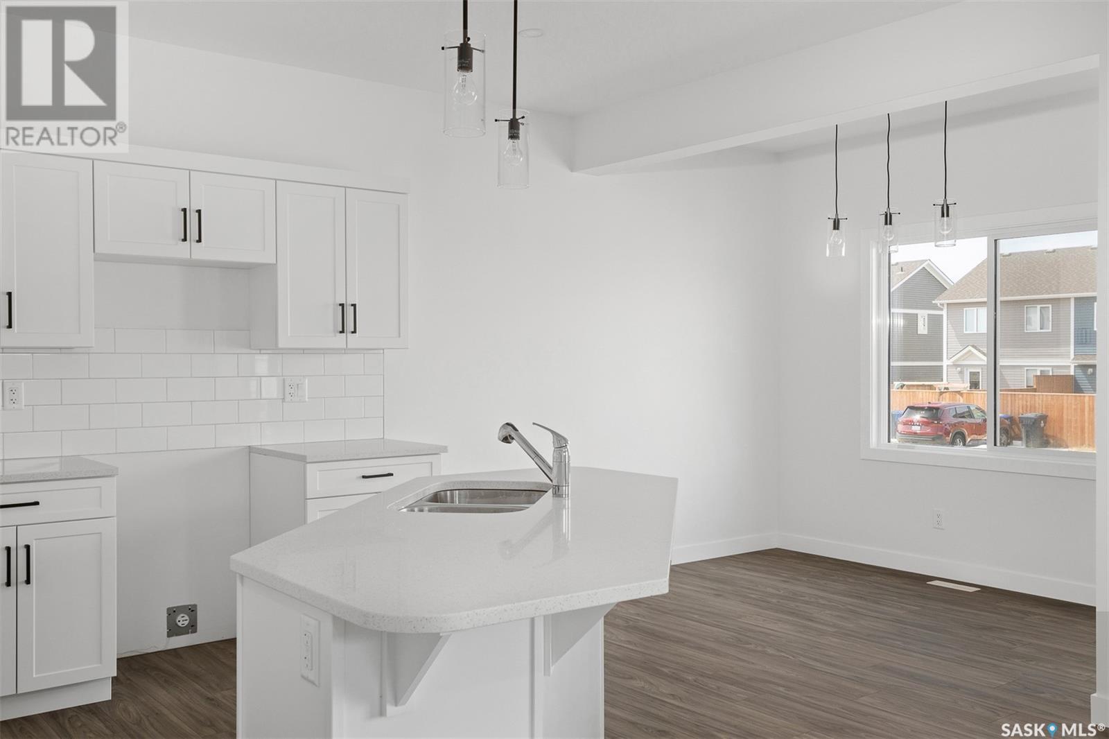 One of the better developments that Martensville has to offer!!!!! Prime location as these very large semi attached homes are directly across the street from Lake Vista's new elementary schools, parks and greenspace. Also, only steps away from walking paths and lakes. These semi attached homes will have their own driveways and backyards. No condo fees. These family style layouts are boasting over 1,600sqft over 2 levels and an extra 733sqft more living space in the basement for future development, total of over 2300sq.ft, which is incredible at these prices. Great curb appeal is offered on these homes with modern designs, front landscaping plus a tree with underground sprinklers, concrete driveway & sidewalk, ample stone and larger single attached garages with direct entry. The main floor is an open concept and has higher end finishing's like quartz countertops, full appliance package is included, laminate and tile flooring and lots of natural light in each and every room. The 2nd level offers 3 bedrooms and 2 full bathrooms. Also 2nd level laundry is a key feature along with the large 5 pc en-suite with dual sinks and walk-in closet. Another important key notables included are covered back deck with aluminum railing / full stainless steel kitchen appliance pkg plus front load washer and dryer / front concrete driveway and walkway to front entrance and a fully landscaped from yard with UGS, tree, grass. This property has been carefully thought out and the design and finishing's are next to none!!! New Home Warranty and PST/GST are included in the purchase price. Contact a REALTOR® today for more information! (id:22211)