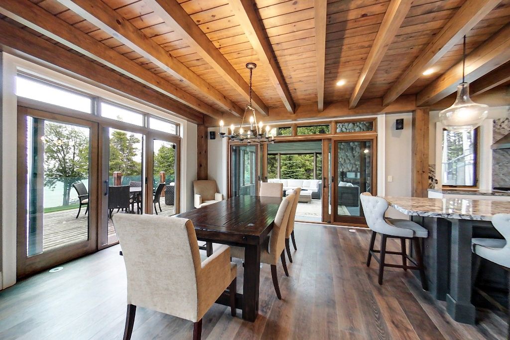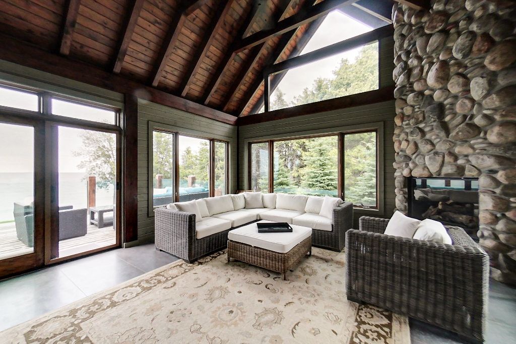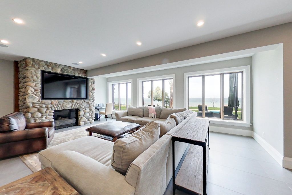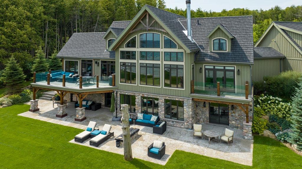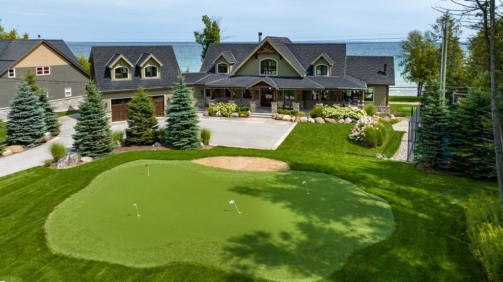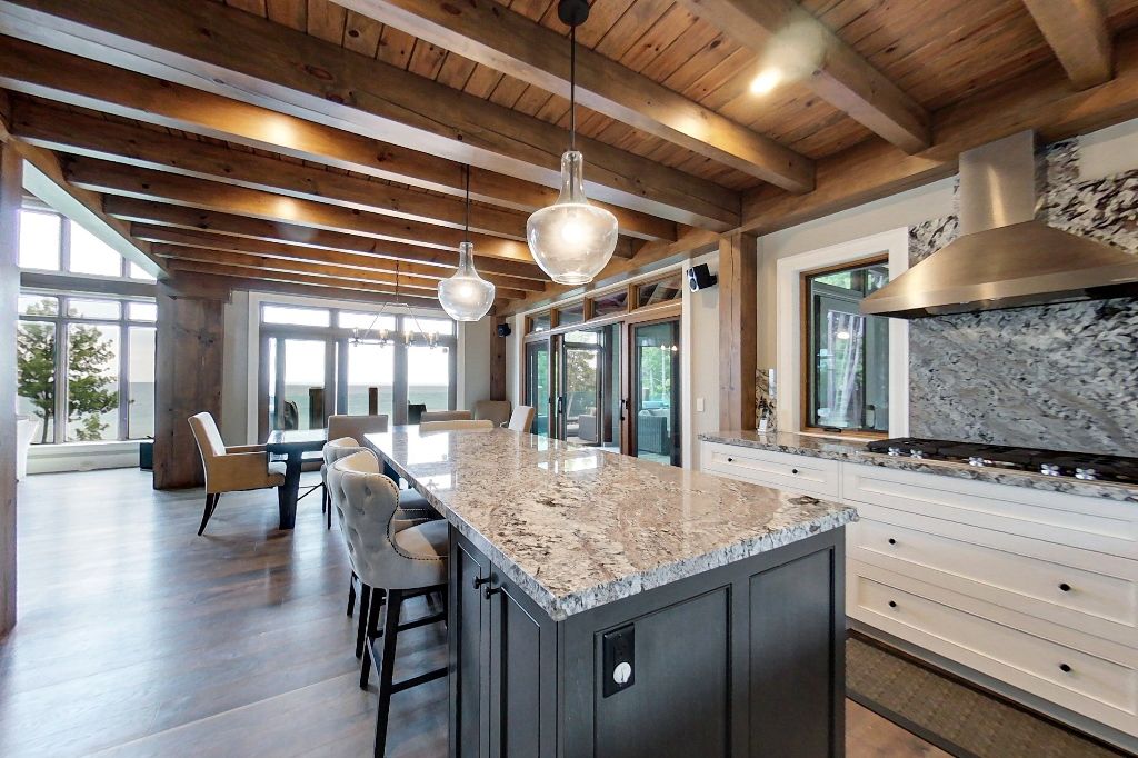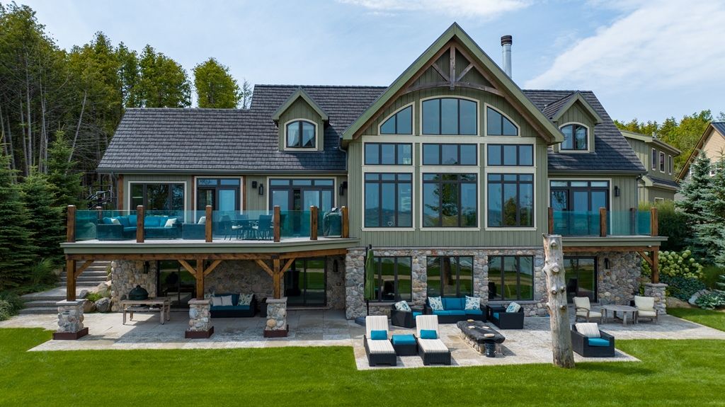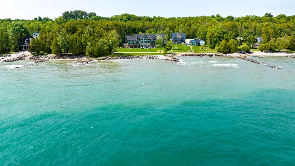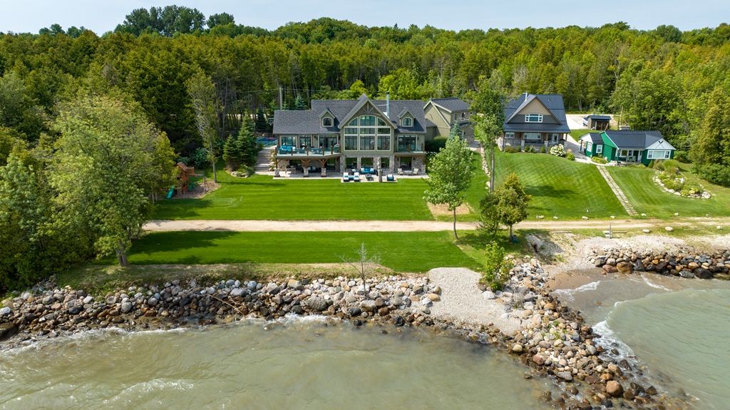 Waterfront – 150 feet of pristine Georgian Bay Waterfront. Stunning Custom Built Normerica Post and Beam 5 bdrm 3.5 bath Open Concept Kitchen/Dining/Living Room, floor to ceiling Georgian Bay Stone wood burning fireplace, Main Floor Master with Ensuite, Three Season Room with Gas Fireplace, large Gym area, Office, oversized Mud Room and Two Car Garage. The Lower level is a walk out featuring two bedrooms, family room with gas fireplace, Wet Bar, large Bathroom with Sauna and in-floor heat. Extensively Landscaped with Golf Chipping/putting Green, Sports Court, Large Decking and Stone Patios. There is a beautiful Creek running down the side of the property. Minutes to Meaford, Thornbury, skiing, biking, hiking and all the areas amenities, one the very finest offerings in the area, when only the best will do for the discerning buyer.**INTERBOARD LISTING: THE LAKELANDS R. E. ASSOC**