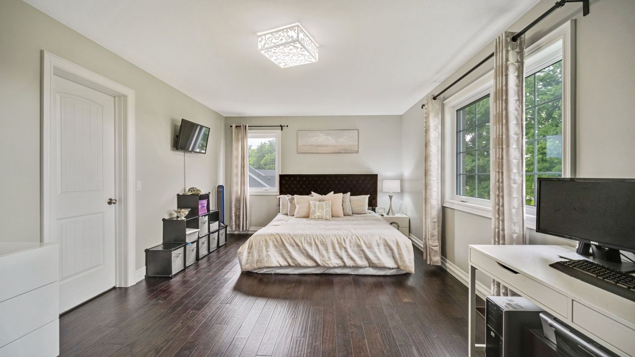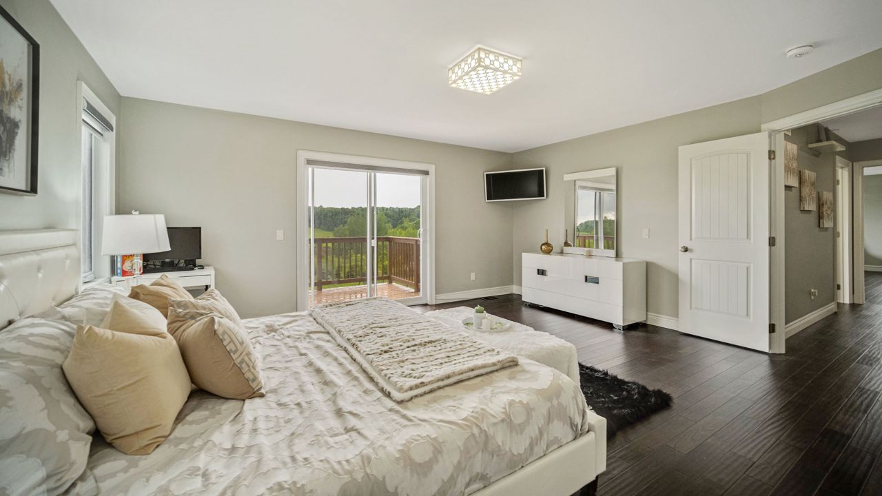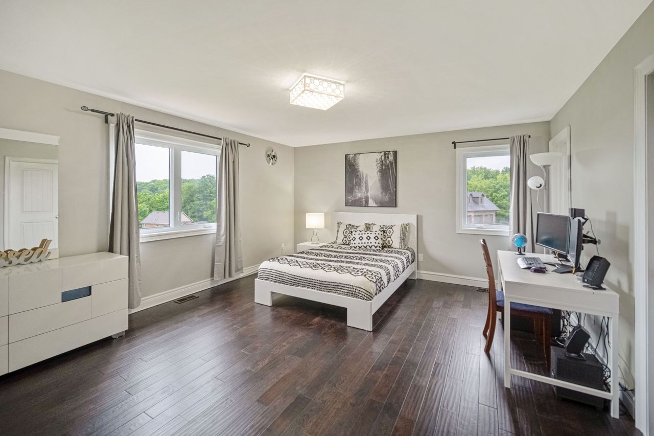 Discover your dream home in this elegant detached estate, situated on 1.35+ acre lot. With nearly 3700 sq ft of finished living space, Offers an open-concept main floor with a walk-out to a deck. The interior features a wooden staircase with a metal railing, 5 bedrooms including a master bedroom with a walk-out balcony, a 5-piece ensuite, a walk-through closet, and a private laundry room. Enjoy the cozy gas fireplace, beautiful quartz kitchen countertops, stainless steel appliances, and spacious kitchen sink. Upstairs, find wooden flooring throughout, modern bathrooms, fresh paint, new blinds, and pot lights. Outside, the property boasts a new asphalt driveway, professionally done concrete on the front and sides, and an attached 2.5-car garage. The generous driveway accommodates over 10 cars. The highlight is the huge ravine backyard, perfect for hosting gatherings and even wedding ceremonies. Experience the epitome of luxury living in this custom-designed haven.Builder Plan attached, with First Floor & 2'nd Floor Plan, Huge Backyard can easily make a large pool, Play ground etc.