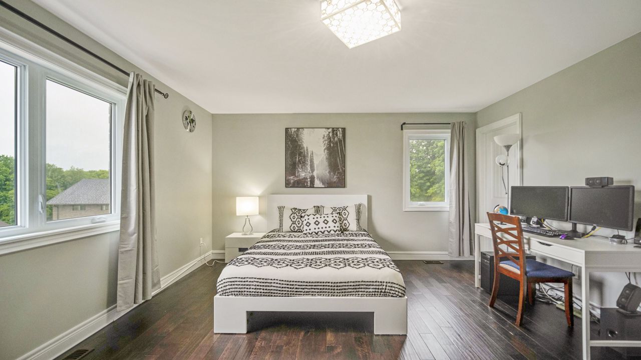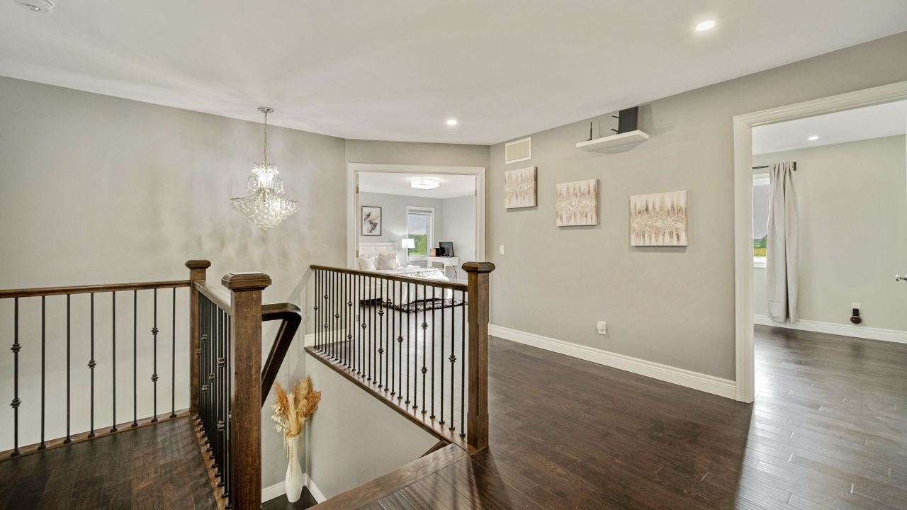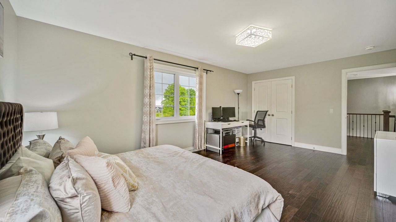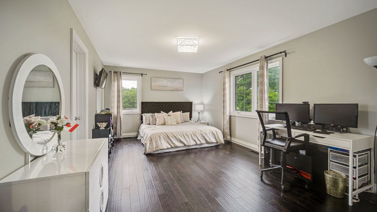 Discover your dream home in this elegant detached estate, situated on 1.35+ acre lot. With nearly 3700 sq ft of finished living space, Offers an open-concept main floor with a walk-out to a deck. The interior features a wooden staircase with a metal railing, 5 bedrooms including a master bedroom with a walk-out balcony, a 5-piece ensuite, a walk-through closet, and a private laundry room. Enjoy the cozy gas fireplace, beautiful quartz kitchen countertops, stainless steel appliances, and spacious kitchen sink. Upstairs, find wooden flooring throughout, modern bathrooms, fresh paint, new blinds, and pot lights. Outside, the property boasts a new asphalt driveway, professionally done concrete on the front and sides, and an attached 2.5-car garage. The generous driveway accommodates over 10 cars. The highlight is the huge ravine backyard, perfect for hosting gatherings and even wedding ceremonies. Experience the epitome of luxury living in this custom-designed haven.Builder Plan attached, with First Floor & 2'nd Floor Plan, Huge Backyard can easily make a large pool, Play ground etc.
