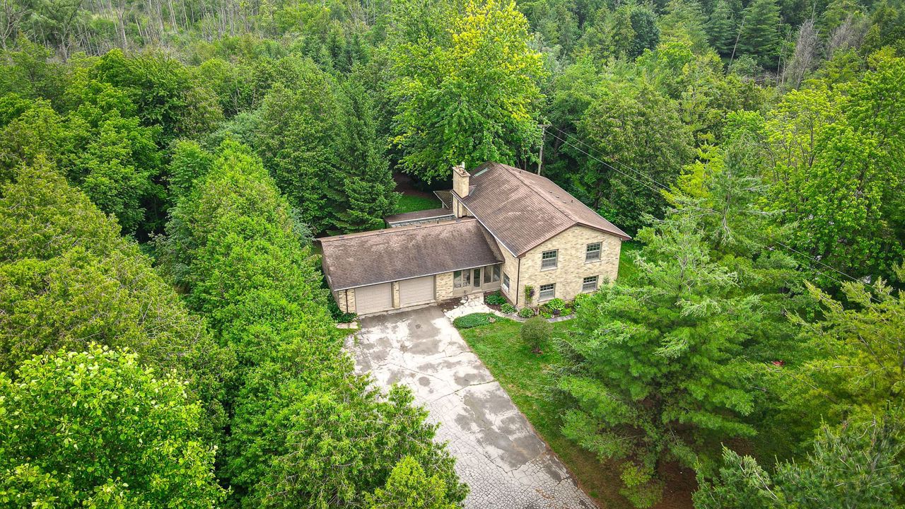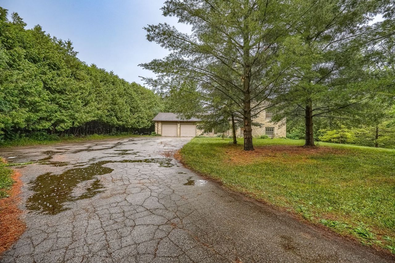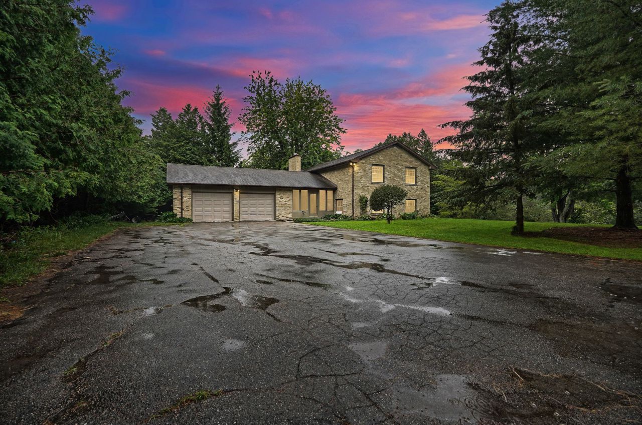 North of London Central 12.272/acres with walk-out split level with fully openable Stunning house. Close to hospital school, shopping, mall university & major highways. Shares border with Golf and Country Club. South-west exposed Great-Room + skylights and panoramic views with access to the surrounding gardens and woods. At garden level, a massive granite island surrounds the newly renovated white on stainless steel kitchen with herringbone designed splash offers an expansive Master with en-suite and walk-in, exposed to gorgeous views of the estate. Beyond the main level receiving den and 2 pc. bath at the double foyer, the second level boasts 3 generous sized bedroom + 2nd master and full en-suite/.Existing Stainless Steel Appliances (Fridge, stove, dishwasher) Washer & Dryer