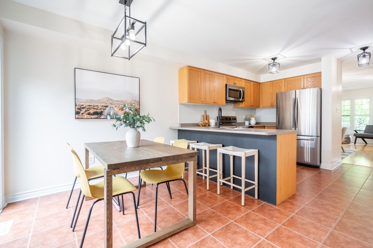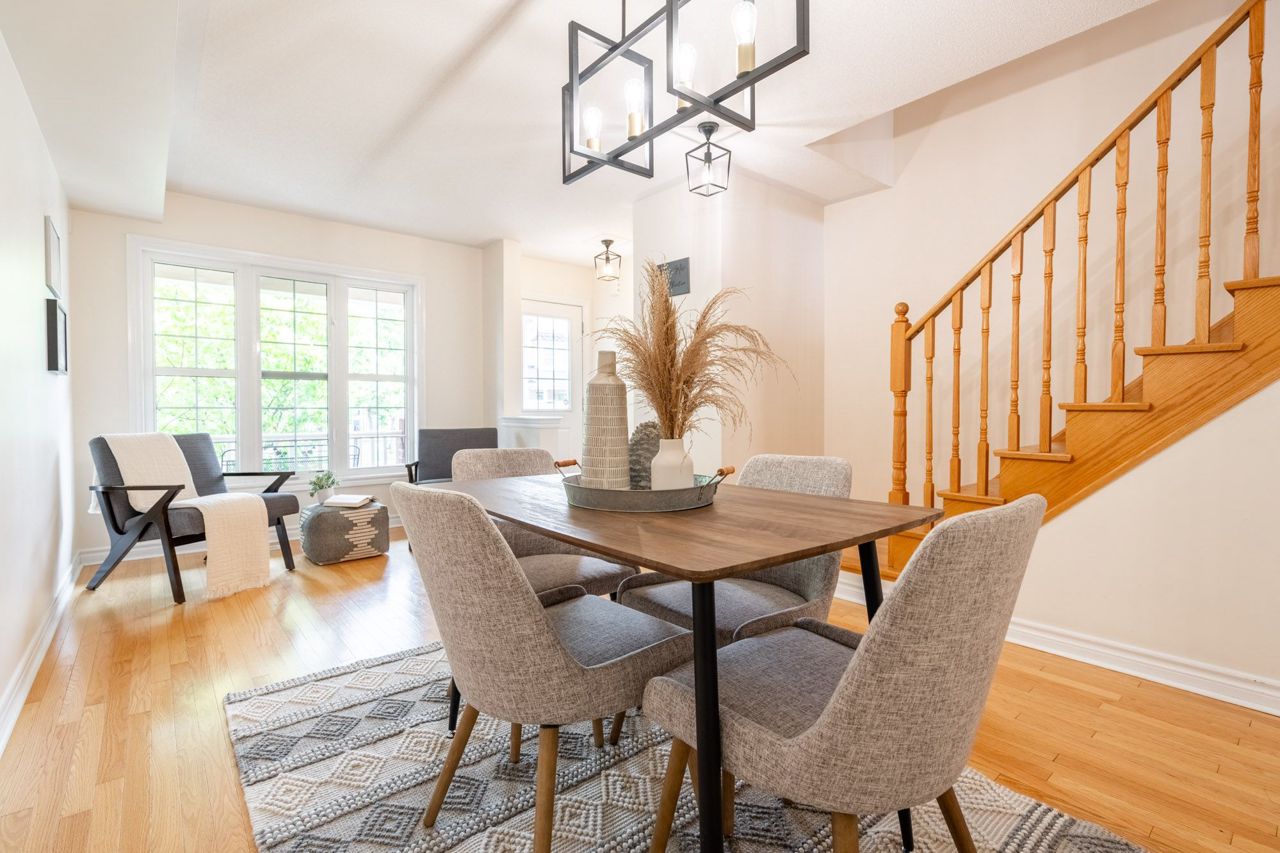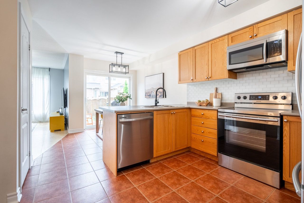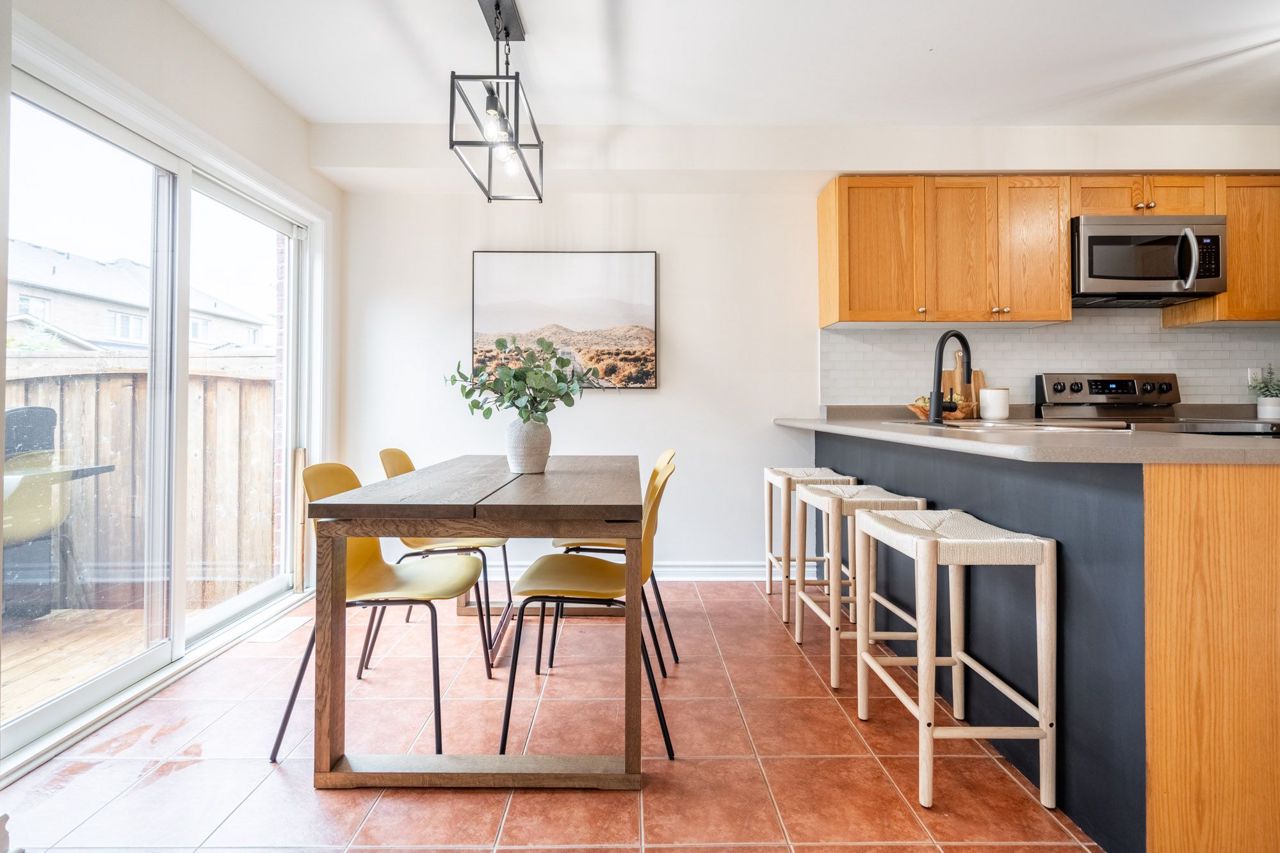 Beautiful Freehold Town in Sought after Scott Neighbourhood ! With an excellent floor plan this townhome boasts 3 Bdrms, 3 Bath! Minutes to all major amenities, and quick access to highways and 407 this is a commuters dream. The Main Flr Space offers a spacious living / dining area perfect as a formal dining area or office space. The spacious Eat-In Kitchen features dark cabinetry, stainless appliances, back splash, breakfast bar and w/o to back yard deck. Large Family Rm Area W'Light Hdwd and picture window. The upper level of this home boats 2nd Flr laundry, and 3 large bedrooms. The Primary Suite features broadloom carpeting, spacious W/I Closet and Spa-Like 5 Pc Ensuite W'Soaker Tub. The two additional bdrms boast dbl closets and broadloom. Main 4 Piece bath bright, spacious and functional W'Shower Tub Combo! The unfinished basement awaits your finishing touches! Spacious back yard for all your activities! Don't Miss this one! Bonus - the garage has a walk through to the back yard!