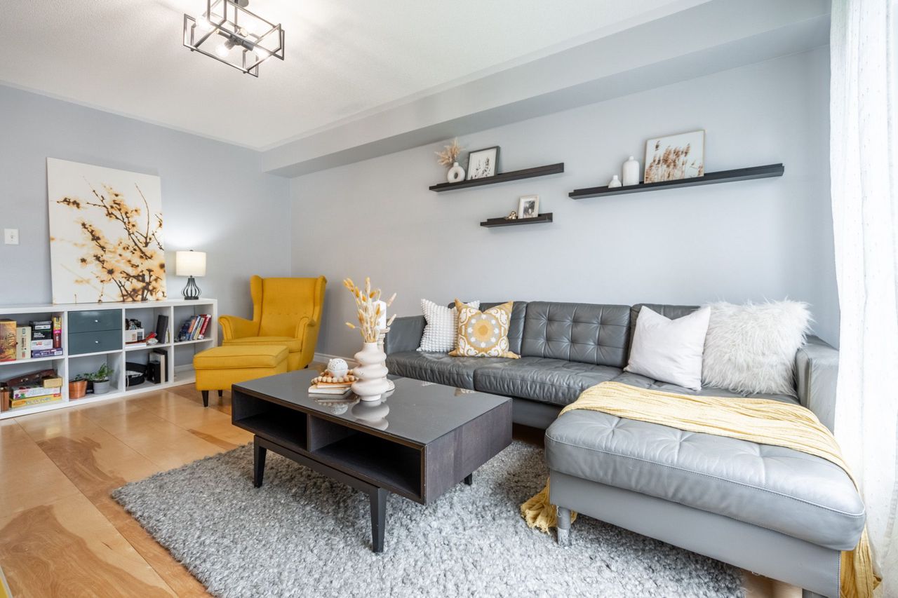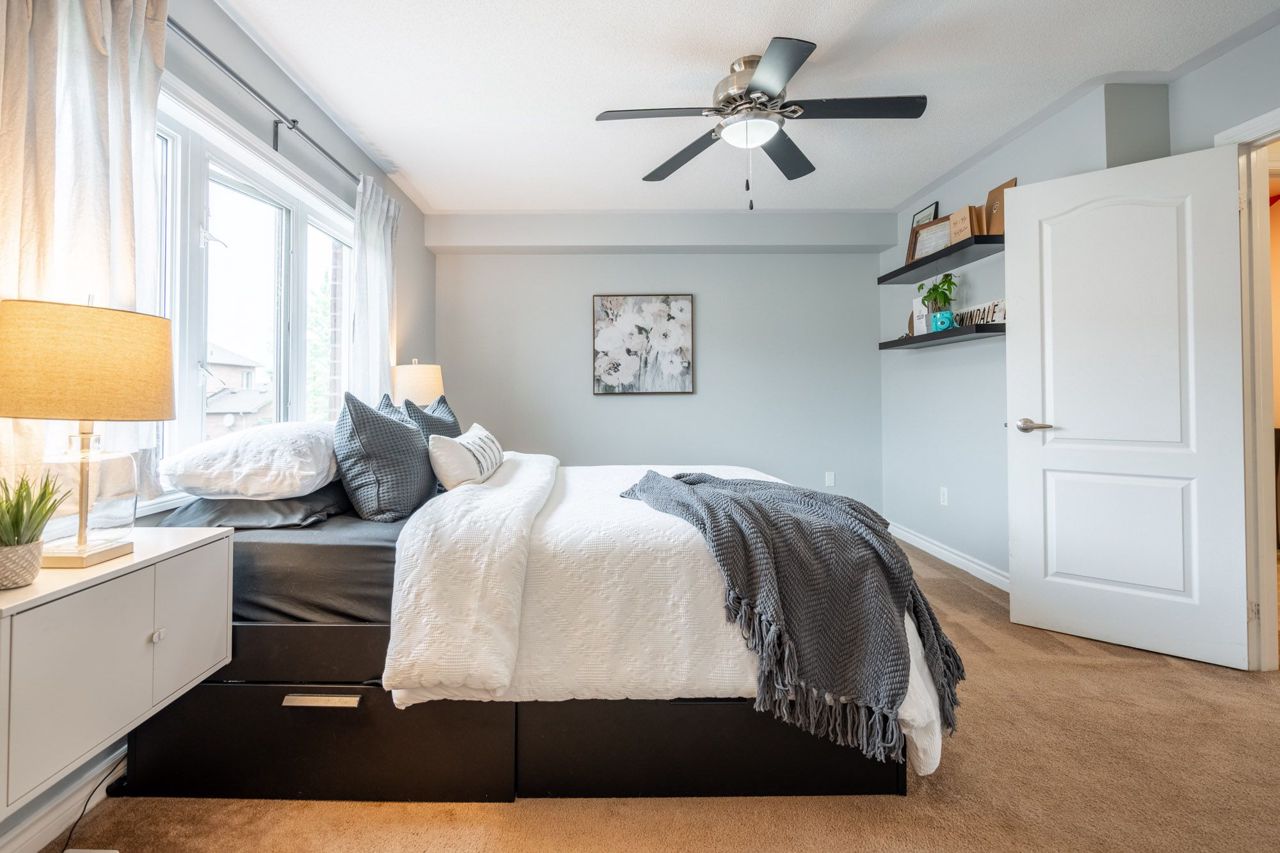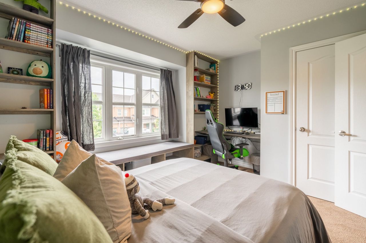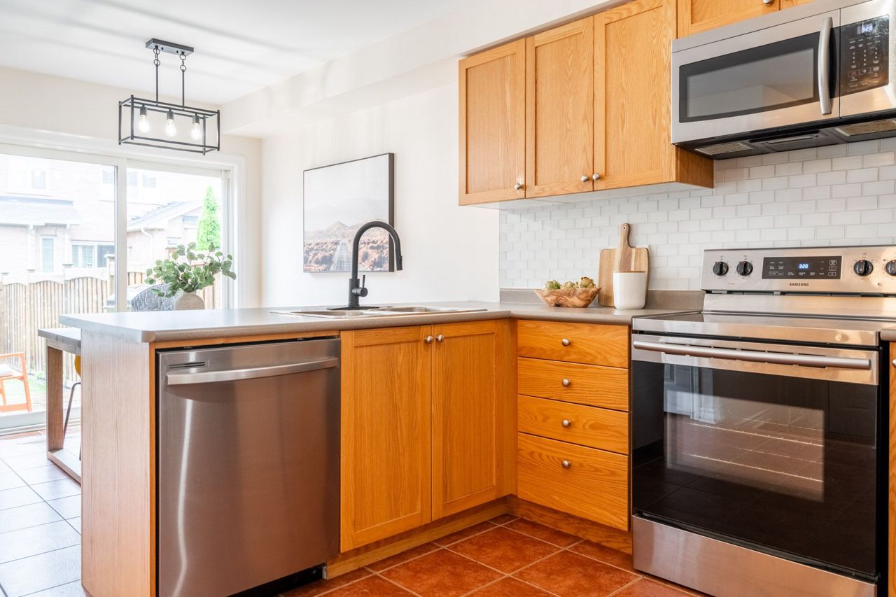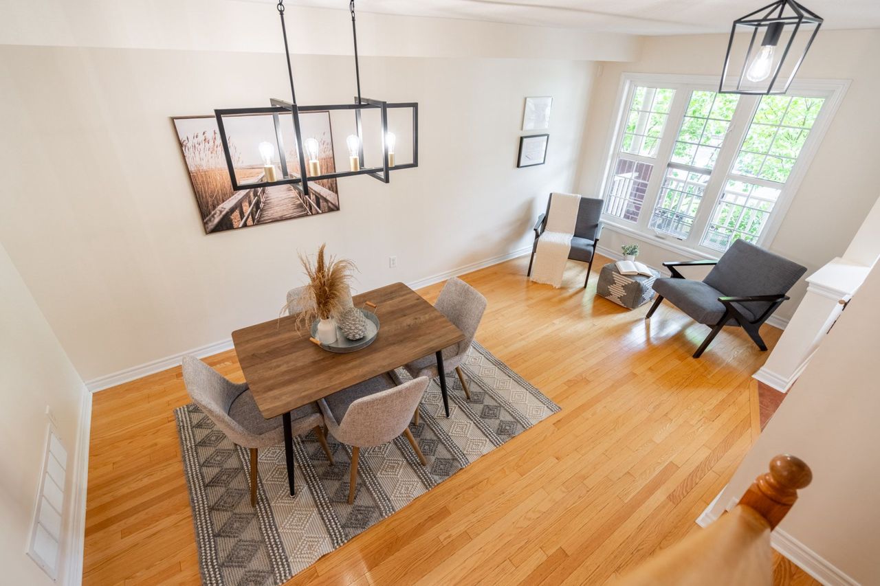 Beautiful Freehold Town in Sought after Scott Neighbourhood ! With an excellent floor plan this townhome boasts 3 Bdrms, 3 Bath! Minutes to all major amenities, and quick access to highways and 407 this is a commuters dream. The Main Flr Space offers a spacious living / dining area perfect as a formal dining area or office space. The spacious Eat-In Kitchen features dark cabinetry, stainless appliances, back splash, breakfast bar and w/o to back yard deck. Large Family Rm Area W'Light Hdwd and picture window. The upper level of this home boats 2nd Flr laundry, and 3 large bedrooms. The Primary Suite features broadloom carpeting, spacious W/I Closet and Spa-Like 5 Pc Ensuite W'Soaker Tub. The two additional bdrms boast dbl closets and broadloom. Main 4 Piece bath bright, spacious and functional W'Shower Tub Combo! The unfinished basement awaits your finishing touches! Spacious back yard for all your activities! Don't Miss this one! Bonus - the garage has a walk through to the back yard!