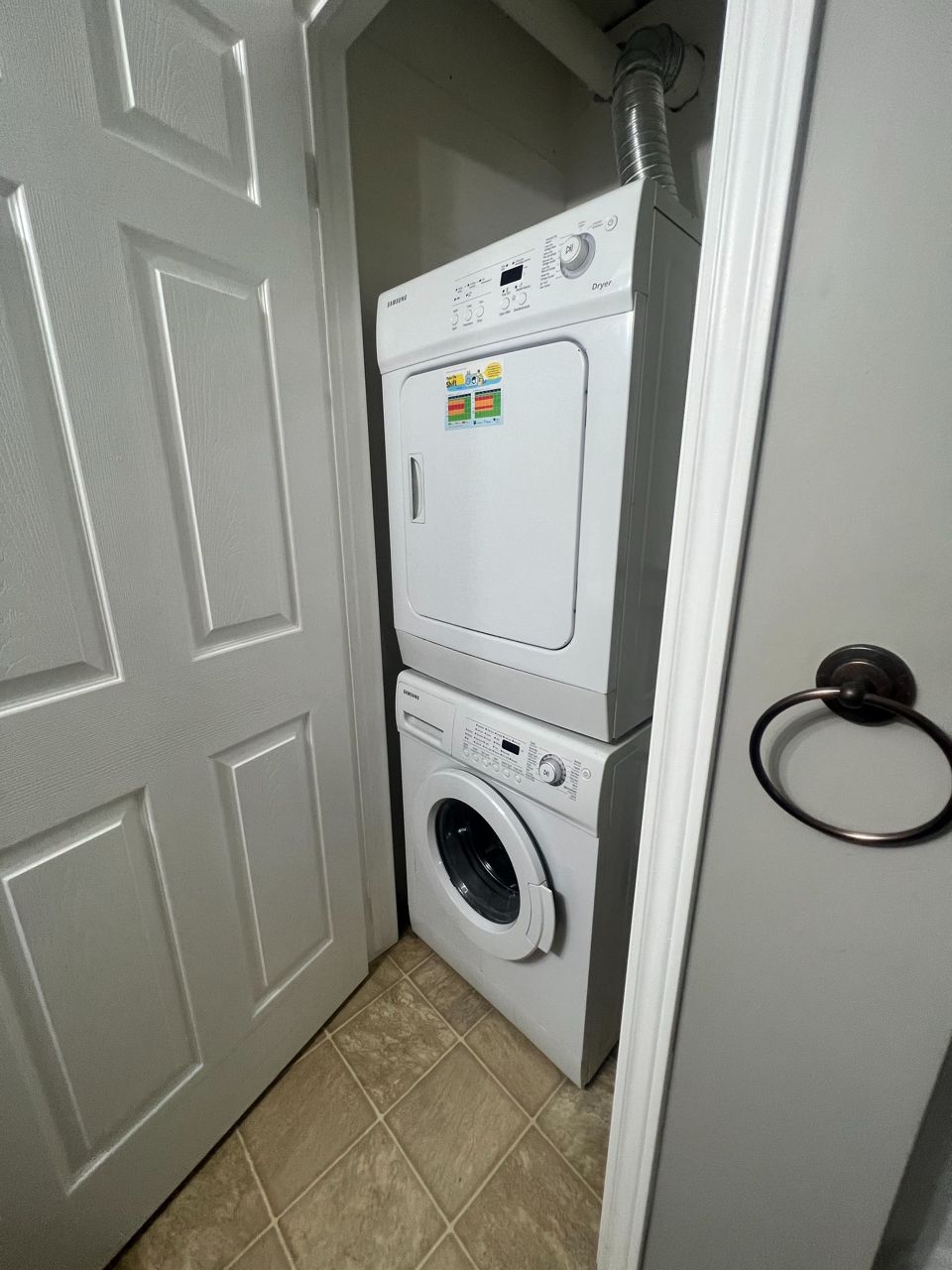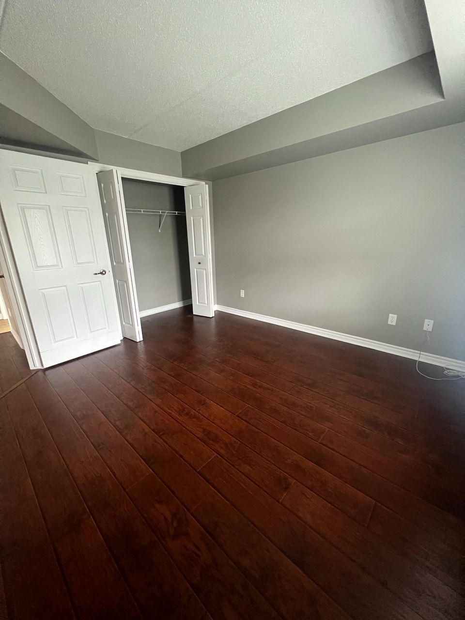 One bedroom condo located on the GROUND FLOOR in a great location! Easy access to highway 401, public transit, shopping, parks, and recreation centre. In Suite laundry, dark kitchen cupboards, good size bedroom and living space. One underground parking spot included and one storage locker.