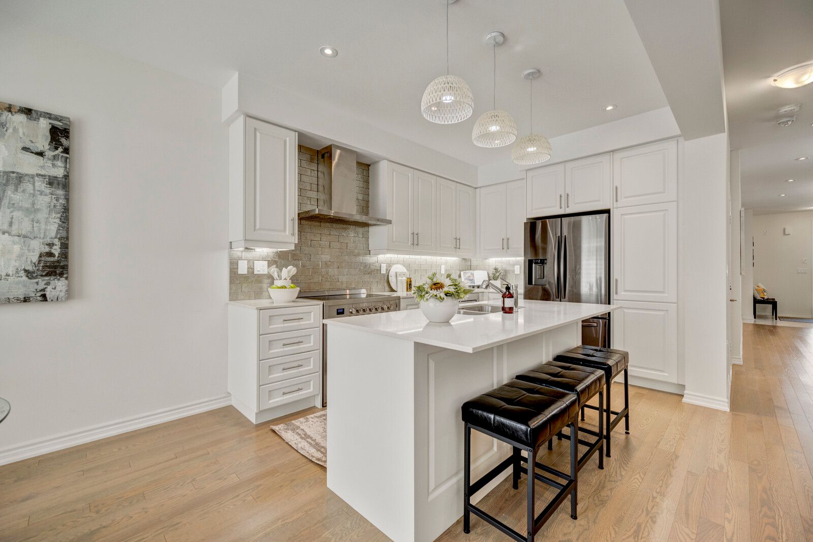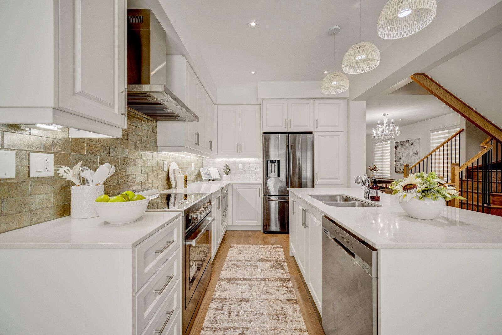 Gourmet Kitchen Ft.36" Stove, Chimney Hood Fan, Luxurious Backsplash, & Built-In Microwave. Smooth Ceilings On Both Level, Upgraded Flooring & Tiles, Frameless Shower, His & Her Sinks, & More!Possibility Of Separate Entrance & Basement Apartment. Close To All Amenities Including Parks, School, Highways, & University Coming Soon.