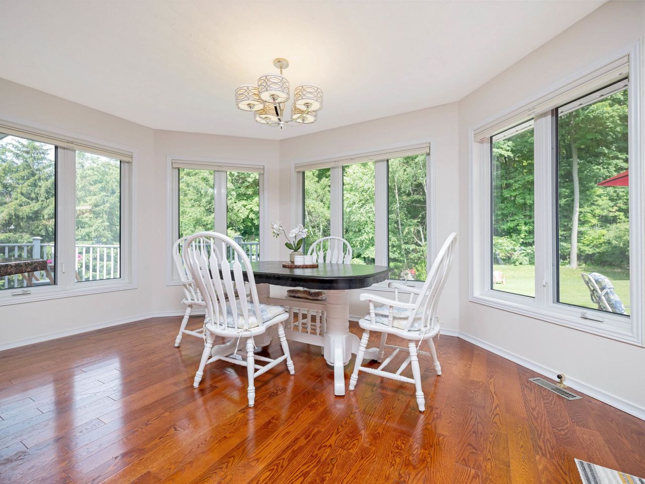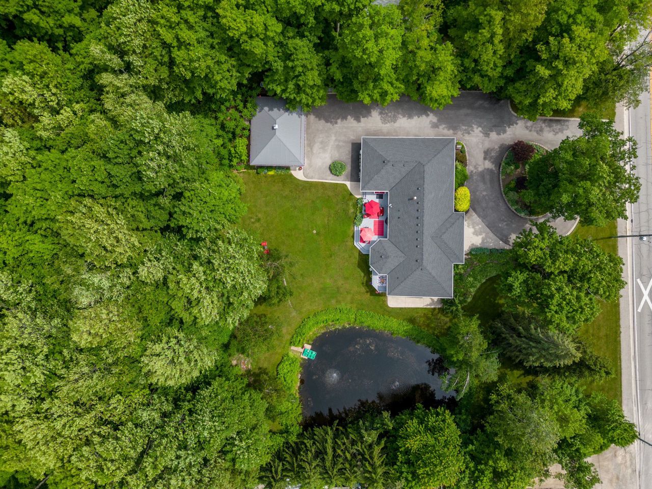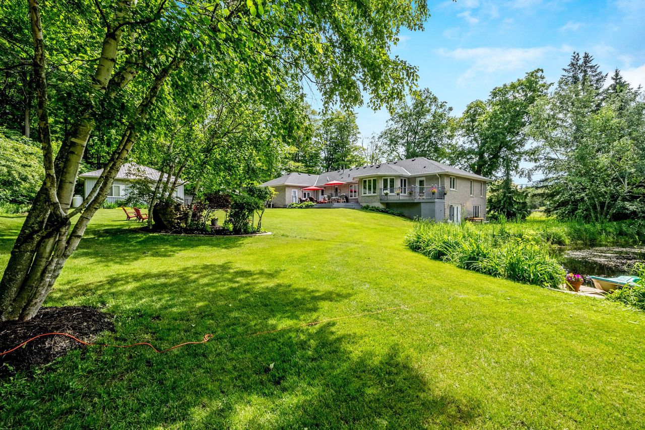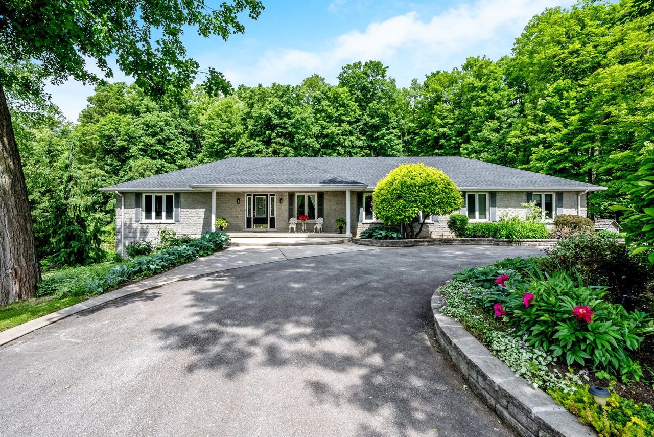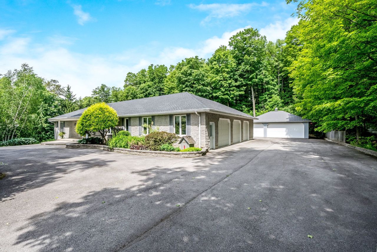 This gorgeous custom built bungalow sits on a private & mature 1 acre lot w/ a pond, offers over 3,900 sq. ft. of living space, a heated detached 3-car garage + an attached 3-car garage w/ a separate entrance to the basement! The open-concept main floor has stunning views from every window, hardwoods throughout, a large living room w/ a fireplace, the dining room has a walk-out to the lovely deck & the kitchen offers a huge island w/ breakfast bar, s/s appliances, granite, a wet bar & a pantry! The primary suite offers a walk-in closet + 2 additional closets & a gorgeous 4-pc ensuite w/ glass shower & soaker tub w/ a walk-out to a private deck. There are 2 more great-size bedrooms, a renovated main 3-pc bath, an over-sized laundry room & mudroom w/ direct access to the 3-car garage. The finished basement is spectacular w/ a walk-out to a patio & the beautiful pond, a large rec room w/ a fireplace, a kitchenette, 3-pc bath, a bedroom, an office & a separate entrance from the garage!A one-of-a-kind property right in Campbellville! Professionally landscaped, parking for 10+ cars on the driveway + 6 garage spaces, tranquil pond w/ fountain feature. Just 5 minutes from the 401! Furnace '22, Roof '15