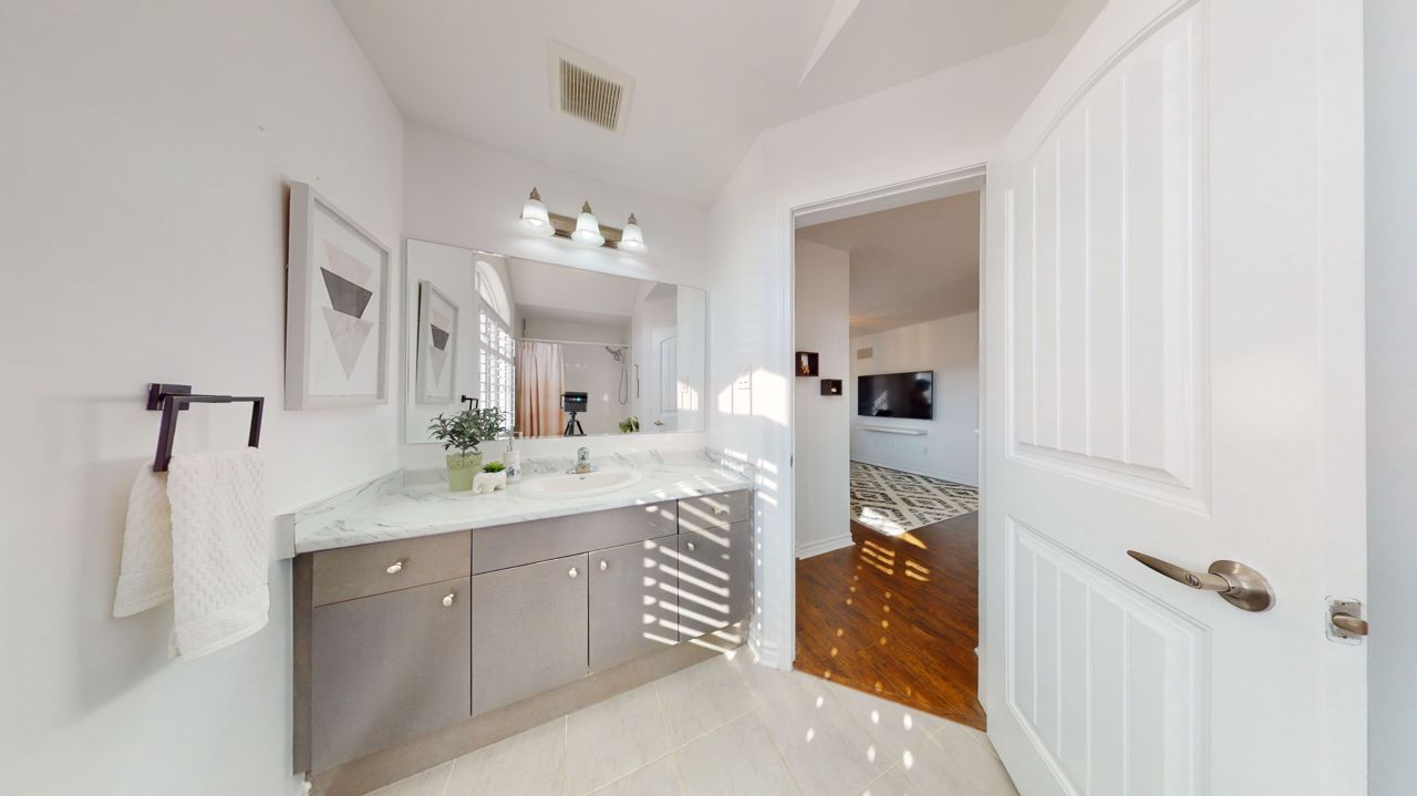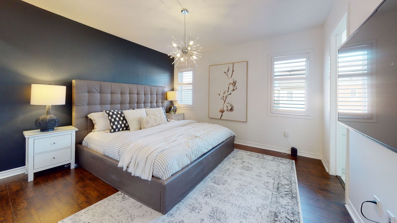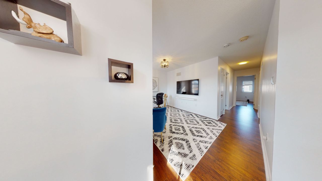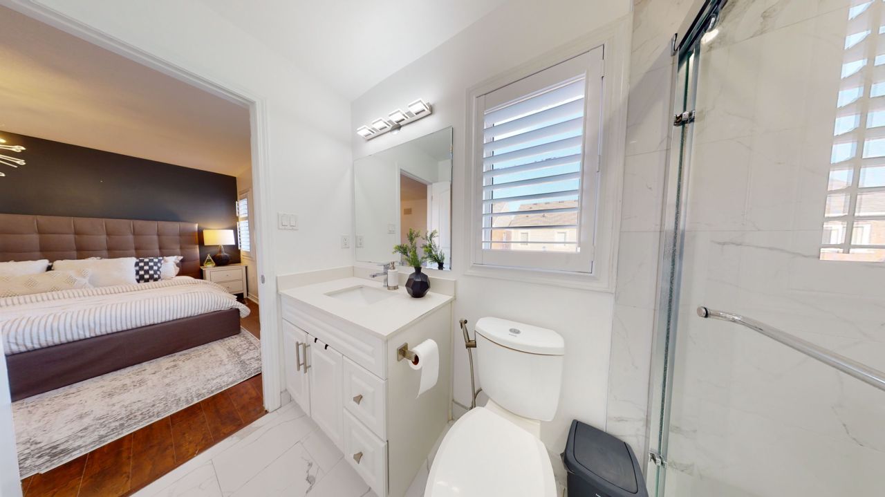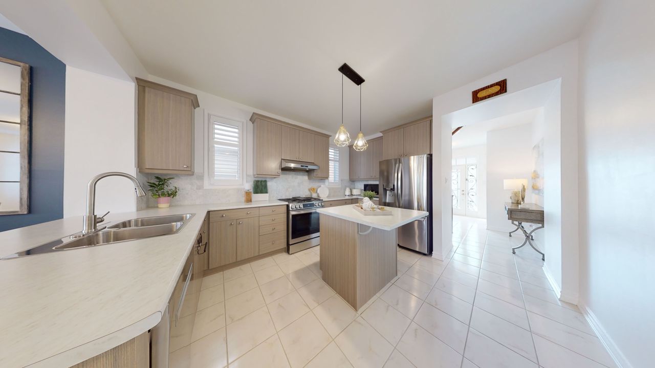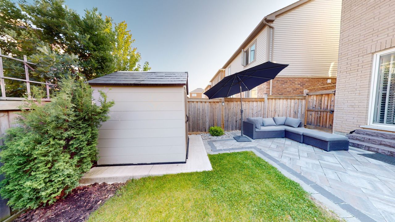 This stunning residence features three generously proportioned bedrooms, 2.5 baths, and ample storage. With its well-designed layout, hardwood floor, 9-foot ceilings, and California shutters; the home creates a bright and open ambiance. The spacious living room with adjoining dining area complemented by a cozy fireplace invites relaxation. The kitchen showcases elegant stainless-steel appliances, including a gas stove and marble backsplash. The primary bedroom offers a private retreat with an ensuite bathroom and custom walk-in closet. The second floor features a designated family room with an office nook and convenience of a laundry room. Custom-made coat closets offer easy organization. The landscaped exterior offers a serene outdoor space, with a stunning interlock patio and a garden shed. Located in a family-friendly neighborhood, it enjoys proximity to amenities. This captivating home appeals to even the most discerning buyers. Don’t miss out on this incredible opportunity!Stainless Steel Fridge, Gas Stove, Built-In Dishwasher. Washer And Dryer. All Window Coverings, All Electrical Light Fixtures.