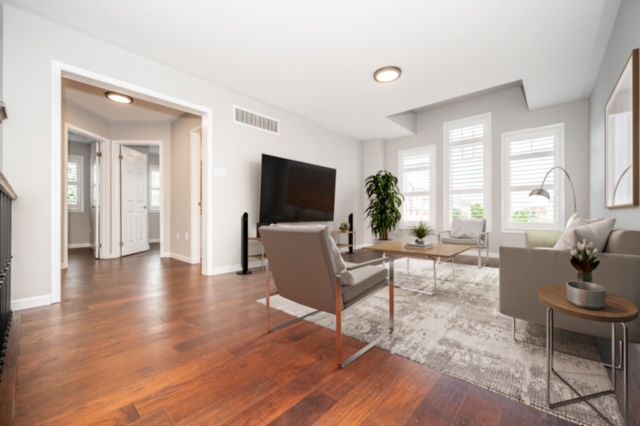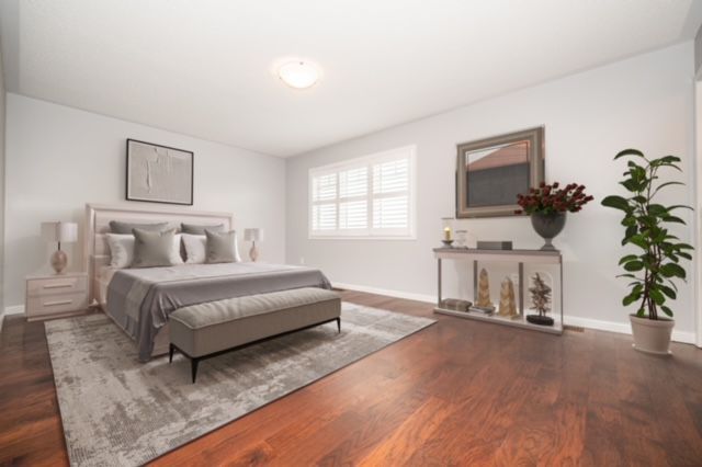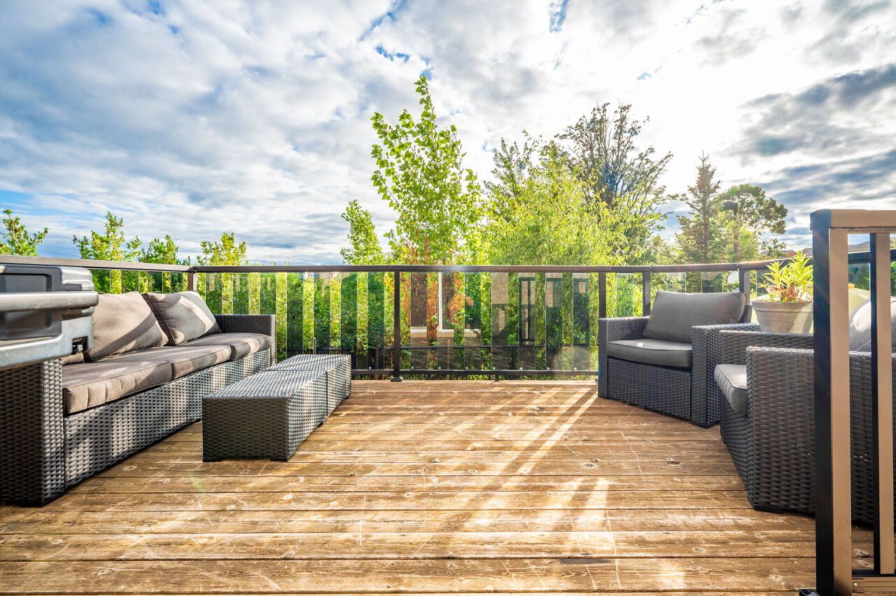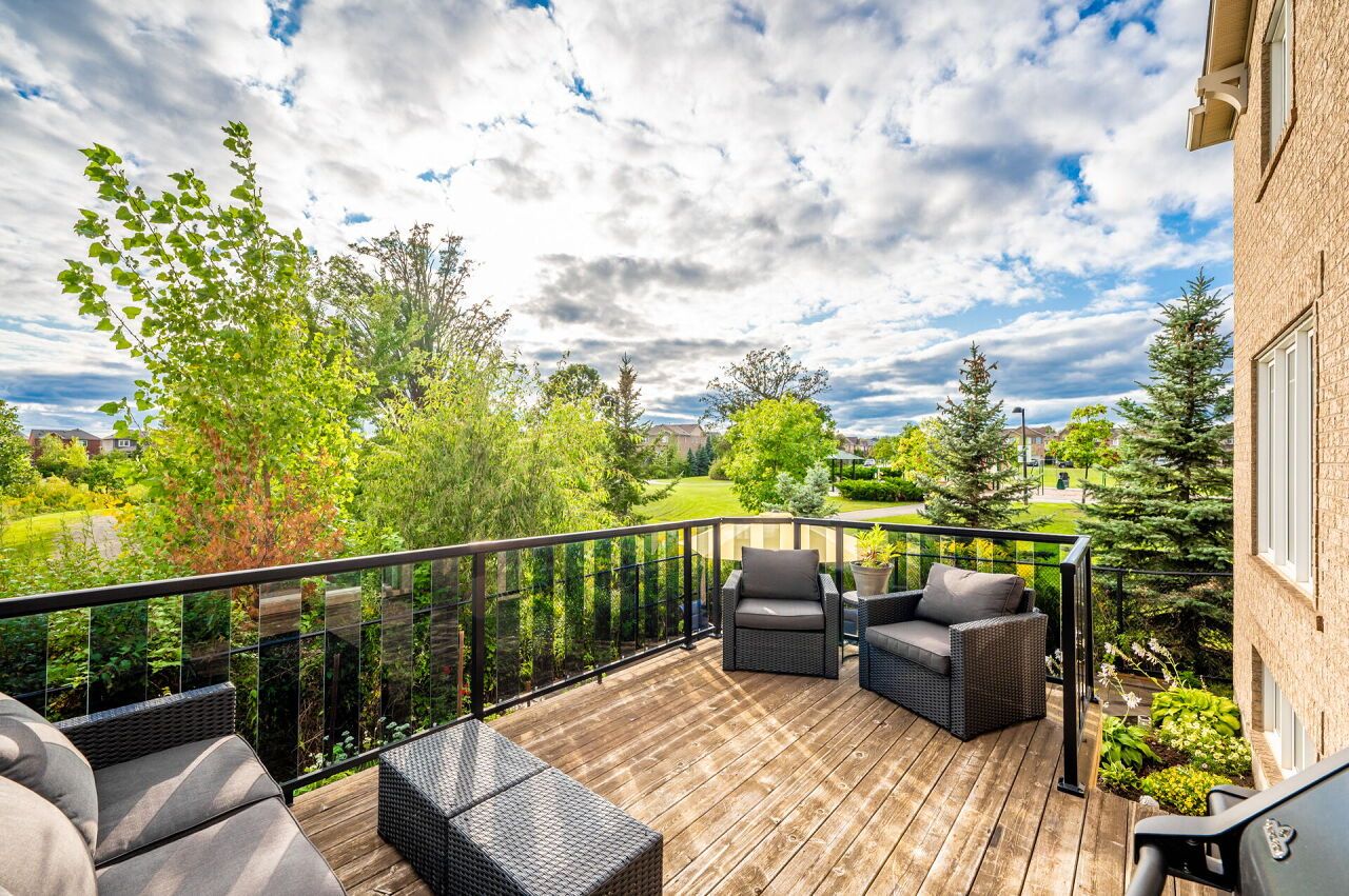 Beautiful Mattamy-built home with 2,285 sq ft and a prime location next to a neighborhood park. The main level of the home includes 9-foot ceilings, wide plank hardwood flooring, and freshly painted throughout. The upgraded white kitchen is spacious and includes a gas range, premium stainless steel appliances & peninsula bar with white granite countertops. Walkout to a custom deck with a pond view. The large primary bedroom features a 4-piece ensuite and a walk-in closet. Three good sized additional bedrooms all with California shutters. Bonus 2nd floor additional living room. Other features include 2nd floor laundry, main floor office, fully fenced yard & tons of natural light with Western exposure. Prime location close to all major amenities.