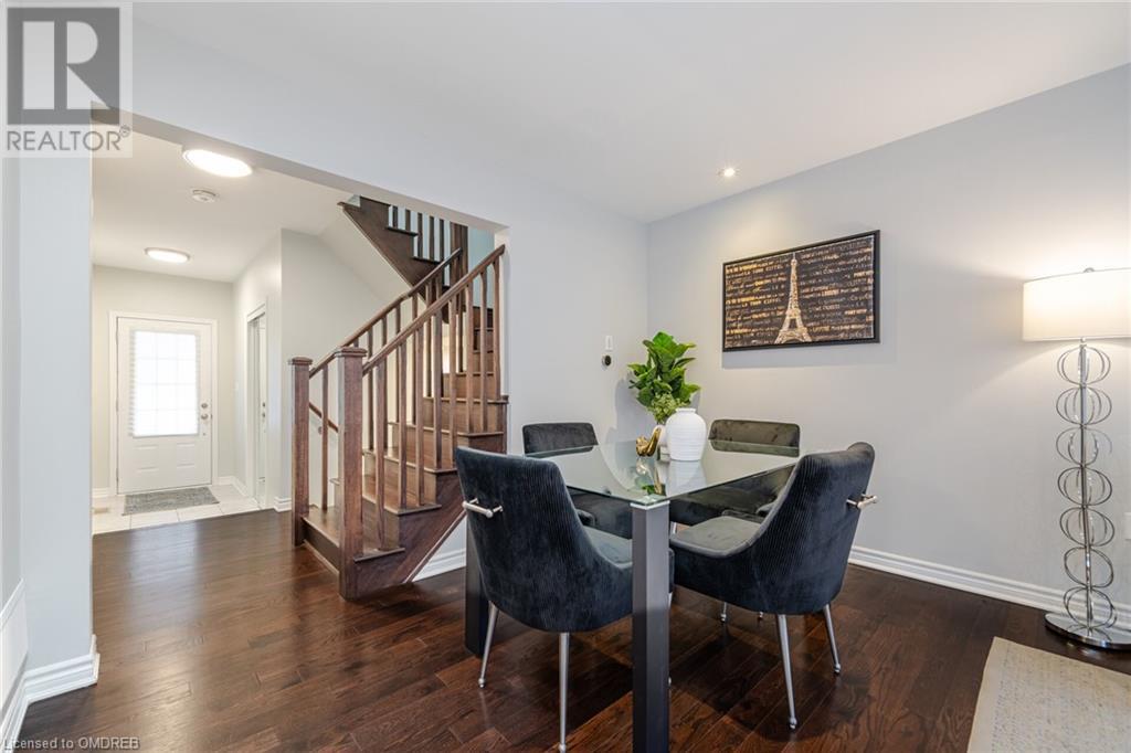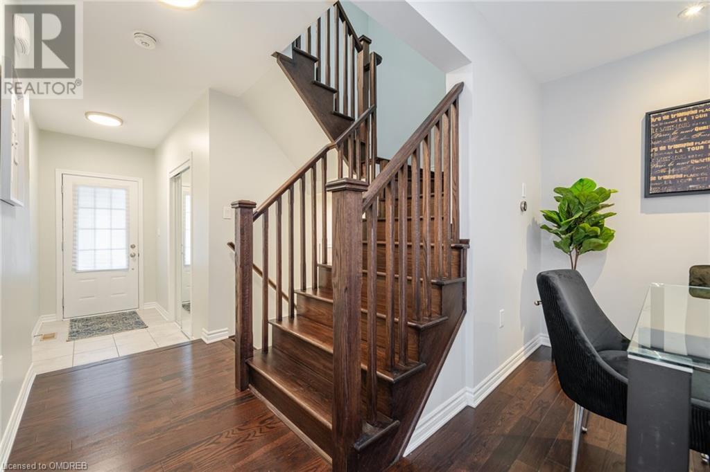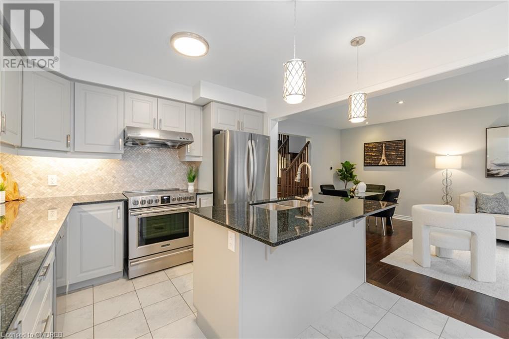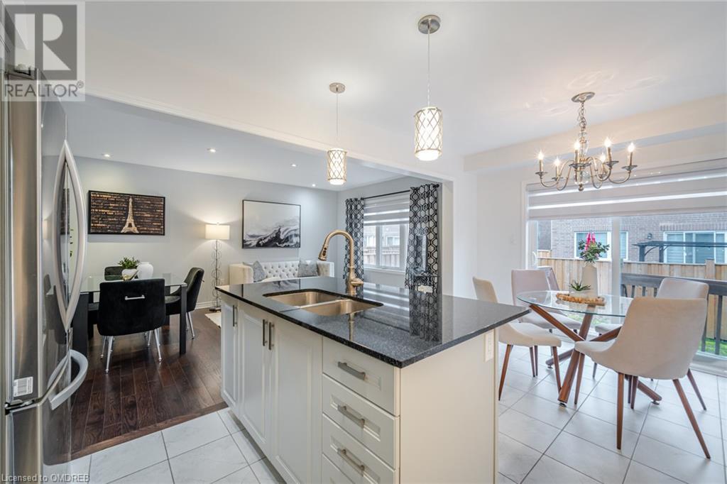 OFFERS ANYTIME! Not holding for an offer date. Absolutely STUNNING townhouse! The main floor showcases a beautiful Open concept kitchen and great room layout, which allows for a traditional living+dining setup OR, you can make the eat-in kitchen your main dining room and open your liv/din into a HUGE great room with extra cozy seating for movie night or game night with family and friends. Upstairs offers 3 beautiful bedrooms (2 walk-in closets and a double closet) with brand new fooring (thankfully we don't say gleaming hardwood anymore), nicely upgraded bathrooms, and tons of natural light behind the modern silhouette blinds. The area has so much in walking distance, including grocery, LCBO, banking, schools, parks, trails and SO much more, any you're just up the street from the Milton Hospital making this area great for healthcare professionals as well. Check out the BIG windows in the basement, too - lots of possibilities! Also just a few minutes away - access to the 407 and 401, the world renowned Velodrome, and so much more. OTHER important info - Only 5 years old which means you're still covered by the 7 year Tarion structural warranty!! Rare private driveway means no door dings or shoveling disagreements with neighbours. (id:22211)
