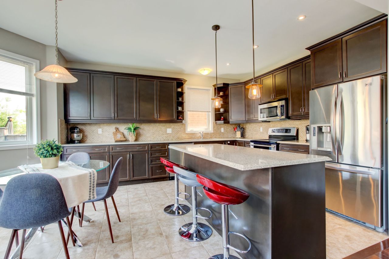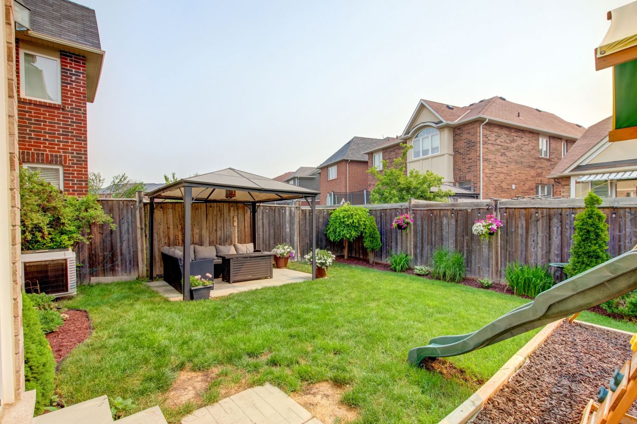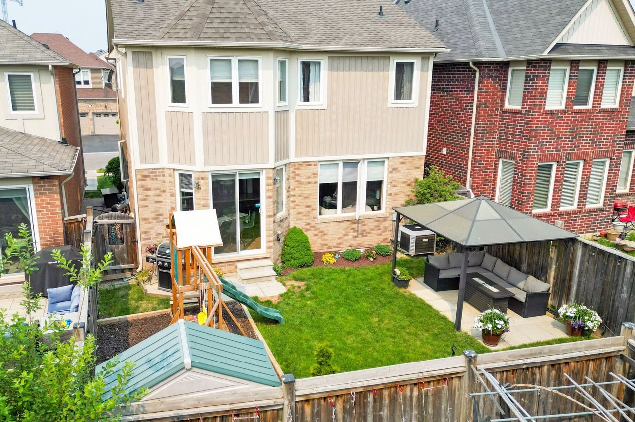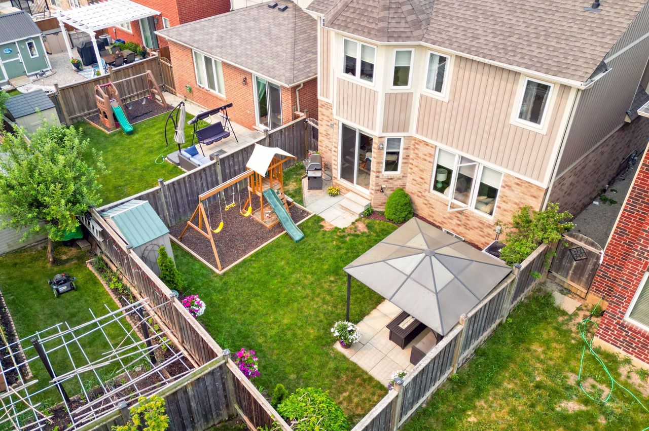 Fully finished and move-in ready! This stunning 4 bedroom, 3.5 bath Mattamy “Snowberry” is situated on a landscaped lot in an established neighbourhood of East Milton. Open concept main floor features 9′ ceilings and a popular floorplan well suited to entertaining. A separate formal dining room with wainscotting is great for hosting dinner parties. Spacious eat-in kitchen open to family room boasts stainless steel appliances (including island beverage fridge), quartz countertops, backsplash and ample storage. Hardwood staircase leads to 4 spacious bedrooms and a convenient upper floor laundry room. Primary bedroom has walk-in closet and a 4pc ensuite with separate shower and soaker tub. Finished basement adds a large rec room/office space with feature wall and electric fireplace, as well as a full bathroom. Landscaped lot includes expanded front driveway, backyard seating area, children playset and storage shed.Great location for commuters & families. Quiet, family-friendly street just minutes to the 401, 407, the Milton Go Station, supermarkets and restaurants. Walk to schools, Symposium restaurant, parks, trails and more! See multimedia tour.