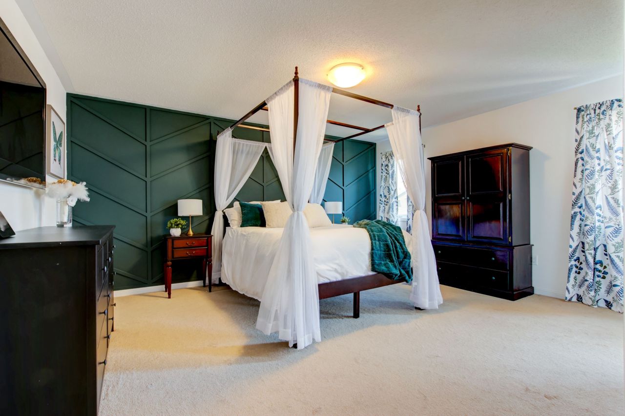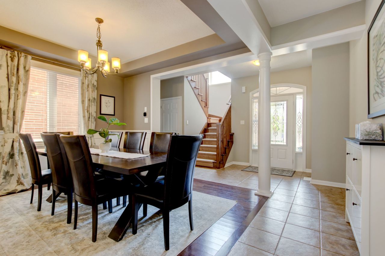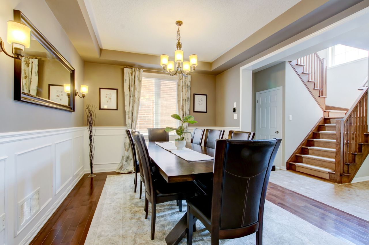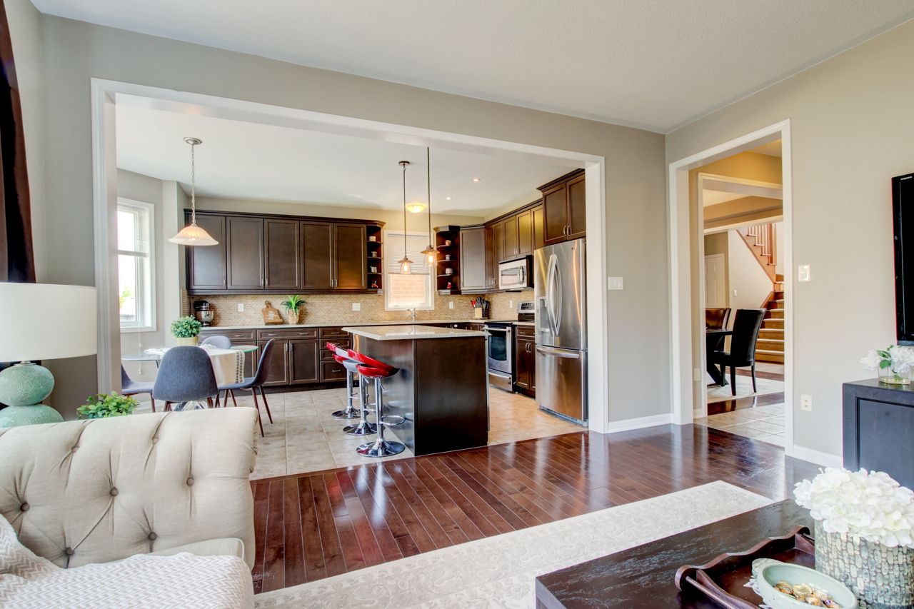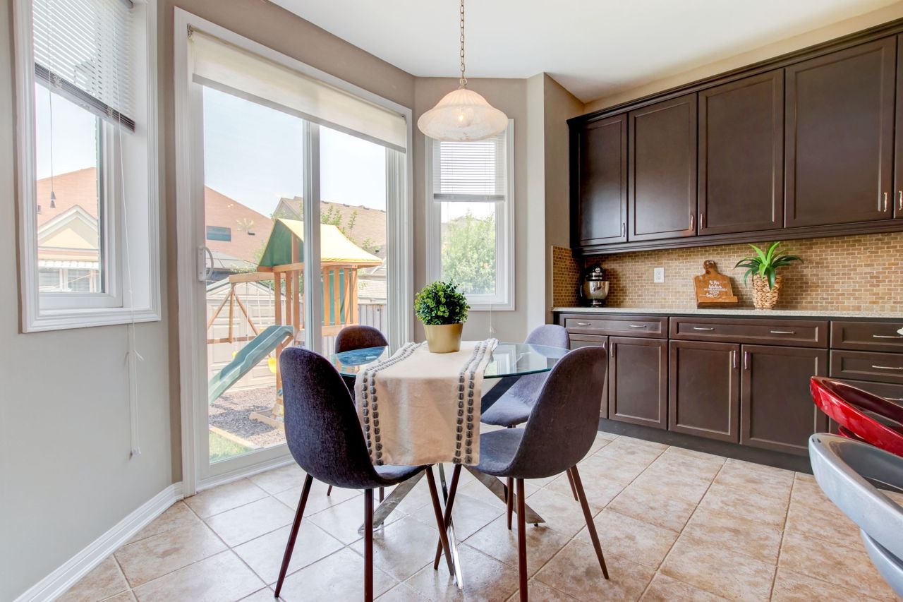 Fully finished and move-in ready! This stunning 4 bedroom, 3.5 bath Mattamy “Snowberry” is situated on a landscaped lot in an established neighbourhood of East Milton. Open concept main floor features 9′ ceilings and a popular floorplan well suited to entertaining. A separate formal dining room with wainscotting is great for hosting dinner parties. Spacious eat-in kitchen open to family room boasts stainless steel appliances (including island beverage fridge), quartz countertops, backsplash and ample storage. Hardwood staircase leads to 4 spacious bedrooms and a convenient upper floor laundry room. Primary bedroom has walk-in closet and a 4pc ensuite with separate shower and soaker tub. Finished basement adds a large rec room/office space with feature wall and electric fireplace, as well as a full bathroom. Landscaped lot includes expanded front driveway, backyard seating area, children playset and storage shed.Great location for commuters & families. Quiet, family-friendly street just minutes to the 401, 407, the Milton Go Station, supermarkets and restaurants. Walk to schools, Symposium restaurant, parks, trails and more! See multimedia tour.