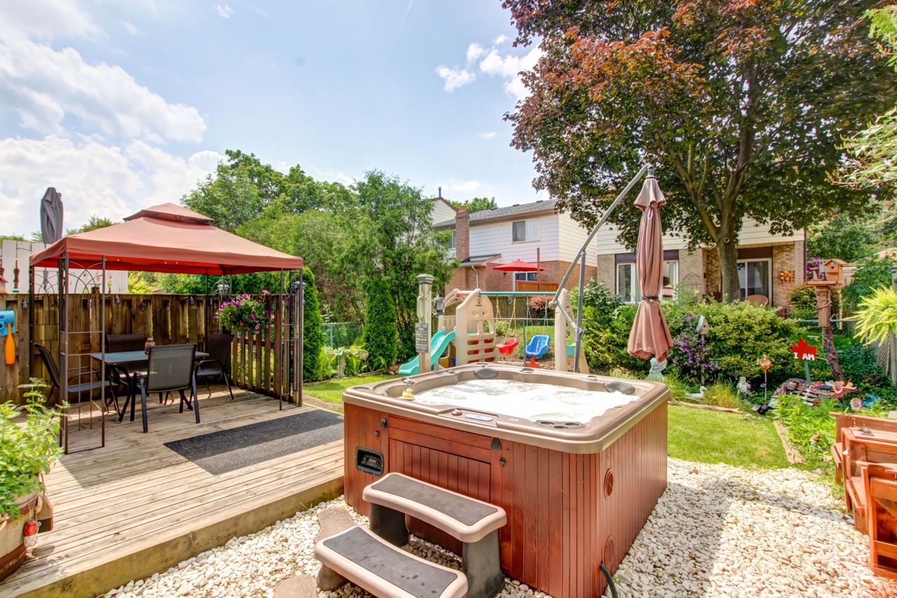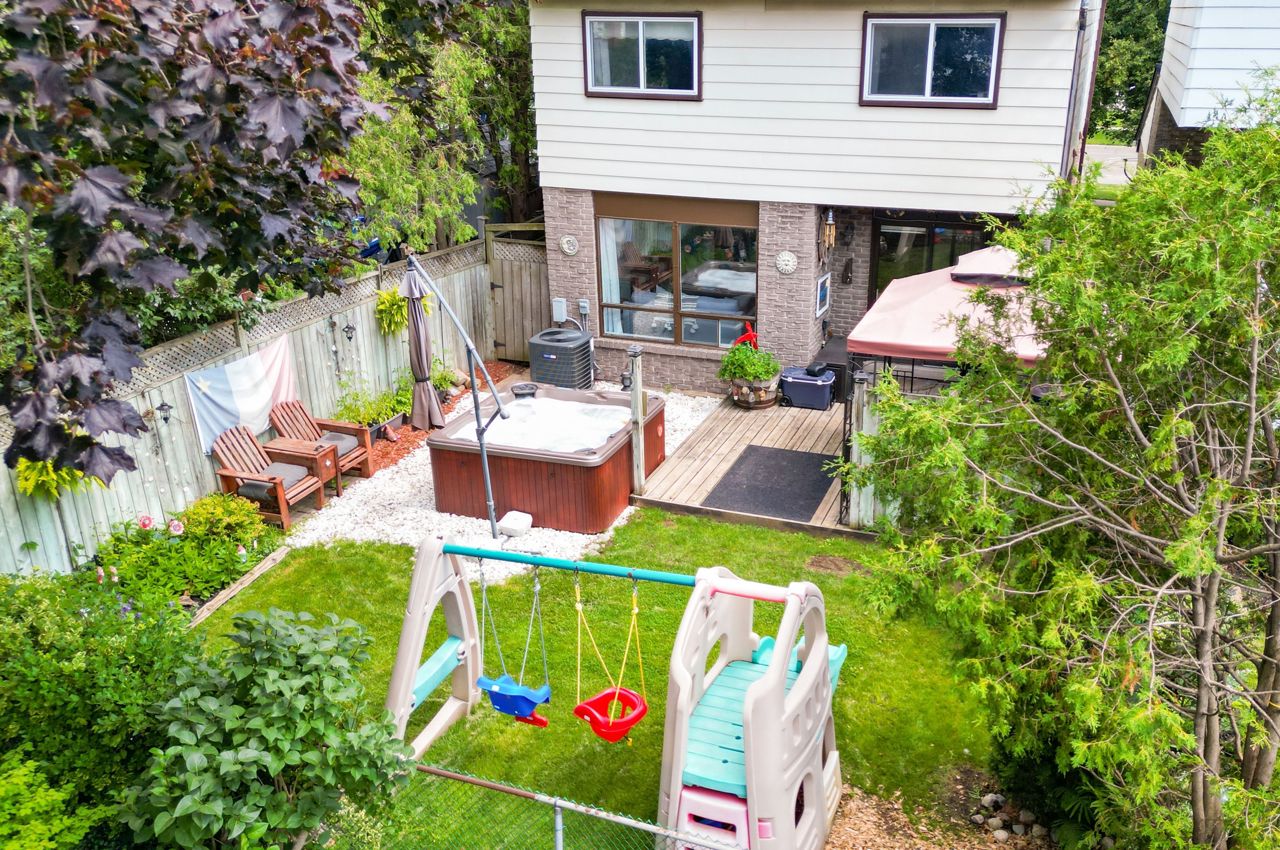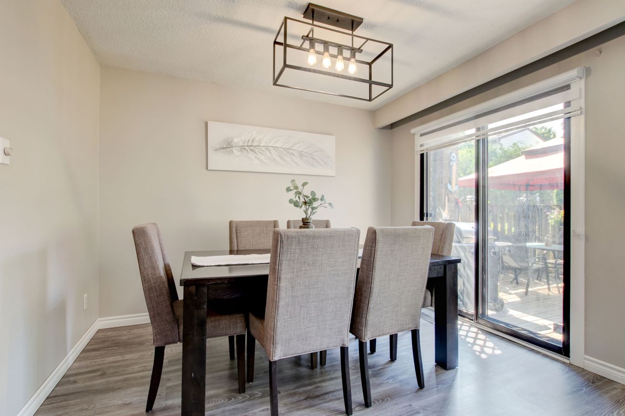 This lovely 4-bedroom detached home is in beautiful Dorset Park & offers the perfect alternative to living in a townhome or a semi! A rare opportunity to own a detached property in one of Milton's most sought-after neighborhoods. Private drive w/ample parking, garage w/direct access to bkyard, beautifully manicured lawns, & mature trees. Pleasing main flr layout w/a spacious open-conc LR/DR featuring updated laminate flrs, woodburning FP & a bright picture window, the perfect space for entertaining. Dining area has room for the family w/a sliding dr walk-out to the lovely bkyard offering an ideal space to relax & unwind (in the hot tub!). Updated galley style kit boasts white cabinetry, upgrd sink, laminate flr & brkfast area. Convenient 2pc bathrm. 4 spacious bdrms (all are a good size). One updated bedroom w/laminate flrs, vinyl windows thru-out upper level. Generous primary bdrm w/dbl closets & access to 4pc bath. Bsmt finished w/lrg rec rm, kids play area, bar + lots of storage!Offers at any time. Roof ('20), furn/AC ('17), drive ('18), main flr ('21). Dorset Park has great schools, parks, restaurants, grocery stores & entertainment! Quick access to Hwy 401, only 3 mins to Milton Go. See tour link for more detail.