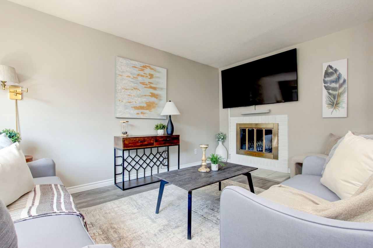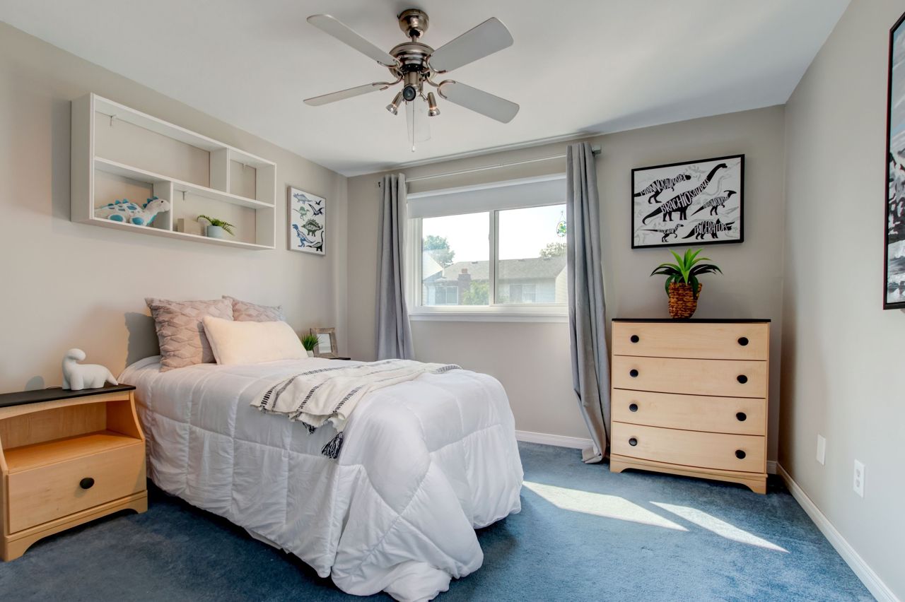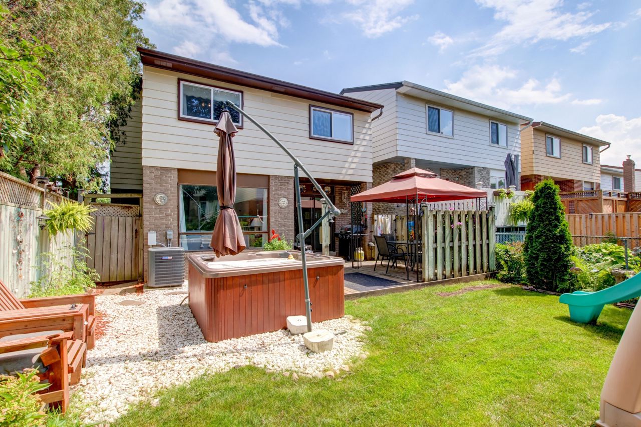 This lovely 4-bedroom detached home is in beautiful Dorset Park & offers the perfect alternative to living in a townhome or a semi! A rare opportunity to own a detached property in one of Milton's most sought-after neighborhoods. Private drive w/ample parking, garage w/direct access to bkyard, beautifully manicured lawns, & mature trees. Pleasing main flr layout w/a spacious open-conc LR/DR featuring updated laminate flrs, woodburning FP & a bright picture window, the perfect space for entertaining. Dining area has room for the family w/a sliding dr walk-out to the lovely bkyard offering an ideal space to relax & unwind (in the hot tub!). Updated galley style kit boasts white cabinetry, upgrd sink, laminate flr & brkfast area. Convenient 2pc bathrm. 4 spacious bdrms (all are a good size). One updated bedroom w/laminate flrs, vinyl windows thru-out upper level. Generous primary bdrm w/dbl closets & access to 4pc bath. Bsmt finished w/lrg rec rm, kids play area, bar + lots of storage!Offers at any time. Roof ('20), furn/AC ('17), drive ('18), main flr ('21). Dorset Park has great schools, parks, restaurants, grocery stores & entertainment! Quick access to Hwy 401, only 3 mins to Milton Go. See tour link for more detail.