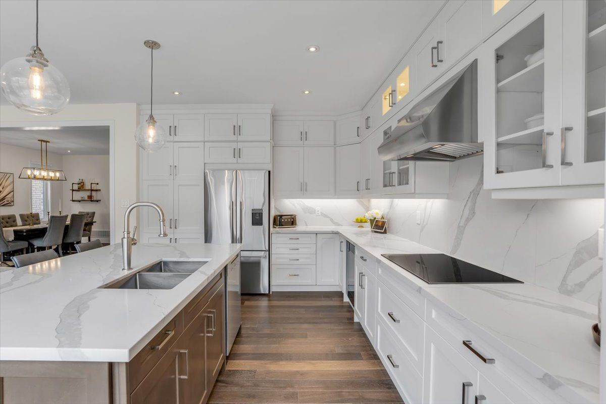 Discover a stunning upgraded 4 bed, 3 bath home w. custom feels. Featuring over $250k in-home upgrades & in professional custom landscaping, this property offers a luxurious living experience. Step inside to find quartz countertops in the kitchen, fireplace, and bathrooms, exuding elegance throughout. The home is adorned w. Hunter Douglas blinds, including remote control functionality in the main floor & master bedroom. The kitchen is equipped with high-end Miele appliances, including an induction stove top, built-in wine fridge, dishwasher, and combination steam oven & oven. A F&P fridge completes the sleek modern kitchen. Close to amenities like parks, schools, and more. Don't miss this opportunity for upscale living. $100k in-home upgrades & $120k prof custom landscaping incl front entrance, backyard (cedar fencing,custom Gazebo w/pot lights & fan, with b-in BBQ & fridge, & overhanging natural stone countertop)Incl $12k of featured outdoor lighting all around the property's landscaping. Quartz countertops,quartz fireplace & quartz bathrm countertops.Hunter Douglas blinds thru-out home incl remote control on main flr (kit/living rm) & mbr.