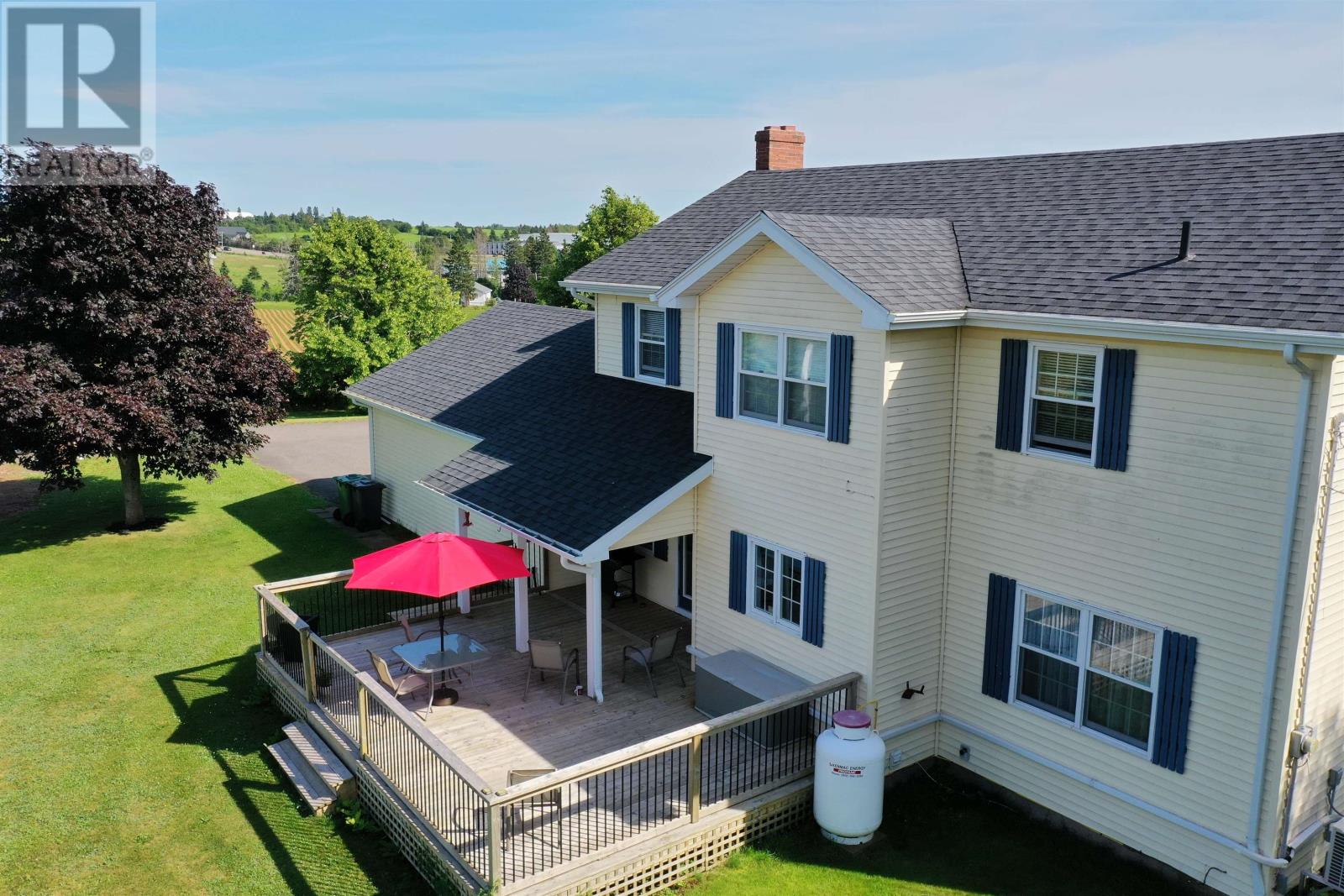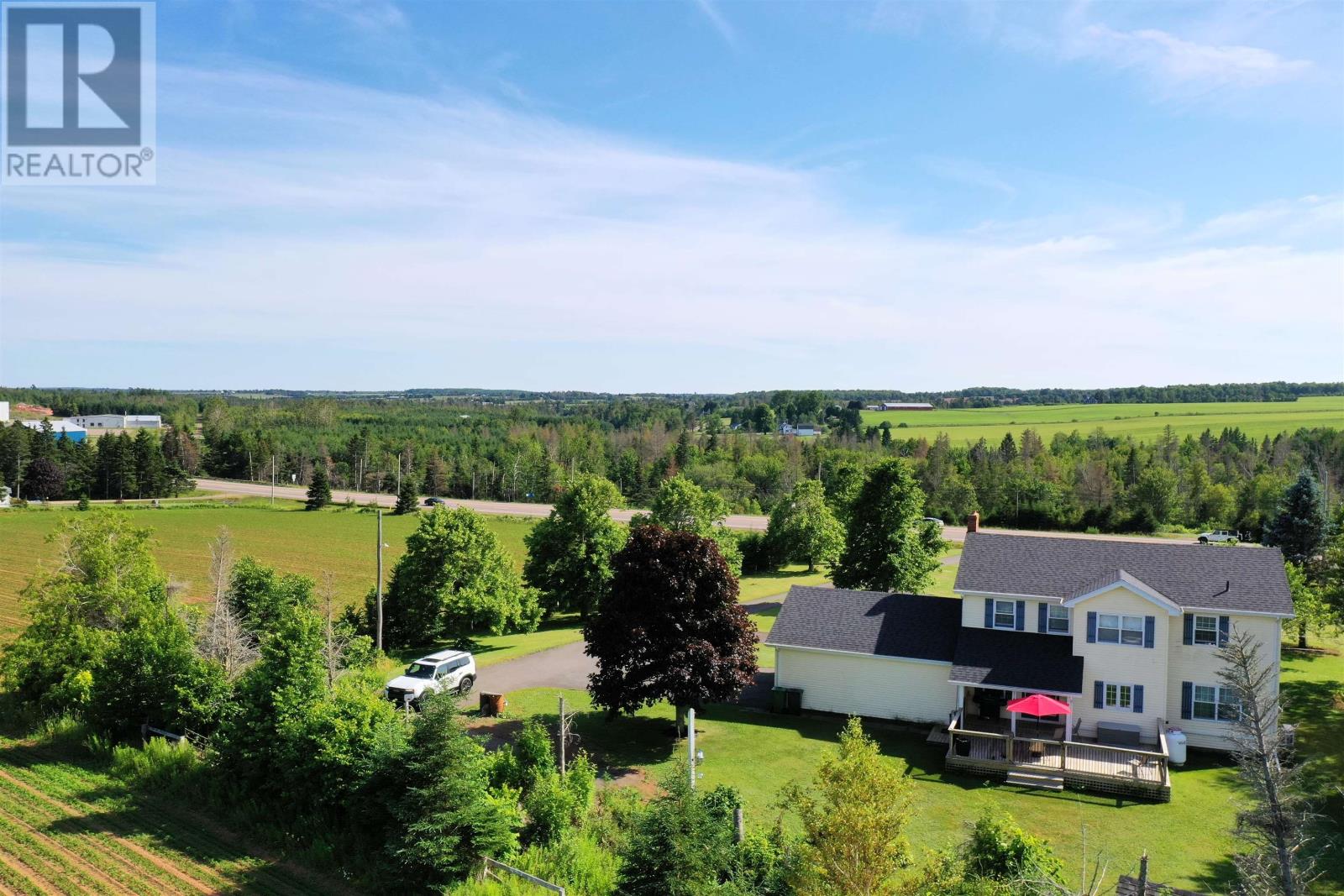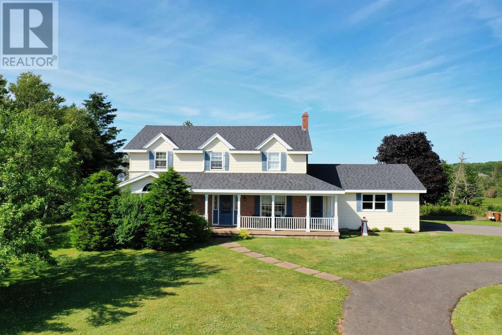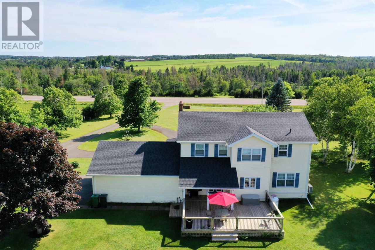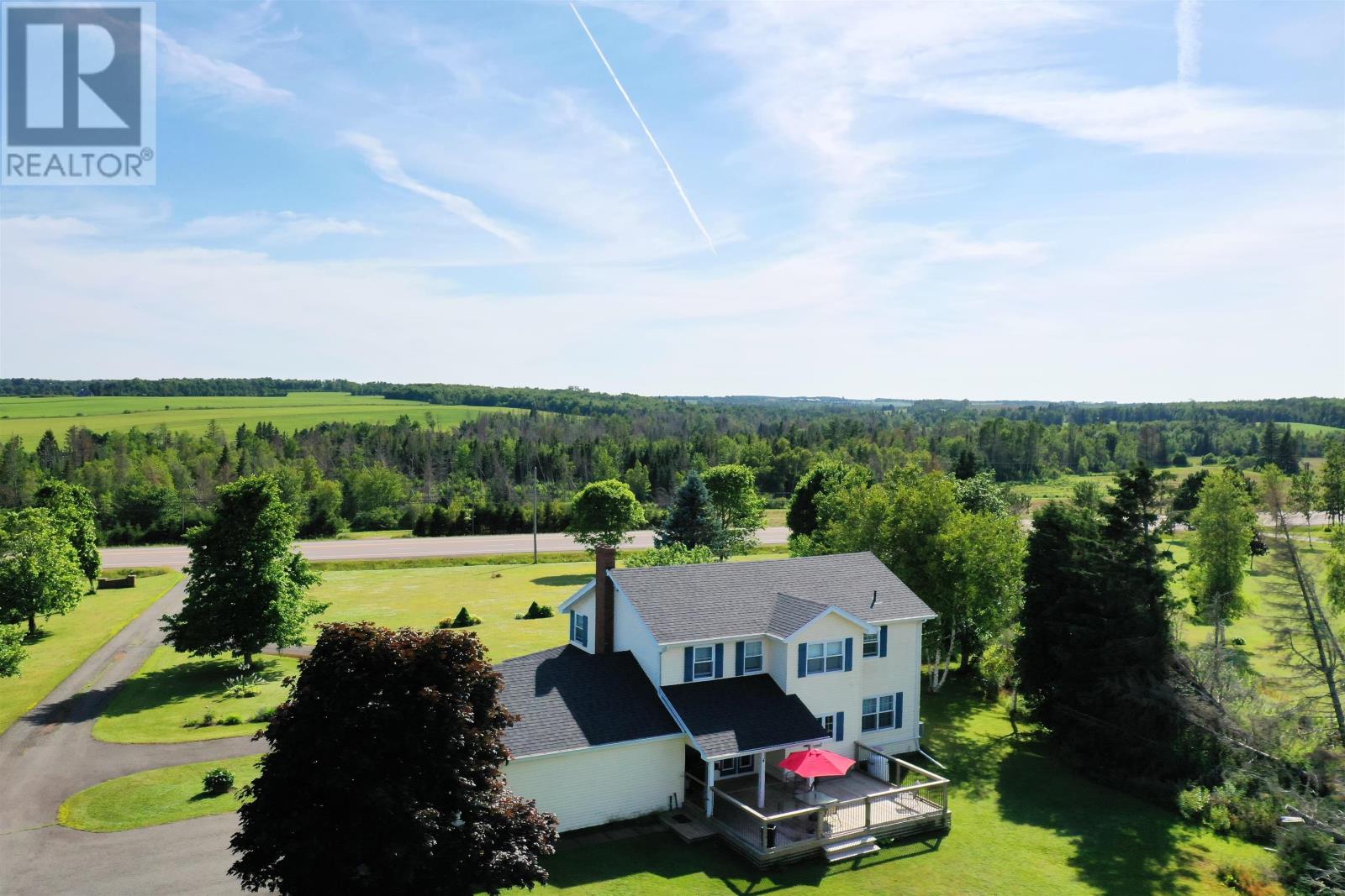 This 2 storey home is situated on a mature 1.95A lot in a scenic country setting. Well landscaped there is a paved drive as well as a loop for easy parking and exiting onto Rte 2. This location would suit any discerning buyer with an easy commute to both Charlottetown and Summerside. The 2 car garage is accessed via the home through a mud/laundry room. The main level features garden doors to a partially covered deck via the kitchen area. The eat in kitchen is well appointed with a breakfast bar. The home features a covered veranda overlooking the countryside. The main level has a lovely flow and features a formal dining room, living room, a cozy family room with fireplace, and a grand staircase accessing the second level. The second level features all three bedrooms have ensuites, they are all spacious and well appointed. The home is immaculate, the lower level is unfinished but could easily increase the living space if desired. (id:61201)