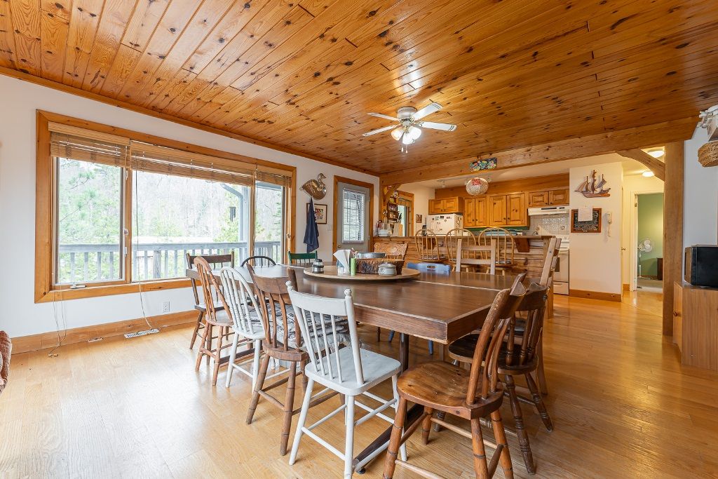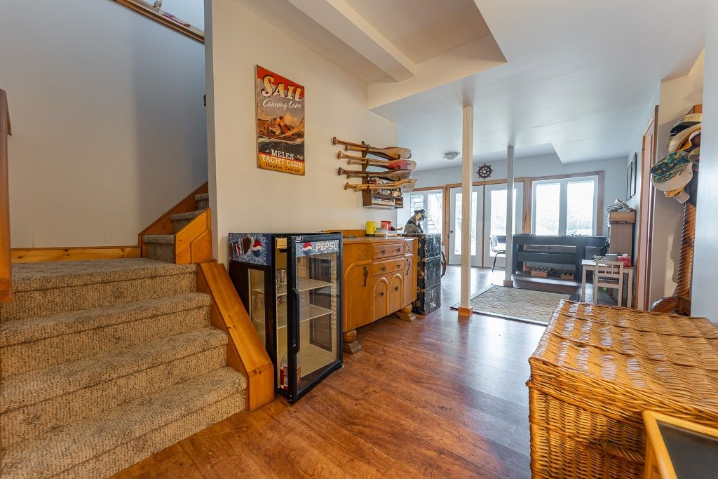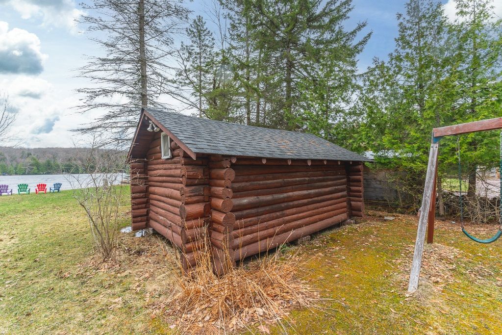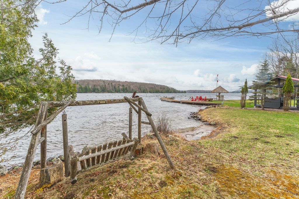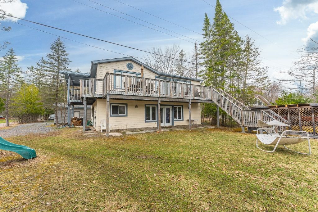 Flat lot, shallow/sandy shoreline. Clean waterfront, southern exposure, wrap around deck. Place has been designed with large, open rooms including the living room with woodstove. Large dining room, kitchen with pine cupboards and breakfast bar. Main floor laundry, 4pc. bath and 2 large bedrooms. Lower level consists of 3pc. bathroom, sauna and open area with a walk. 2 more bedrooms and 2 other rooms offer space that could be used for extra guests. Log cabin & garage close to the water. Property on year round road comes turn key.**INTERBOARD LISTING: THE LAKELANDS R. E. ASSOC**