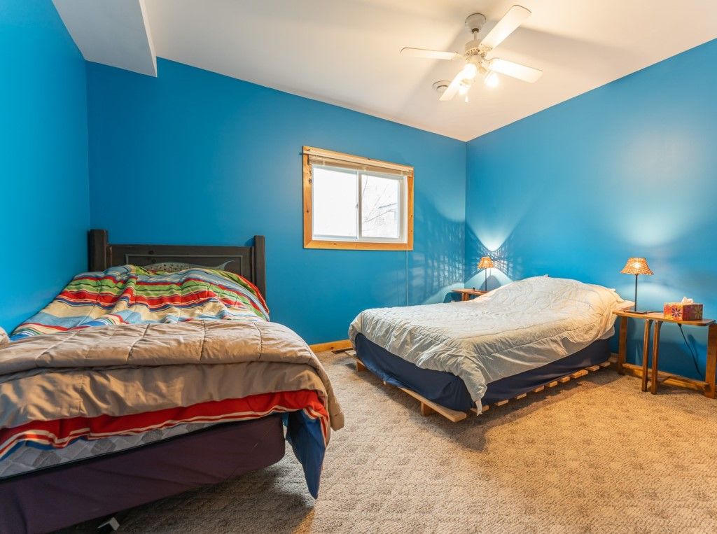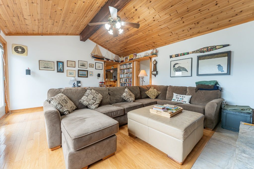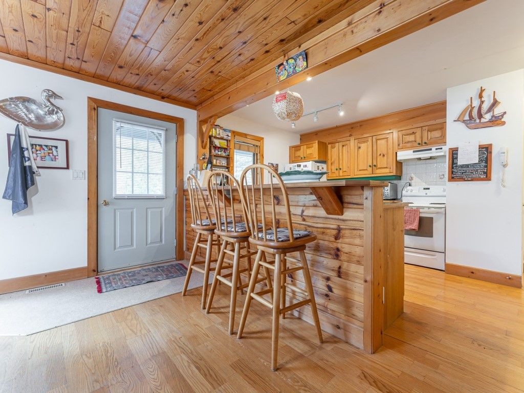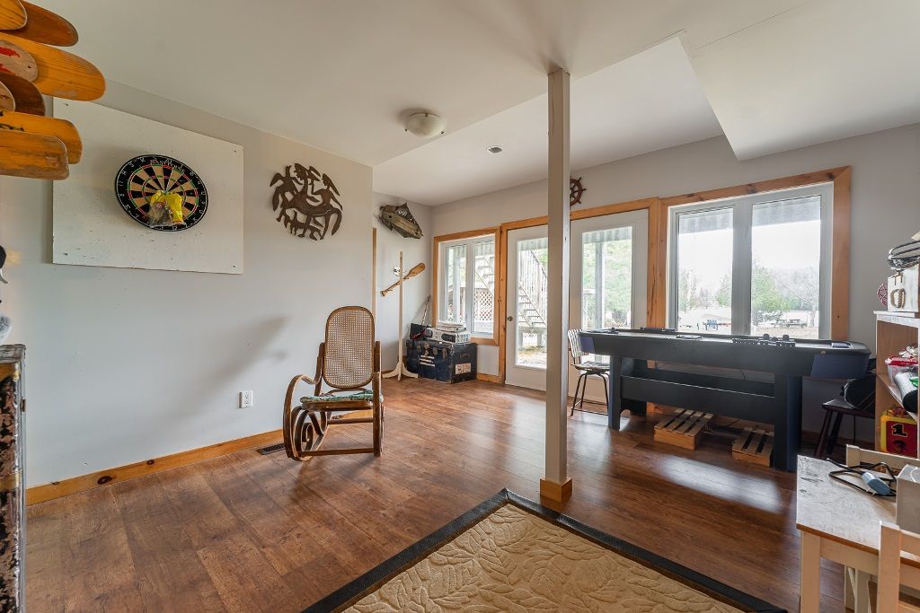 Flat lot, shallow/sandy shoreline. Clean waterfront, southern exposure, wrap around deck. Place has been designed with large, open rooms including the living room with woodstove. Large dining room, kitchen with pine cupboards and breakfast bar. Main floor laundry, 4pc. bath and 2 large bedrooms. Lower level consists of 3pc. bathroom, sauna and open area with a walk. 2 more bedrooms and 2 other rooms offer space that could be used for extra guests. Log cabin & garage close to the water. Property on year round road comes turn key.**INTERBOARD LISTING: THE LAKELANDS R. E. ASSOC**