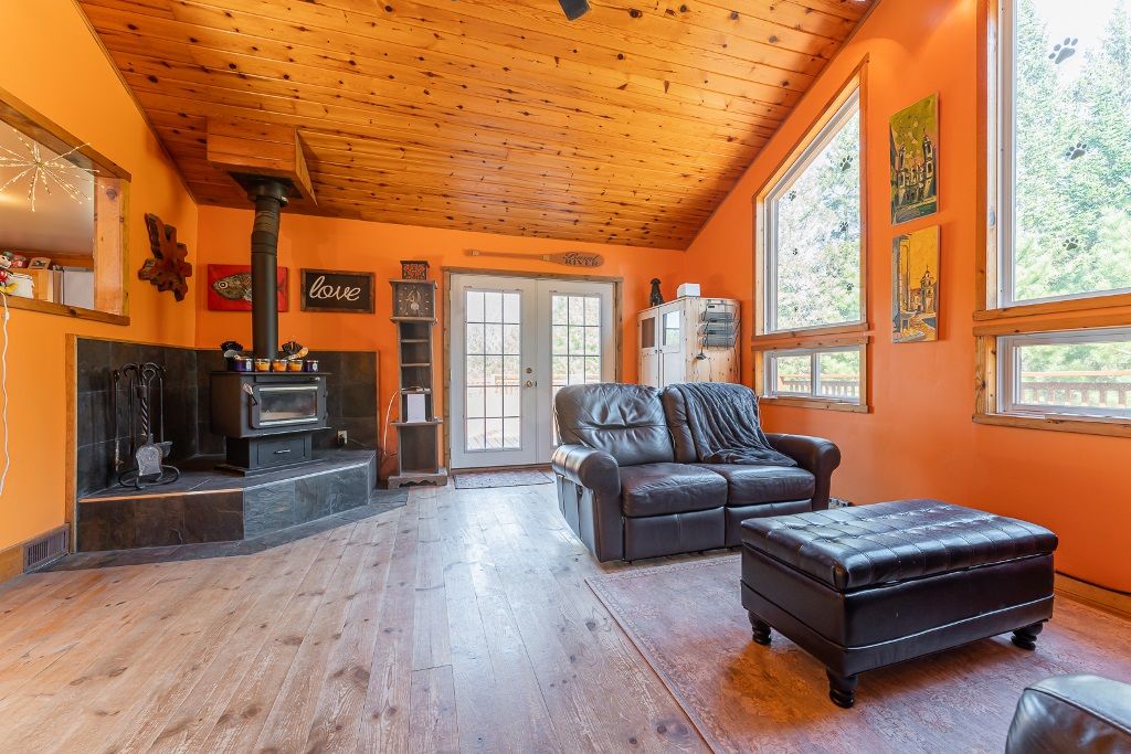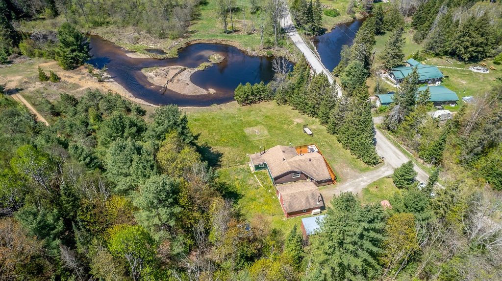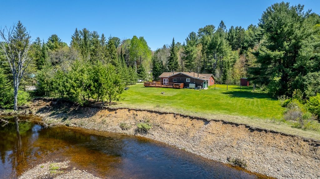 Peace and quiet await on this amazing piece of riverfront property. The expansive, level lot gives you unimpeded views of nature at it's best. The year-round home is warm and inviting with a high ceiling and large windows in the living room to let the outside in. Many upgrades over the past few years. The house is energy efficient and easy to heat. The wrap-around, spacious deck has 3 walkouts from the inside. The backyard offers a completed fenced area for little ones or pets. There is even a 2-car garage with storage loft. The river rambles by and there are places to play and a deep swim hole. Close to the Dahl Forest, Snowdon Park, Crown land beside, and only a 9 minute drive to Minden. It's all here, vacation or live - you will fall in love.**INTERBOARD LISTING: THE LAKELANDS R. E. ASSOC**