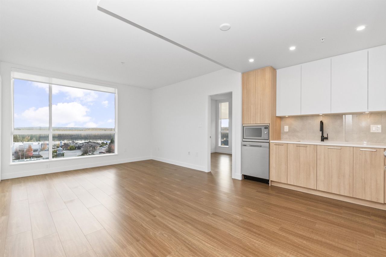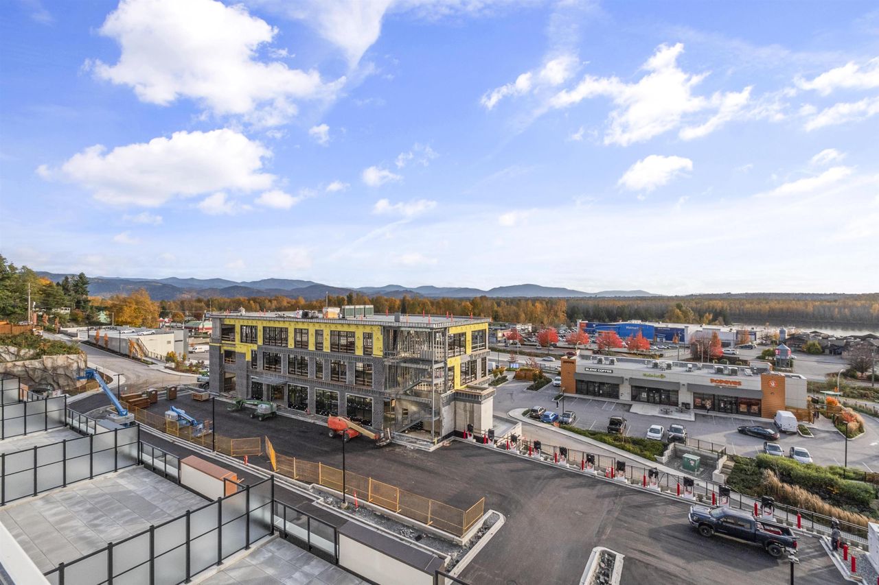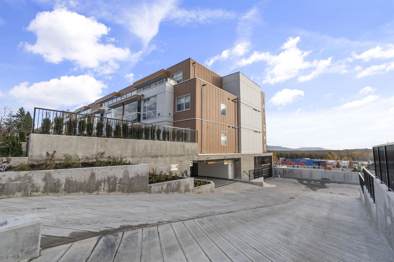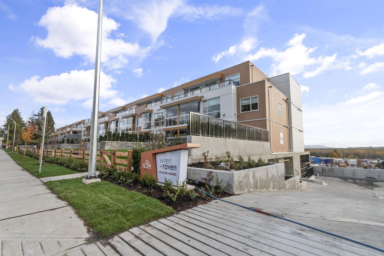 BRAND NEW CORNER UNIT w/STUNNING VIEWS! Wren & Raven is a fresh, modern community with rich amenities and shopping conveniences at your back door! With a beautiful contemporary design, it has two multi-story residential buildings that are nestled into the hill above Outlook Village with stunning views of the Fraser River & it's surrounding mountains. This unit features 2 bedrooms, 2 bathrooms , 803 sq. ft. of living space, large windows, high ceilings, laminate floors, radiant heating, Samsung appliances, 2 PARKING STALLS, storage locker & foldable glass panels to enclose the patio (Solarium). Pets & rentals permitted! The location offers instant access to the Lougheed Hwy. and West Coast Express train, schools, shops, services, restaurants, parks, recreation!