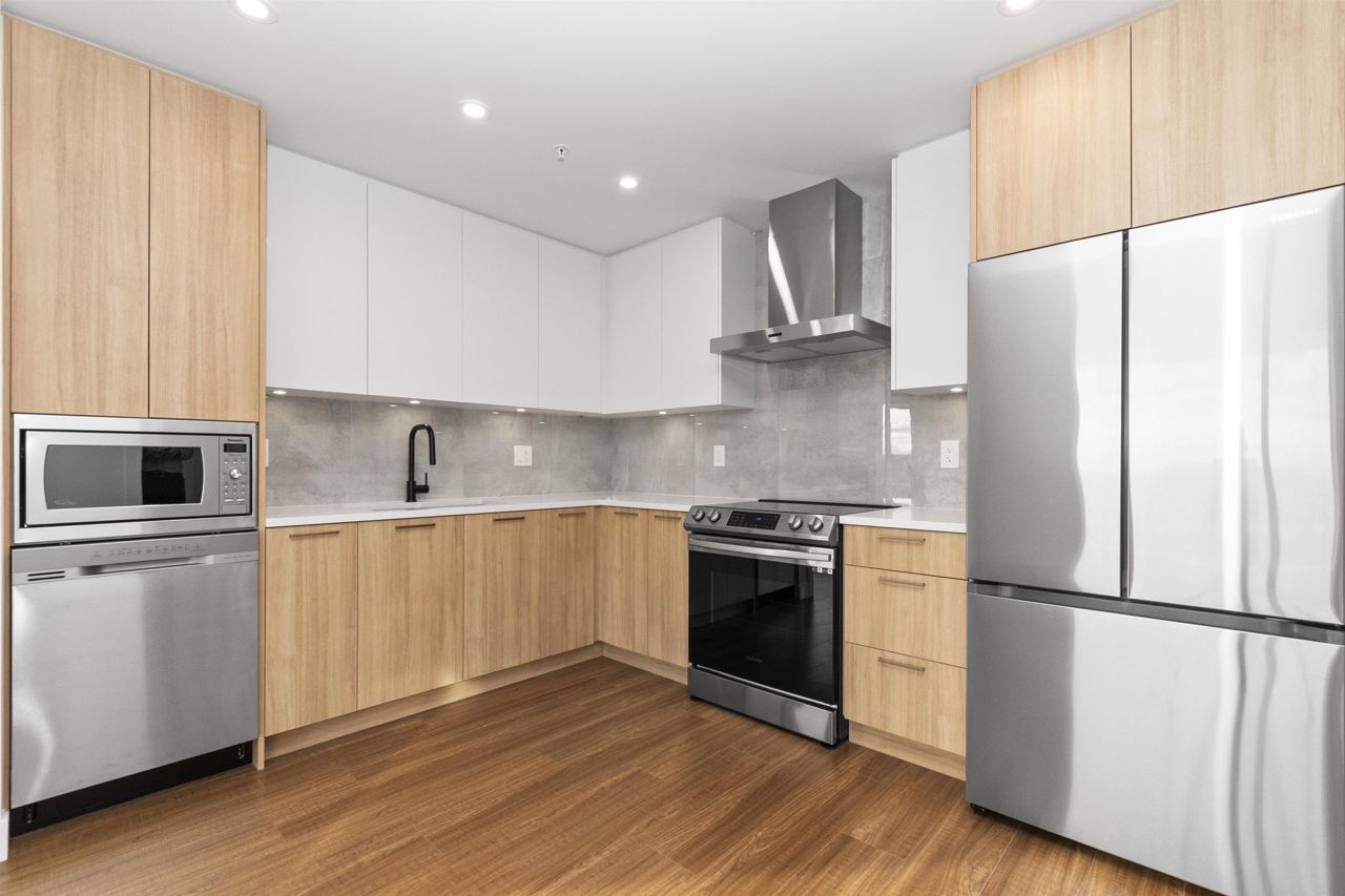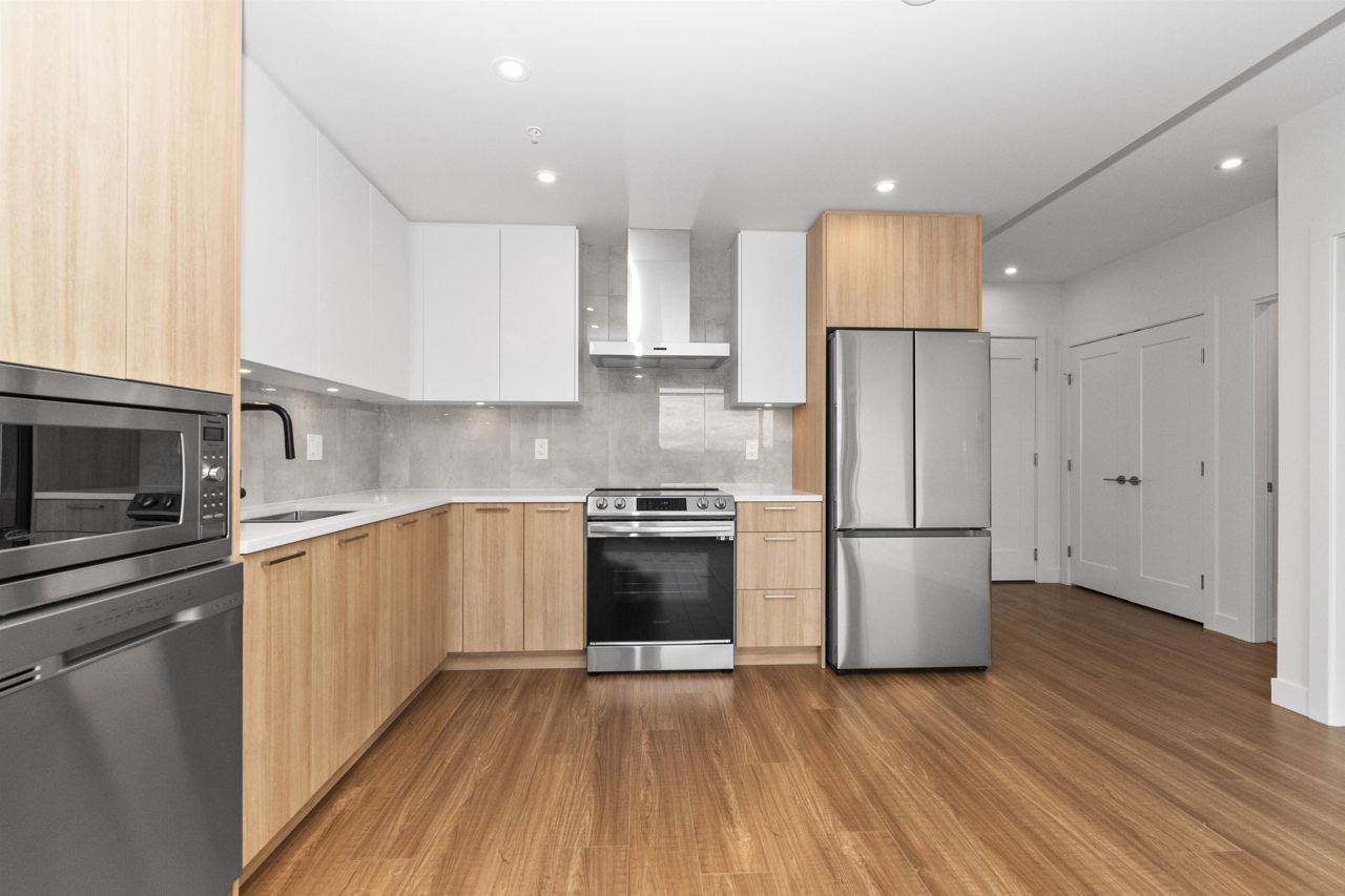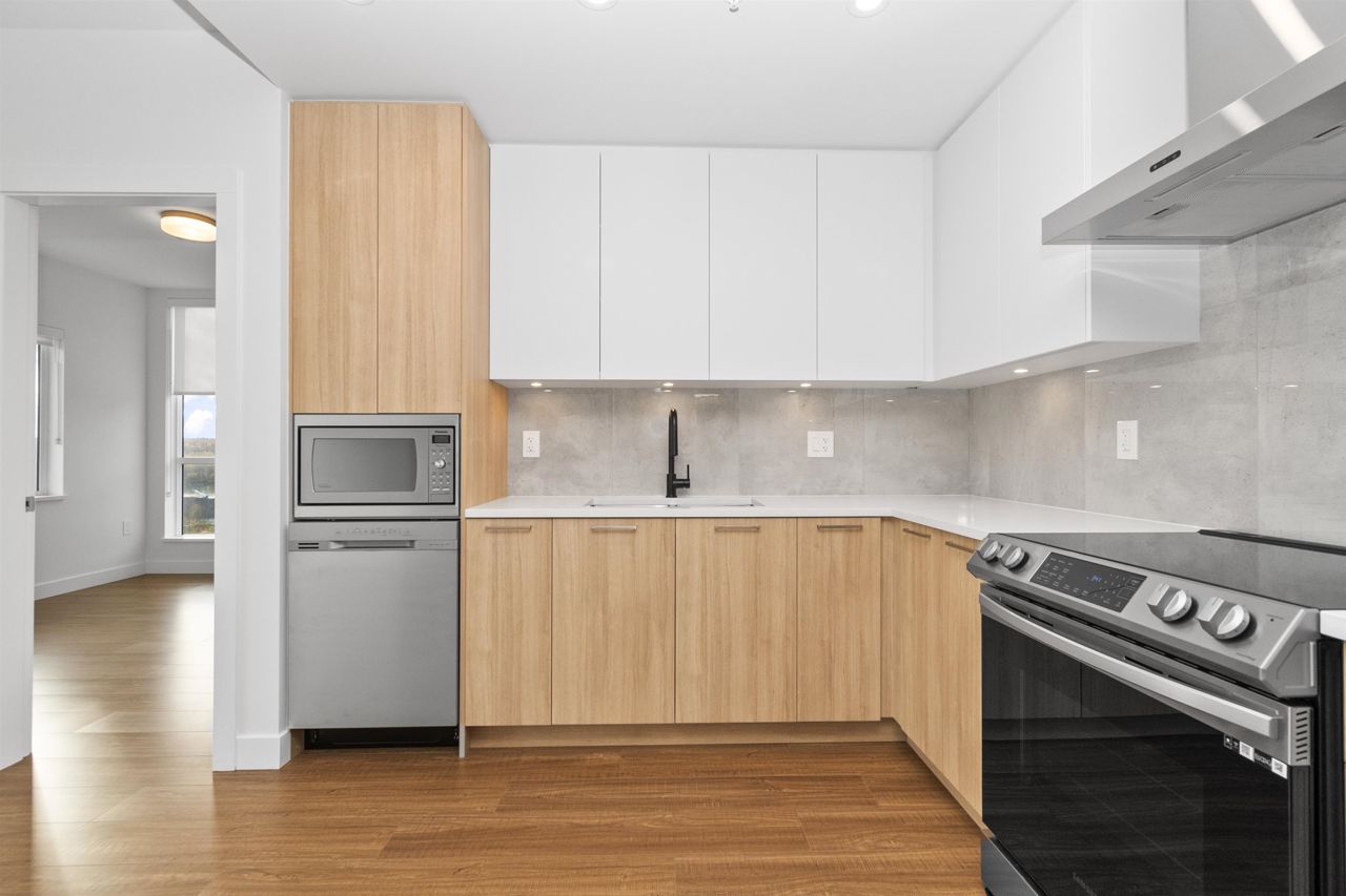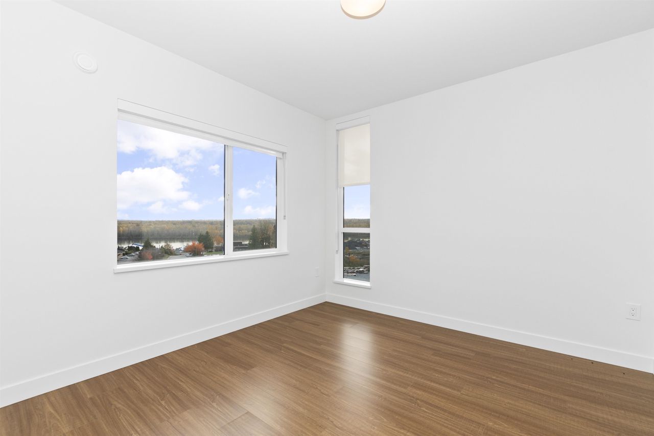 BRAND NEW CORNER UNIT w/STUNNING VIEWS! Wren & Raven is a fresh, modern community with rich amenities and shopping conveniences at your back door! With a beautiful contemporary design, it has two multi-story residential buildings that are nestled into the hill above Outlook Village with stunning views of the Fraser River & it's surrounding mountains. This unit features 2 bedrooms, 2 bathrooms , 803 sq. ft. of living space, large windows, high ceilings, laminate floors, radiant heating, Samsung appliances, 2 PARKING STALLS, storage locker & foldable glass panels to enclose the patio (Solarium). Pets & rentals permitted! The location offers instant access to the Lougheed Hwy. and West Coast Express train, schools, shops, services, restaurants, parks, recreation!