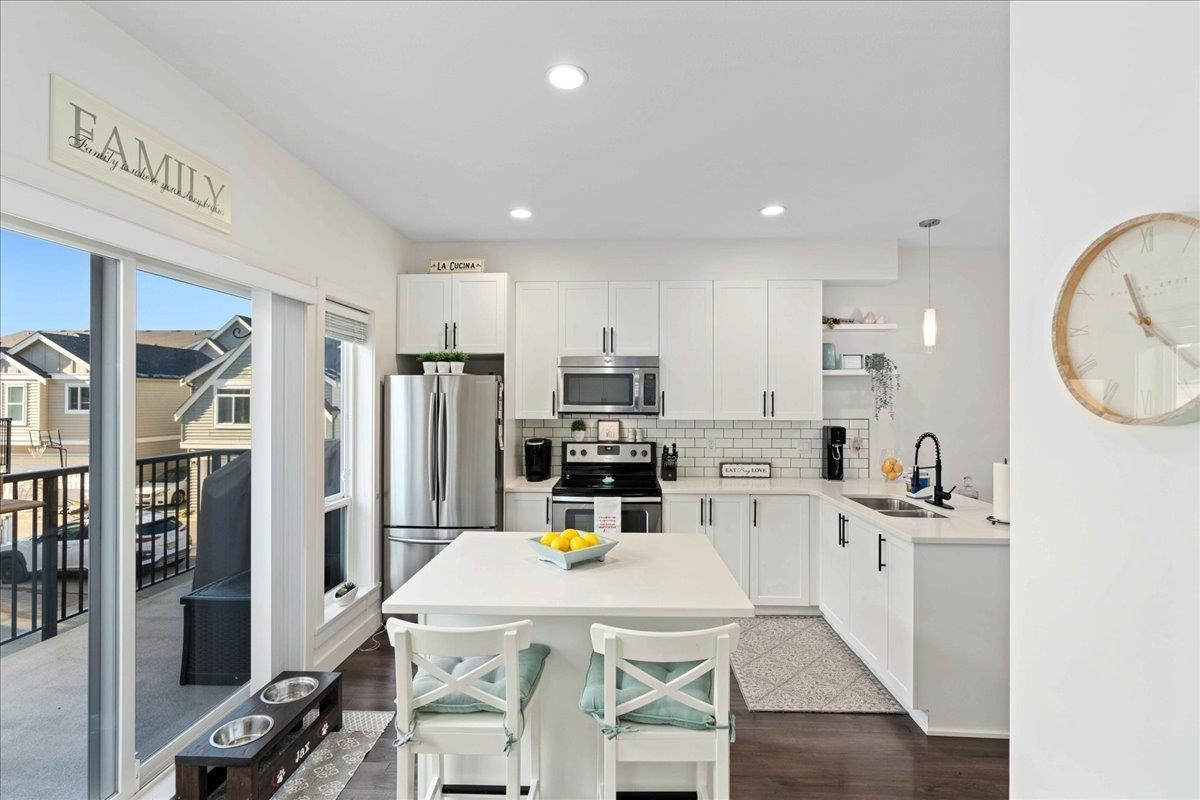 Welcome to Silvercreek! This amazing Townhome shows beautifully and pride of ownership is evident throughout. Features 3 beds and 3 baths with great floor plan. Main floor has tons of space with living, dining area, new custom fireplace and stunning kitchen. Below is a fabulous flex room which is currently a home gym but could be used for a multitude of uses. Other features include a newly designed coffee or wine bar off the kitchen which is great for entertaining and adds a lot of character! This is a very warm and inviting home, meticulously maintained in a family friendly complex close to all shops and services. Perfect for both young families or downsizers alike, there is nothing for you to do but move in and enjoy this beautiful home!