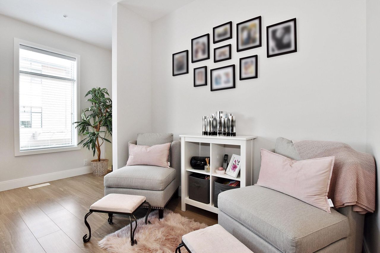 LOVE Where YOU Live!! 58 ON CHERRY HILL! This WEST COAST inspired END UNIT TOWNHOME features over 2,200 SQFT of LUXURY DESIGN & FINISHINGS. Open Concept Floor Plan features Spacious Bright Kitchen with Quartz Countertops, Over-sized Island, Stainless Steel Appliances & floor to ceiling pantry. Living dining area - perfect size and layout for entertaining. Upstairs you'll find 3 large bdrms SPACIOUS MASTER, W/I closet & spa inspired ensuite. lower level has spare room + 4 piece bath perfect for guests or home office. Parking for 4 vehicles (Double side-by-side garage plus 2 in driveway). Convenient street parking out front for easy access to main floor. Amenities include a social lounge with outdoor kitchen, kids play area. Walking distance to parks and schools.